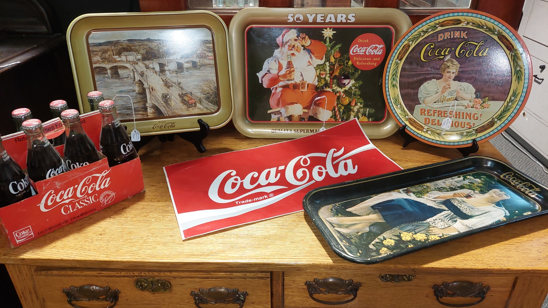 Coca Cola "COKE" - 6 Pc Tray Lot & Vending Machine Wave Decal (NOS) - See Pics