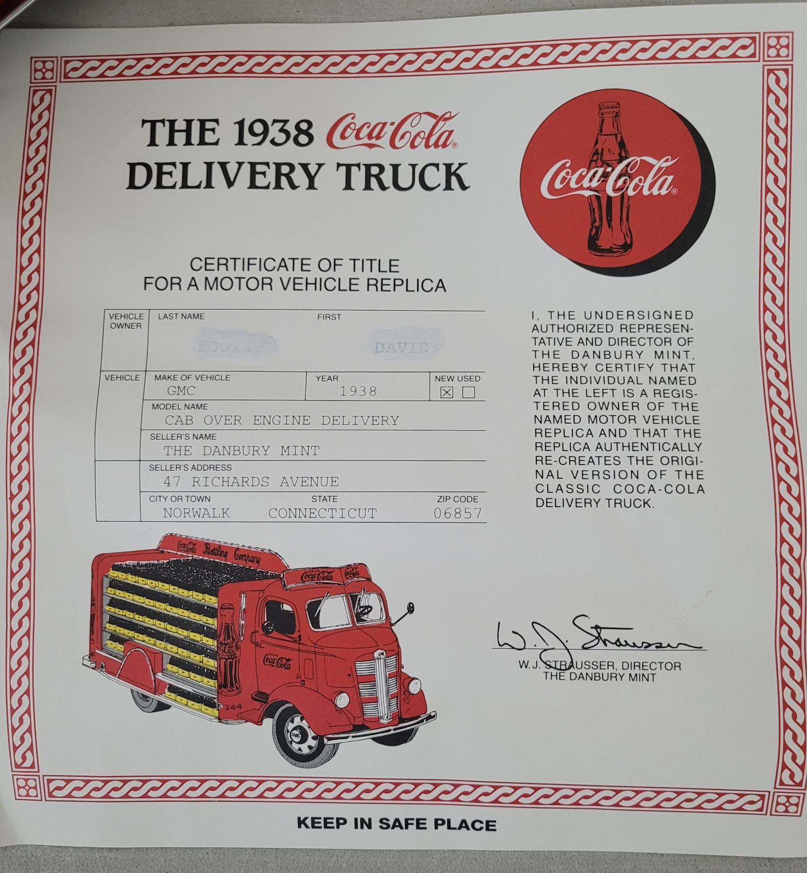 1938 Coca Cola Delivery Truck With Hundreds of Bottles Of Coke - Metal Model -The Danbury Mint