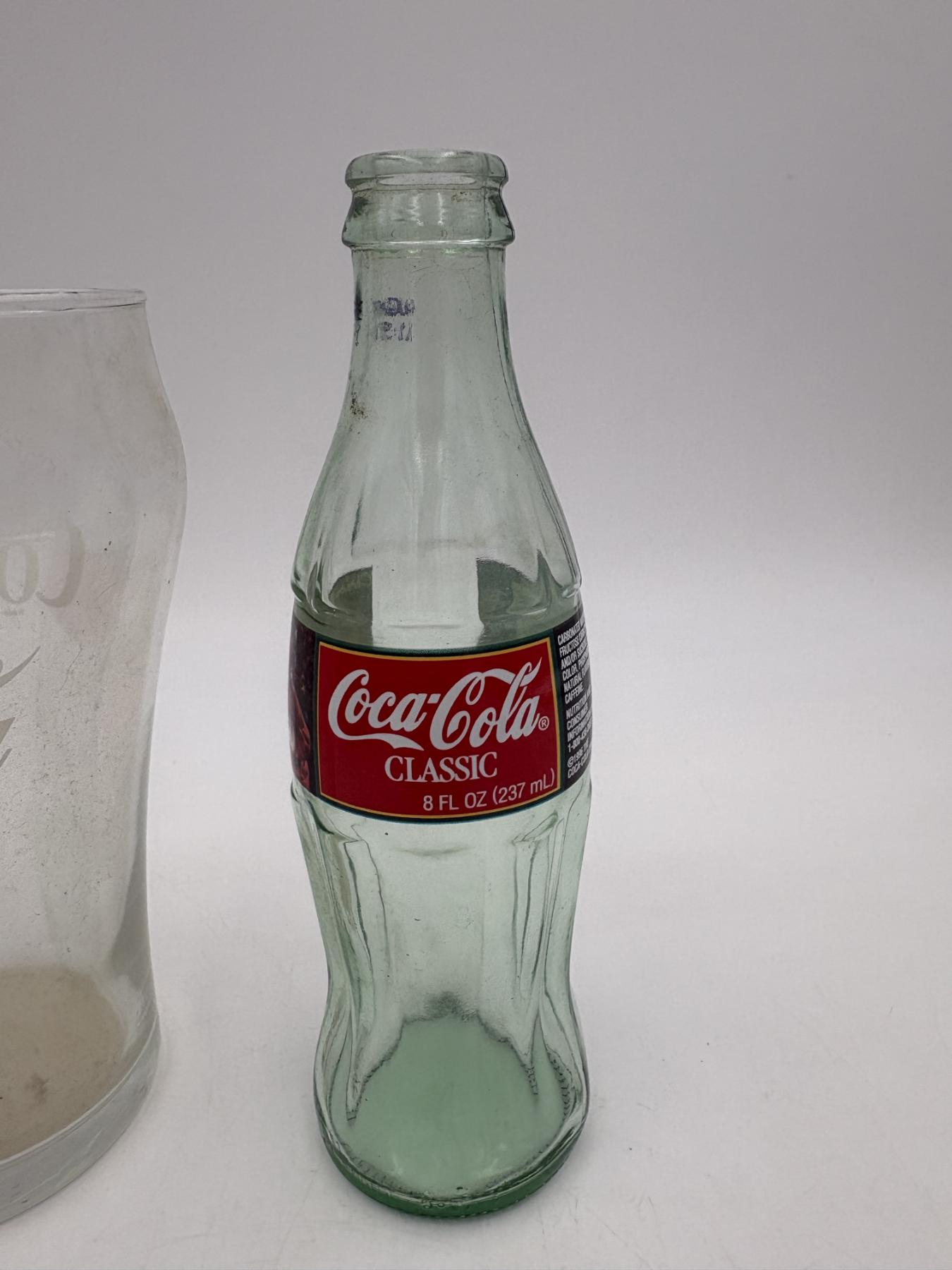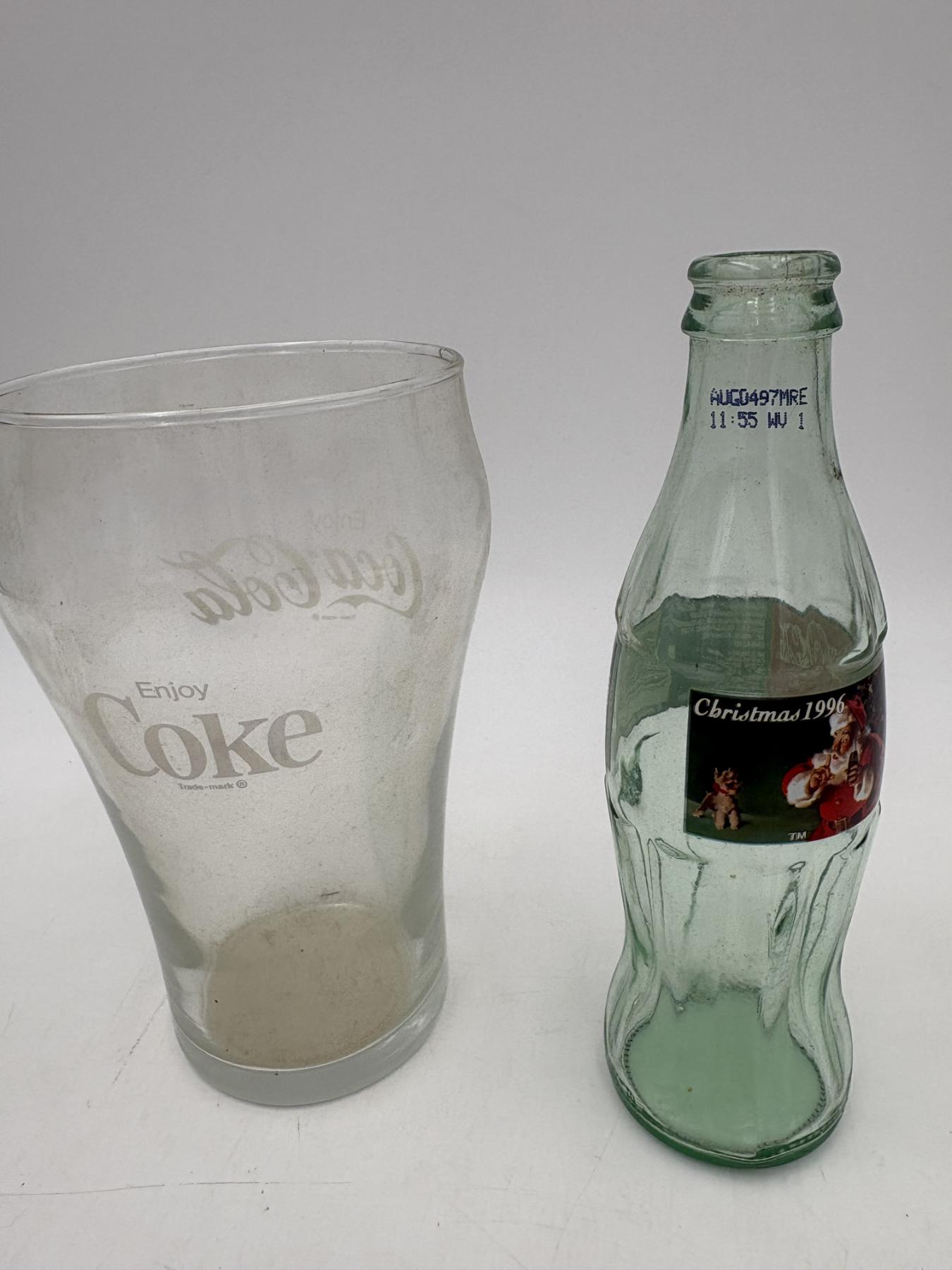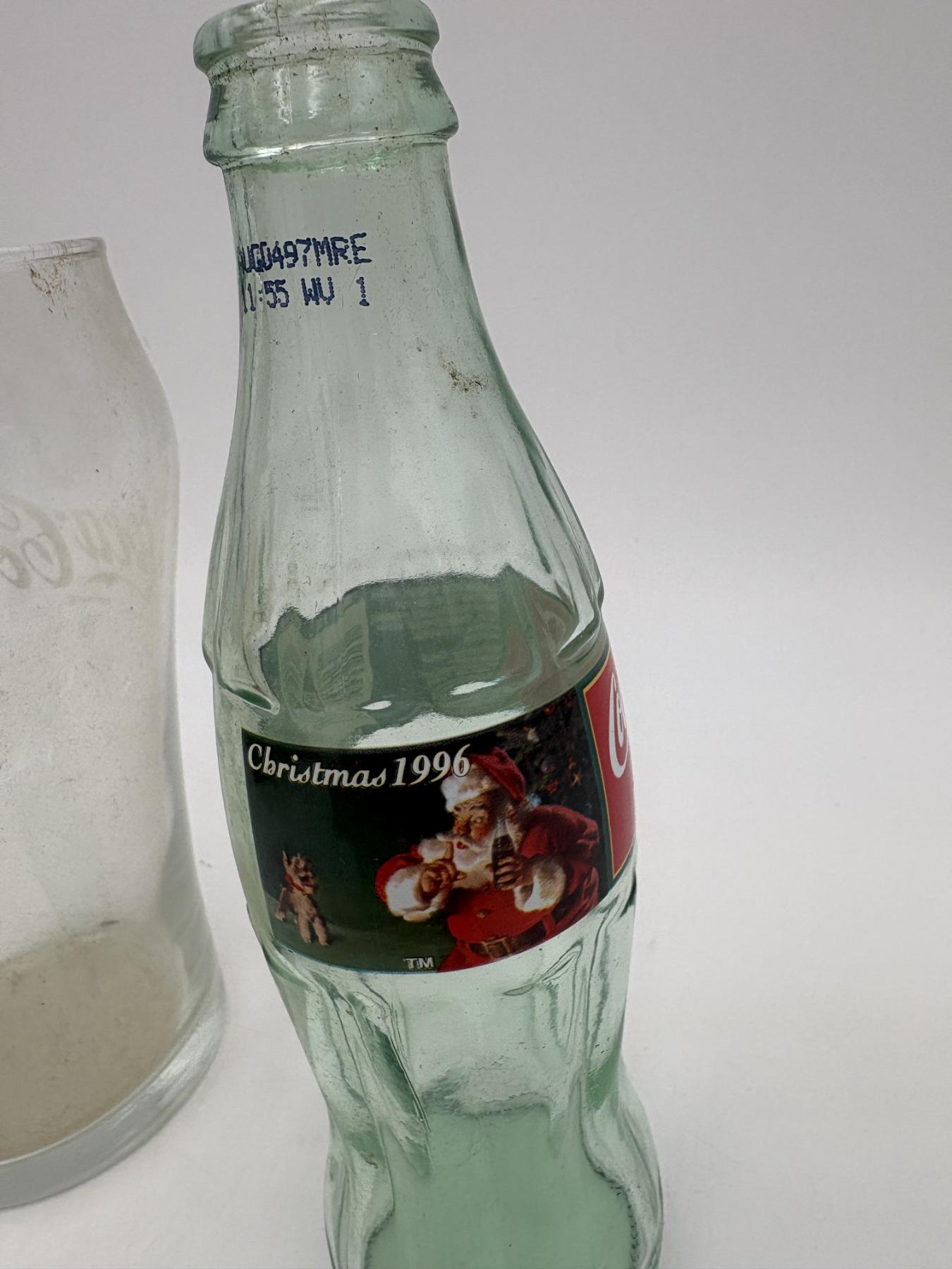 Coca- Cola Glassware - Tall and Wide Mug 7 inches tall - Coca- Cola Classics Bottle 8 Fl oz - Christmas 1996 - 8 inches tall