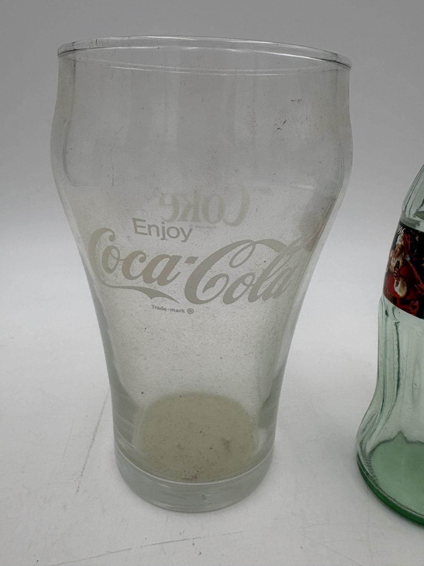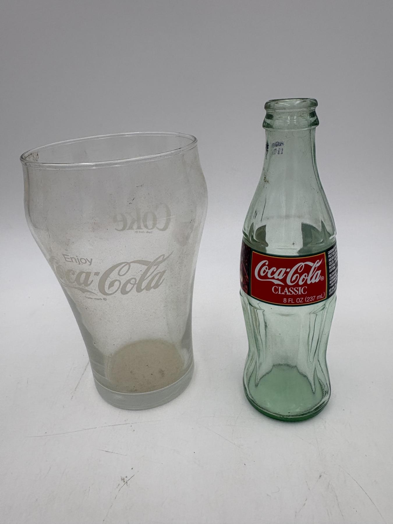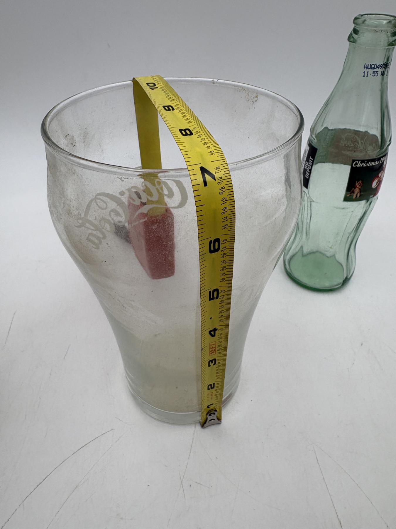 Coca- Cola Glassware - Tall and Wide Mug 7 inches tall - Coca- Cola Classics Bottle 8 Fl oz - Christmas 1996 - 8 inches tall
