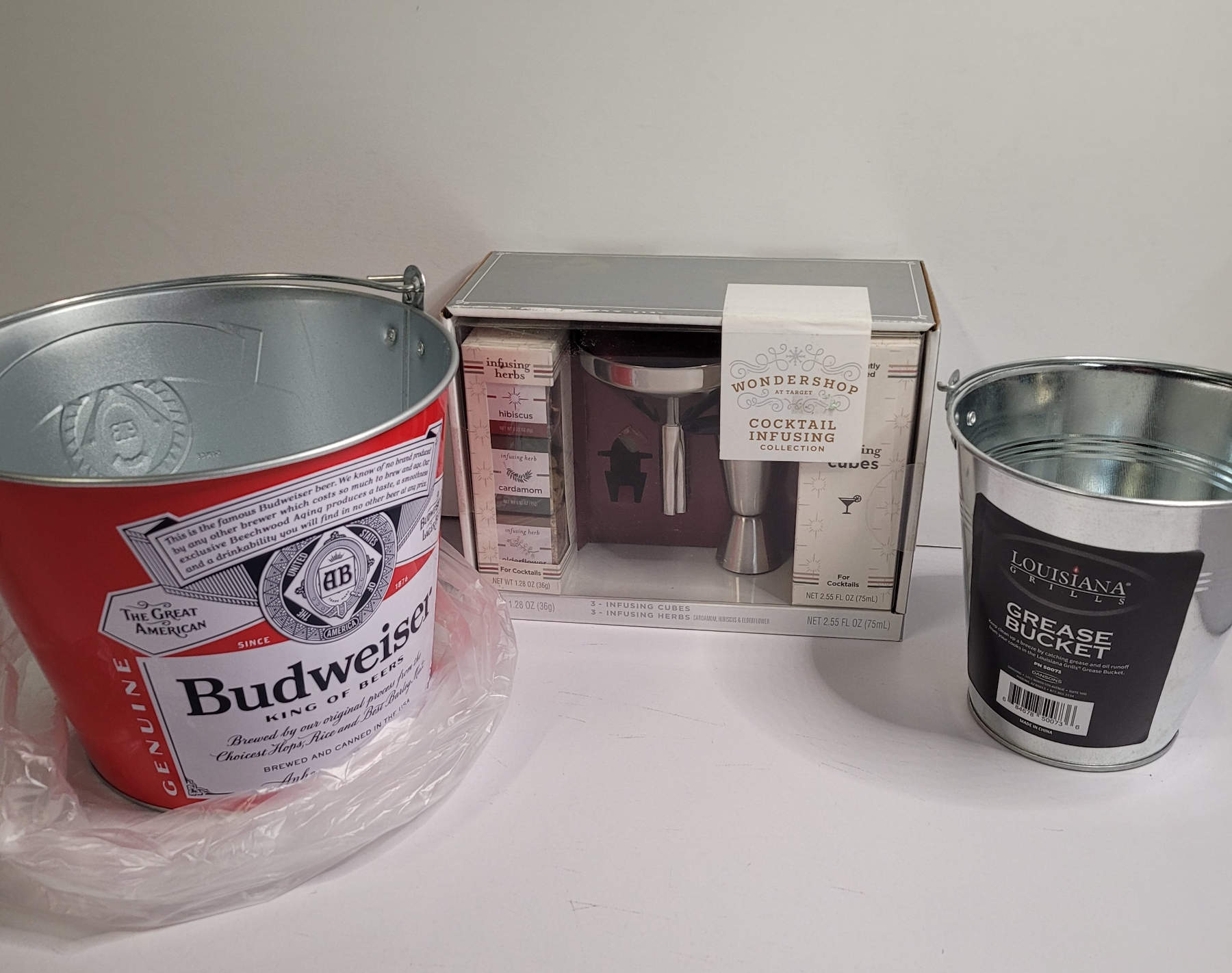 Cocktail Infusing Collection and 2 Metal Buckets - Budweiser And Louisiana Grills