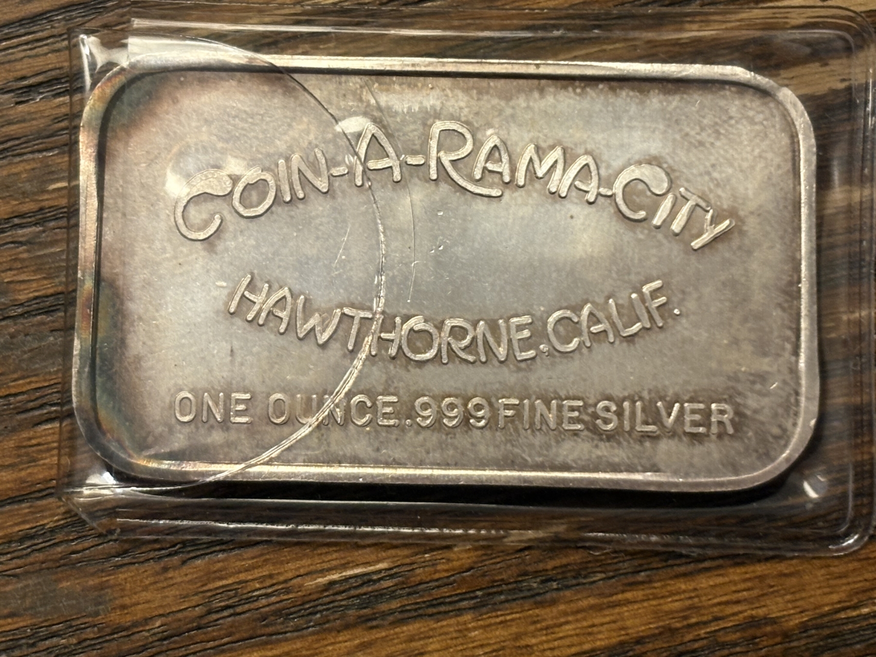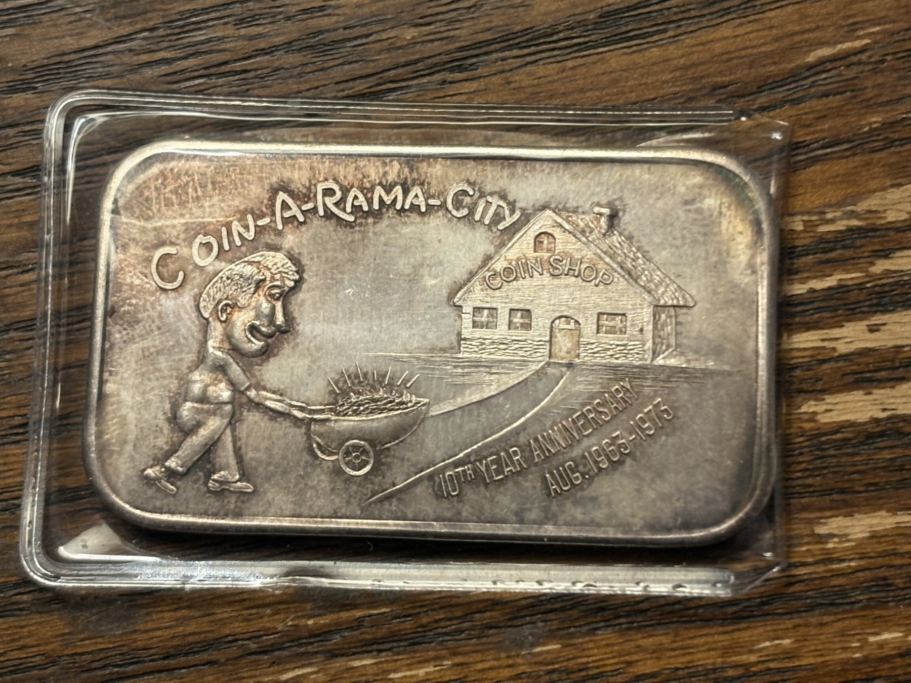 Coin-A-Rama City Hawthorne Calif. - 1 Ounce .999 Fine Silver Bar - 10th Year Anniversary - Aug. 1963-1973 - In Plastic Packaging