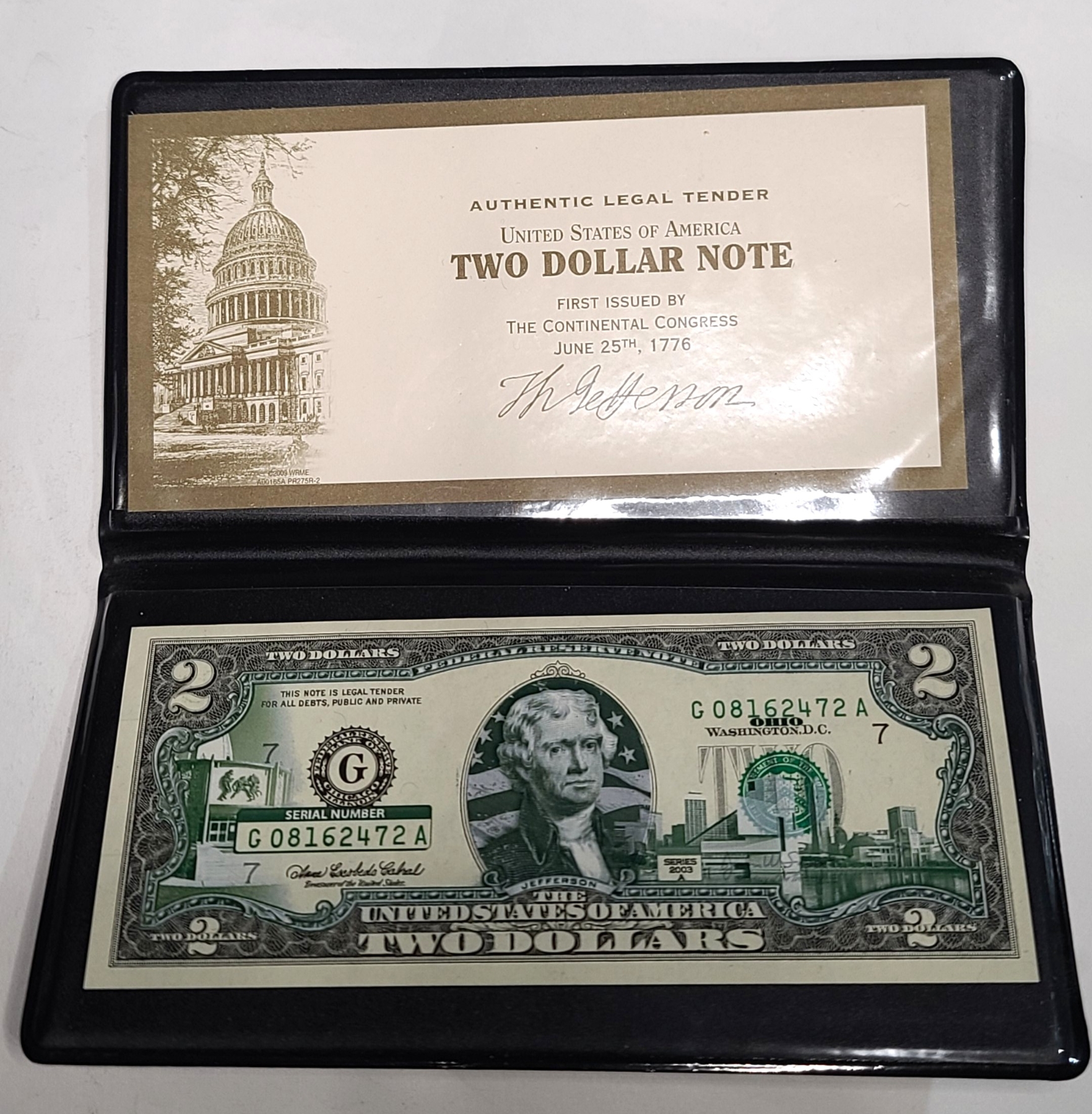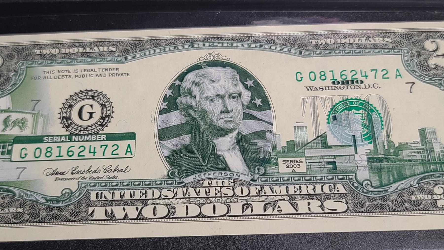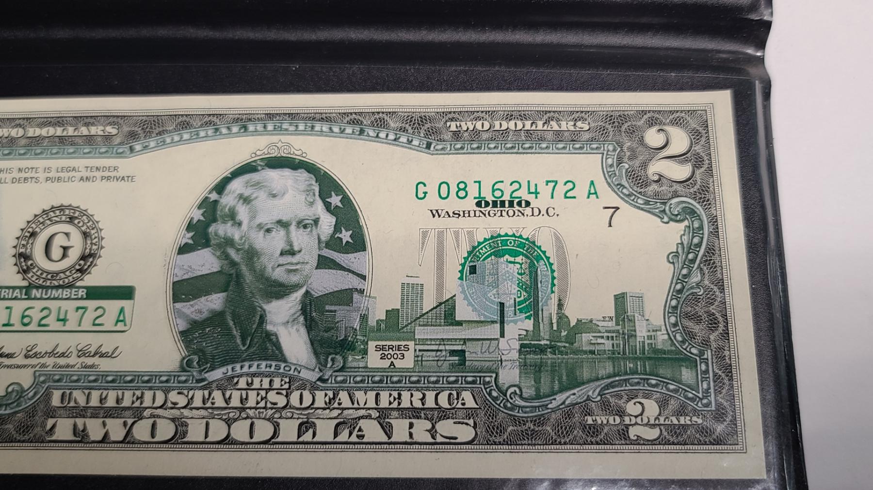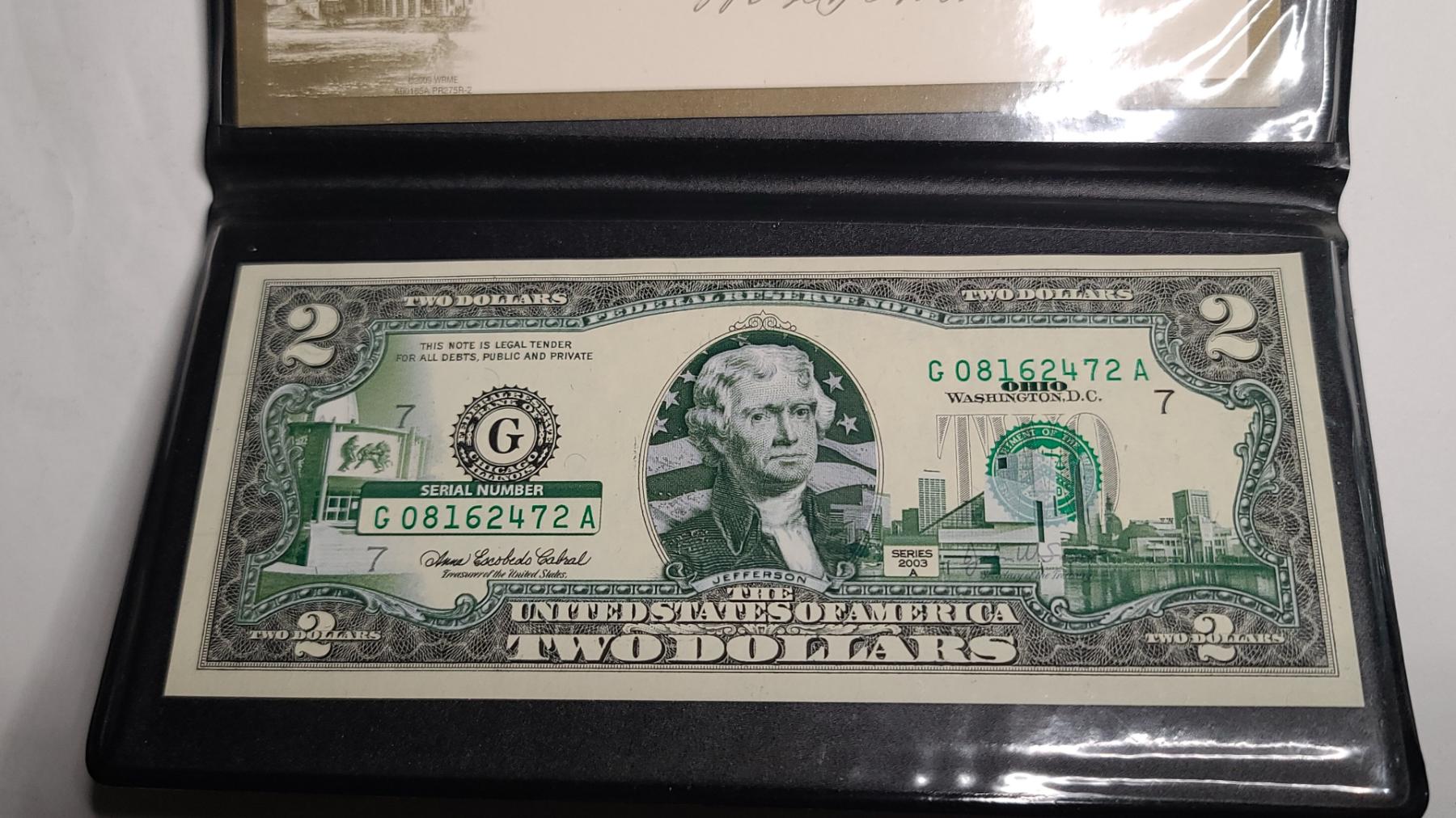 Collectible United States Ohio 2003A Colorized $2 Banknote - Face Value: $2.00