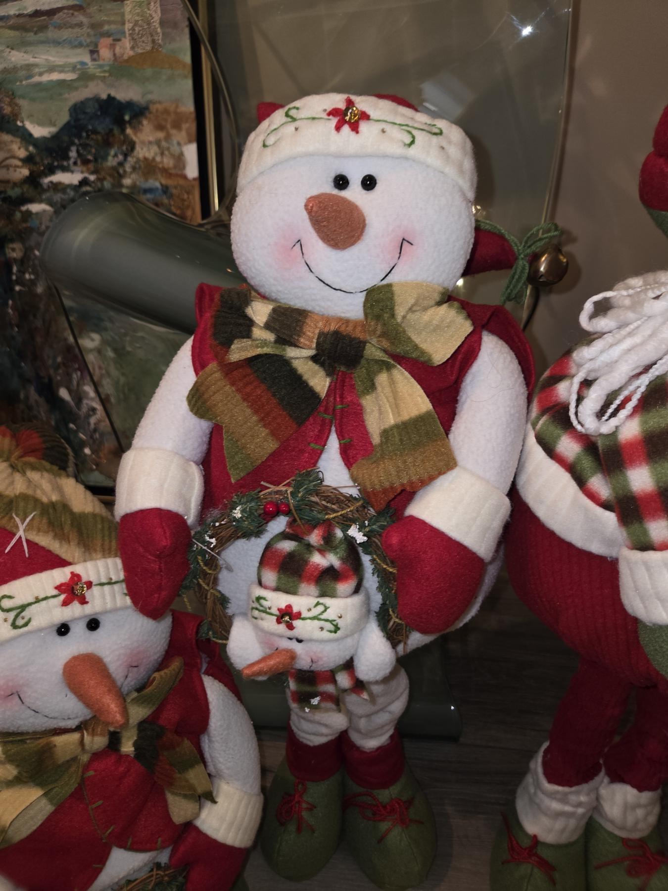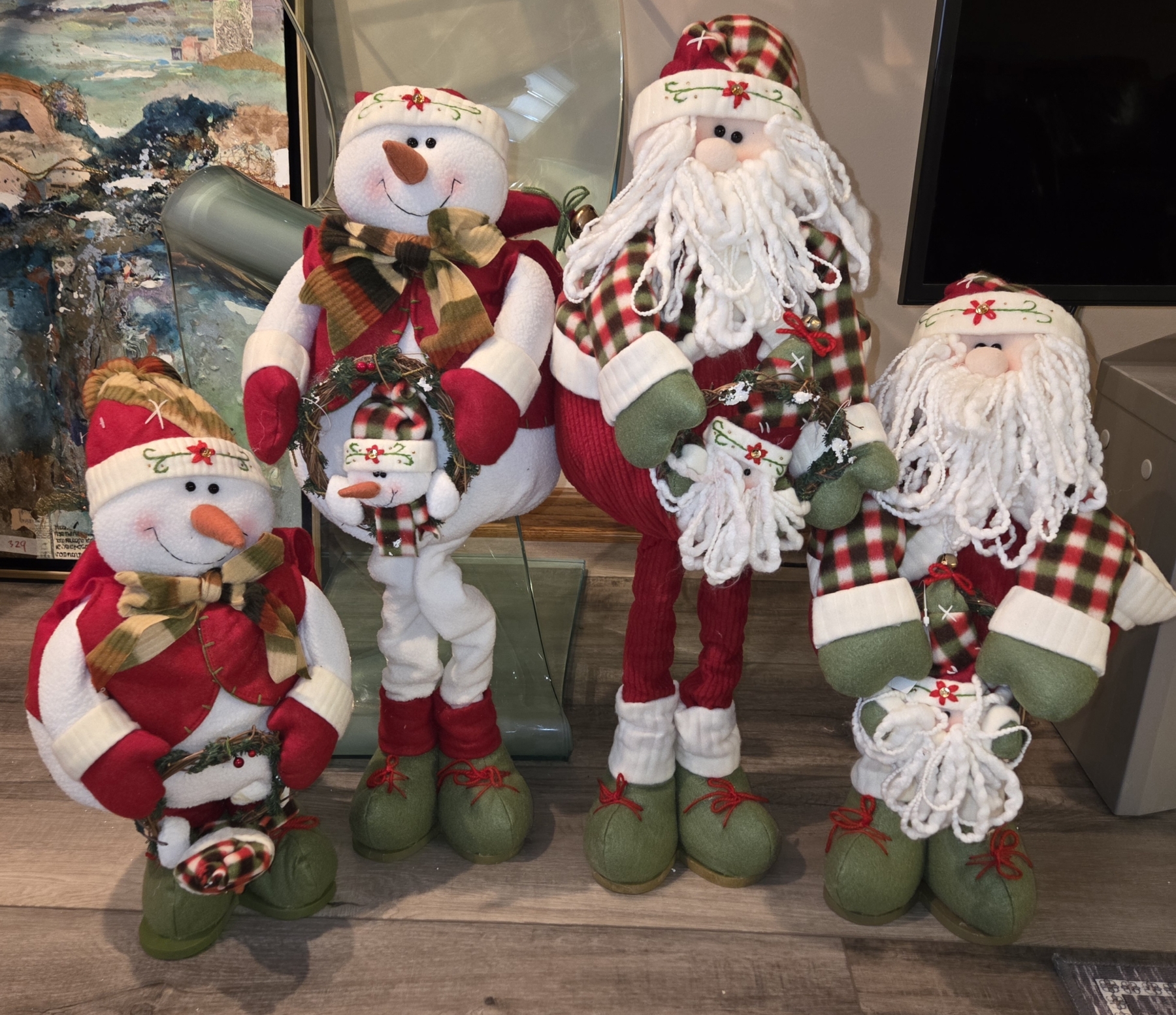Collection Of Adorable, Adjustable Height Fabric Snowmen & Santas