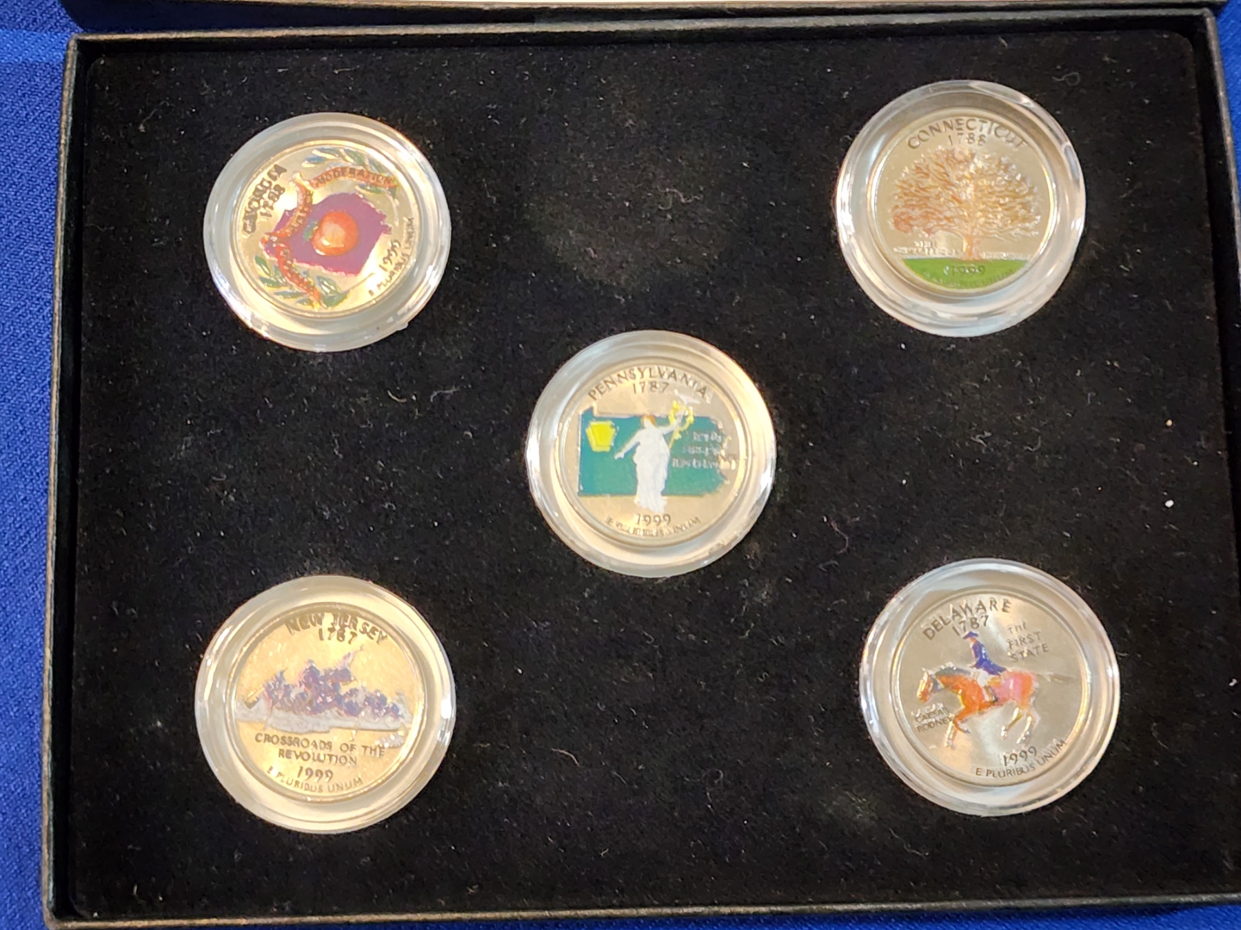 Colorized Statehood Quarters Collection - NJ, GA, PA, CT, DE
