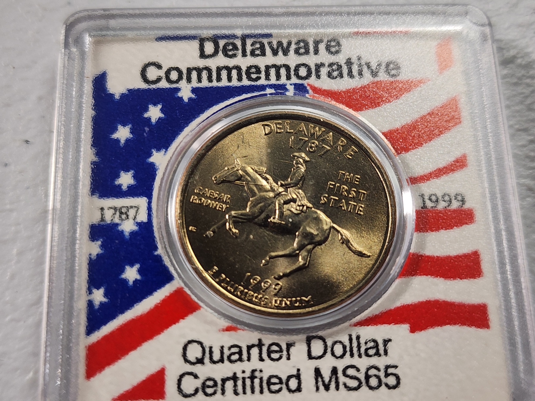 Commemorative 1999 Delaware State Quarter In Holder Certified MS 65