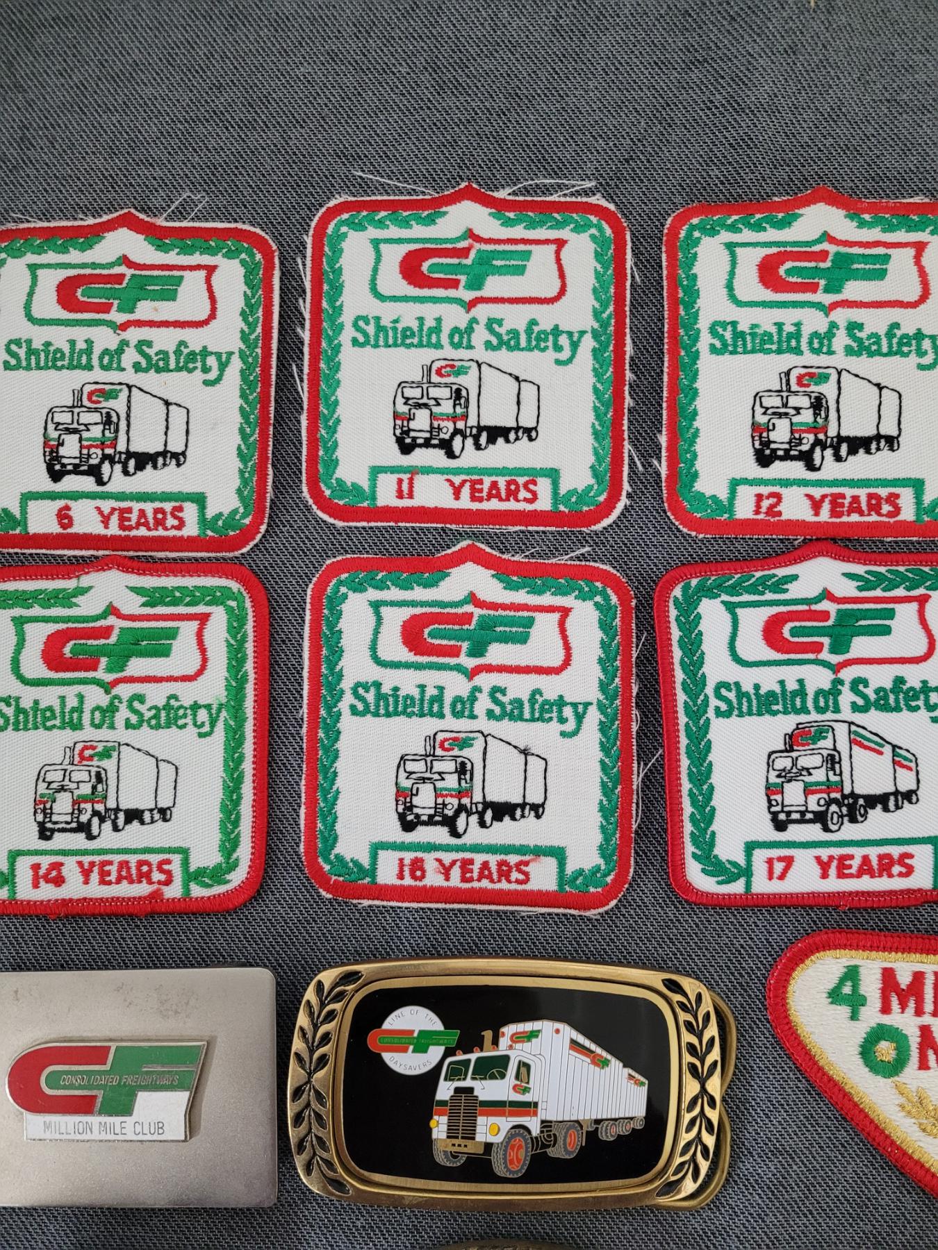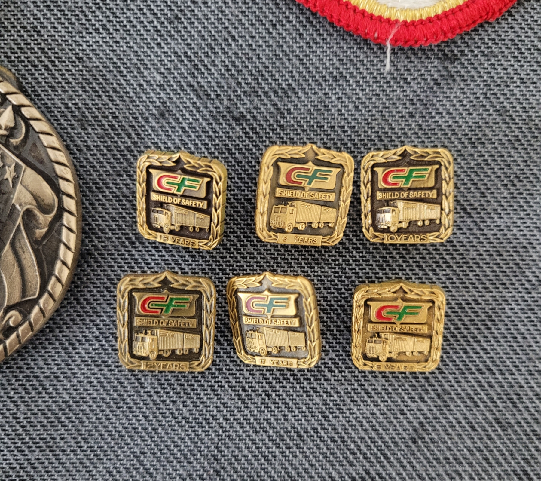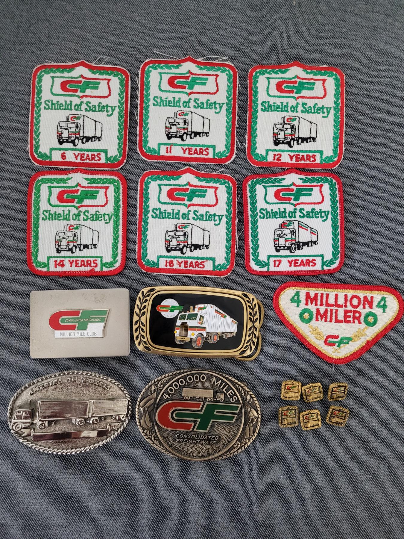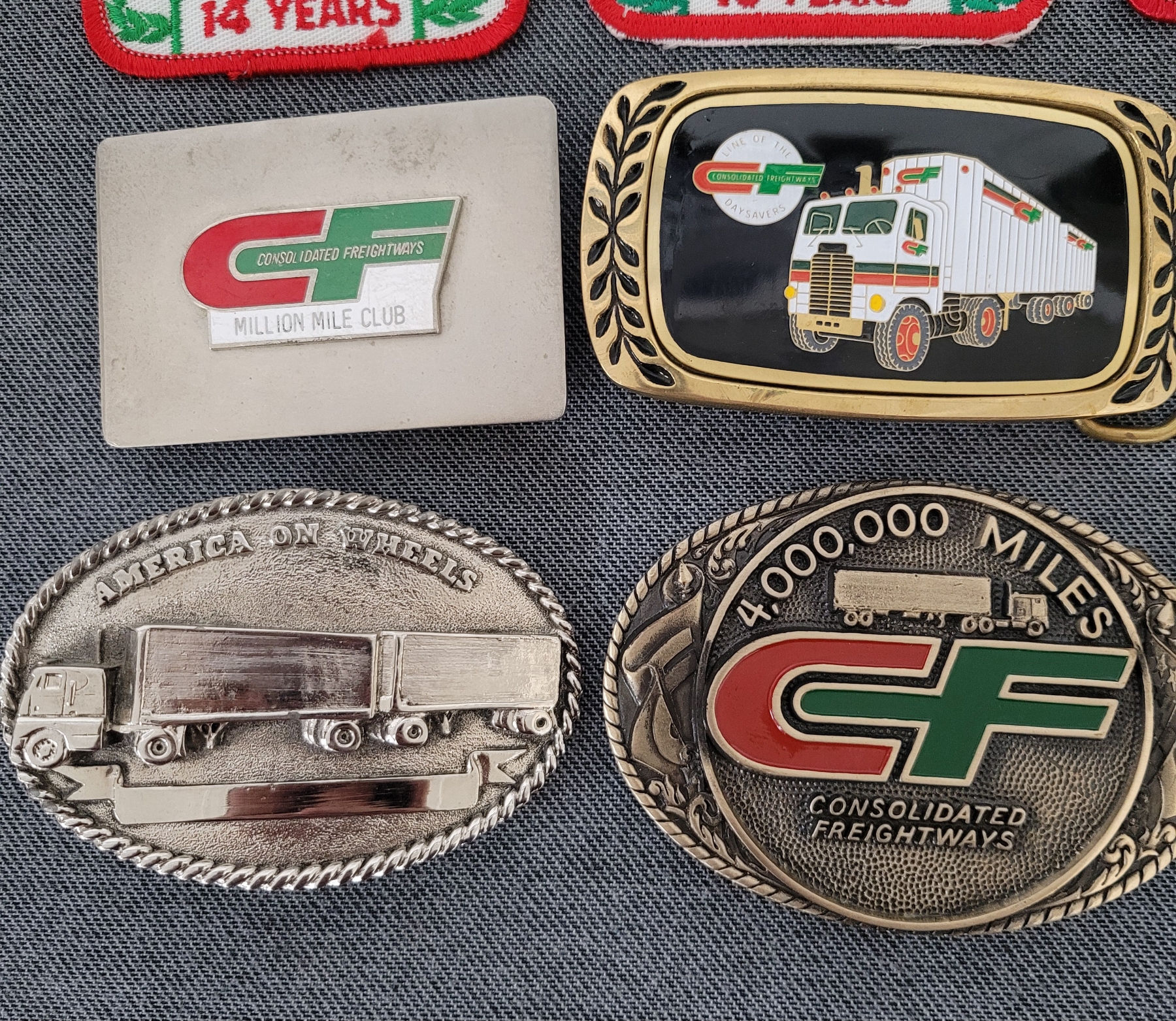 Consolidated Freightways Assorted Belt Buckles, Patches And Buttons