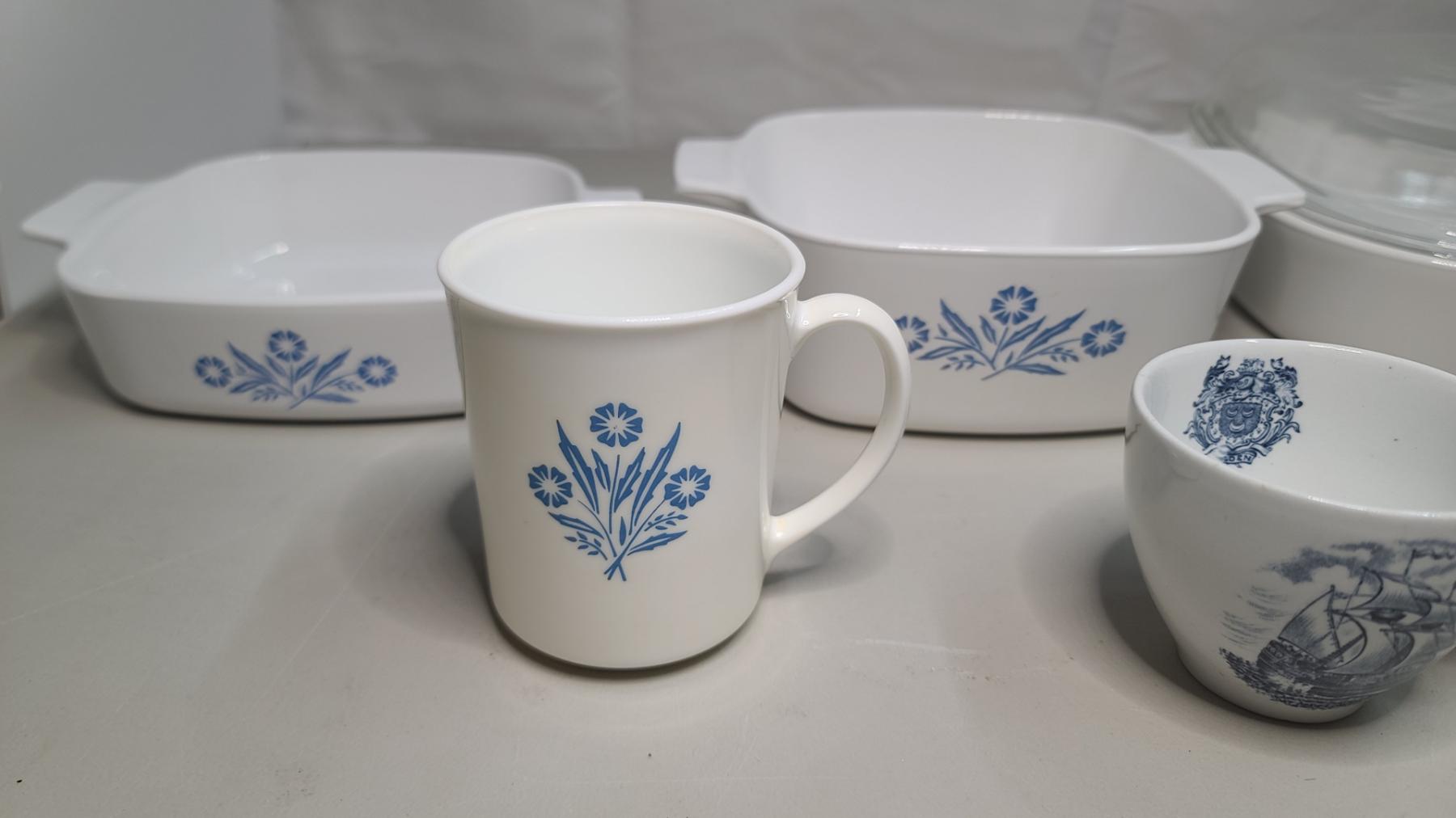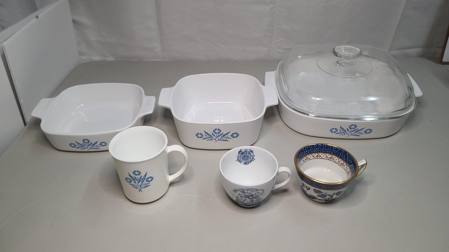 Corningware Casserole Kitchenware & English "Real Old Willow" Tea Cup
