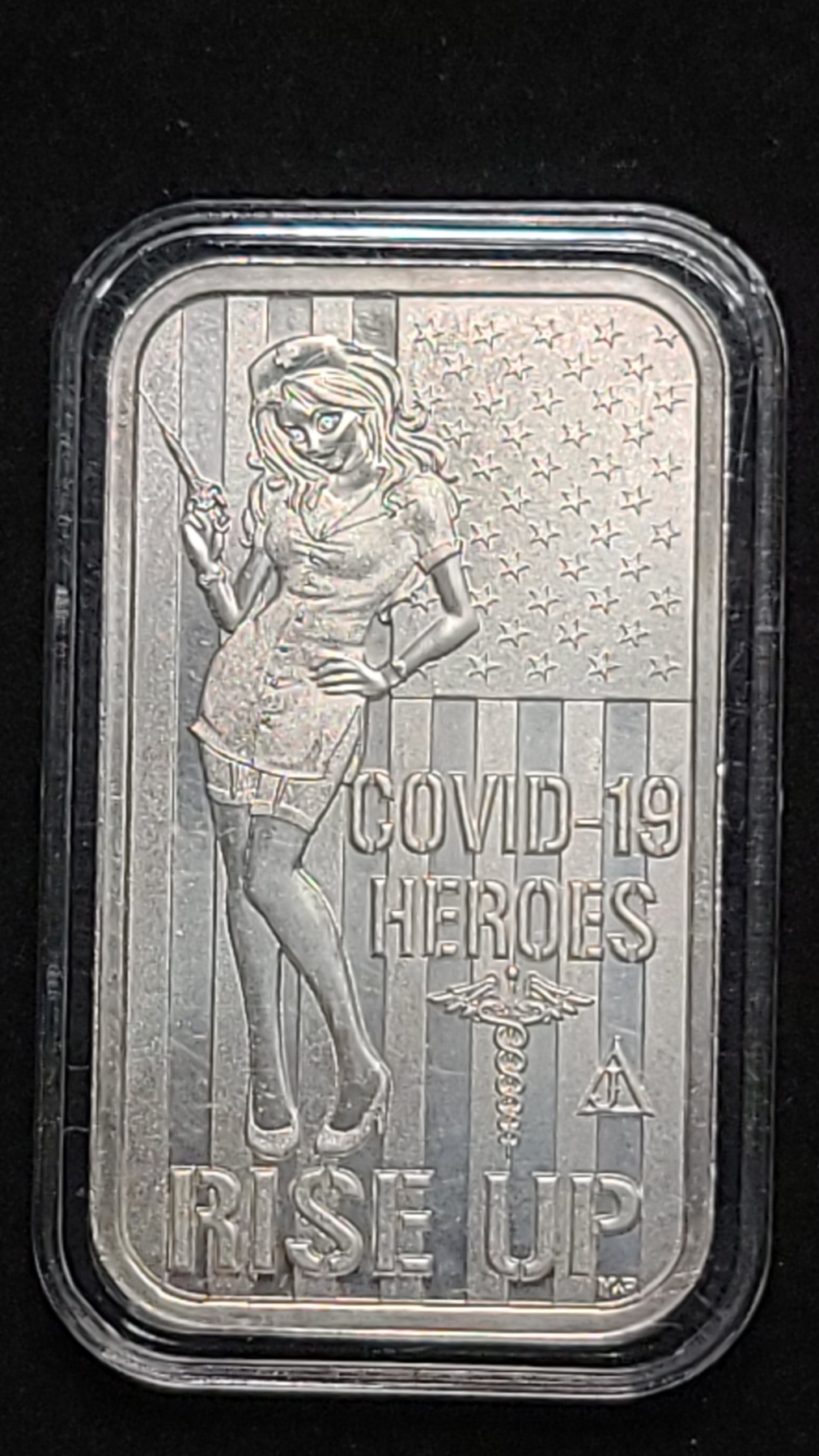 "Covid 19 Heroes Rise Up" 1 Troy Ounce .999 Fine Silver Rare Bar From The Locker Mint