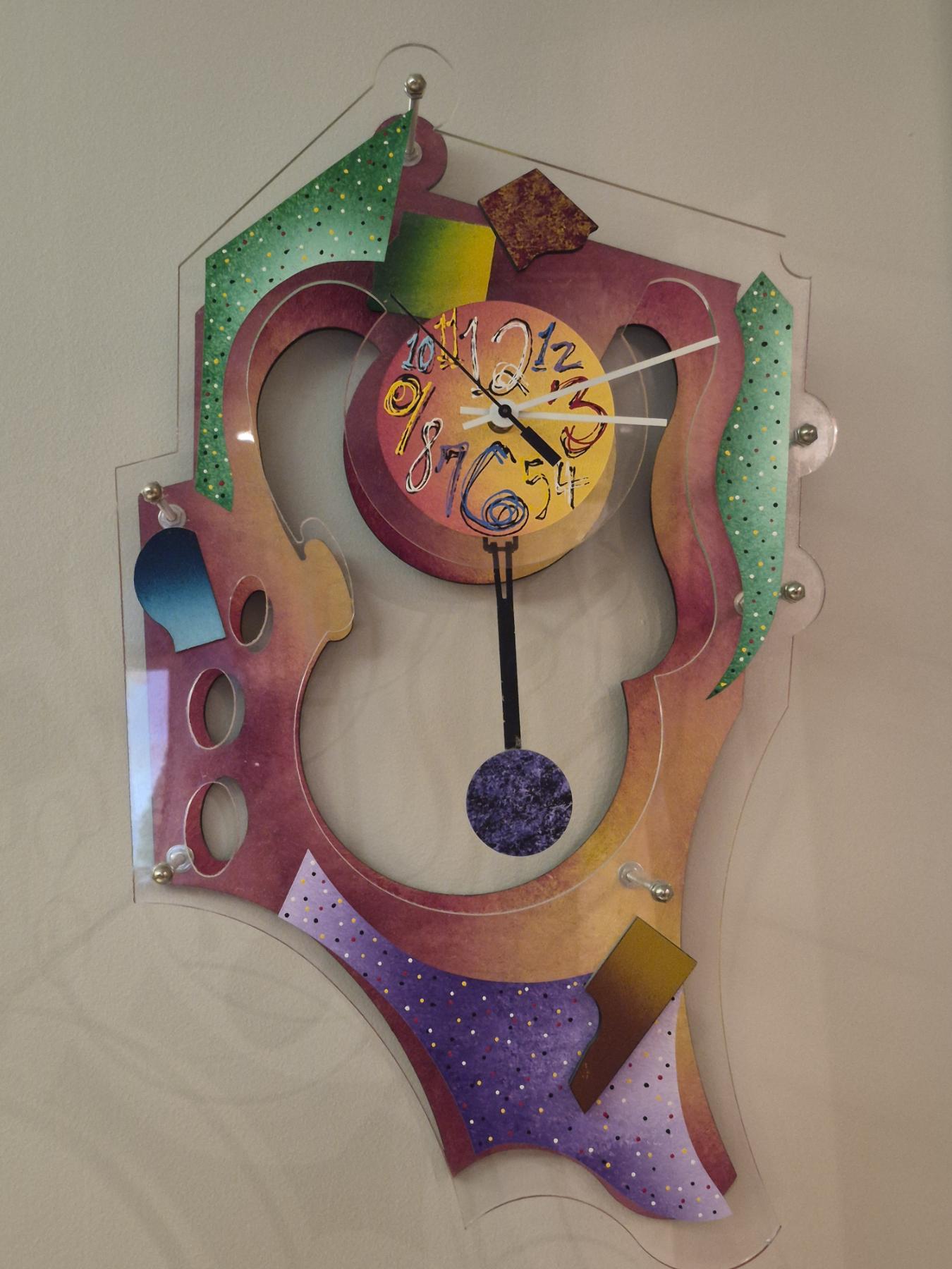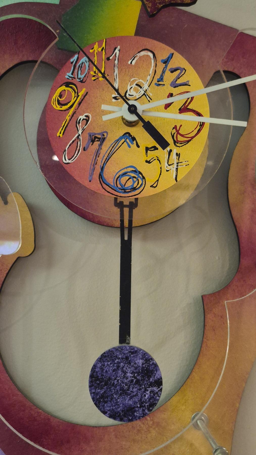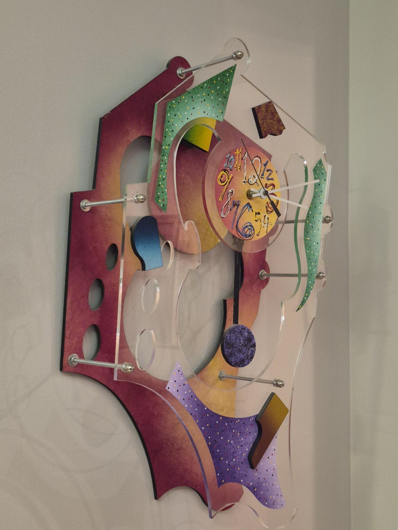 Cubist Style Colorful Modern Sculpture Crafted With Quartz Clock - 27 x 14 x 5 .. This Is Unique At The Least