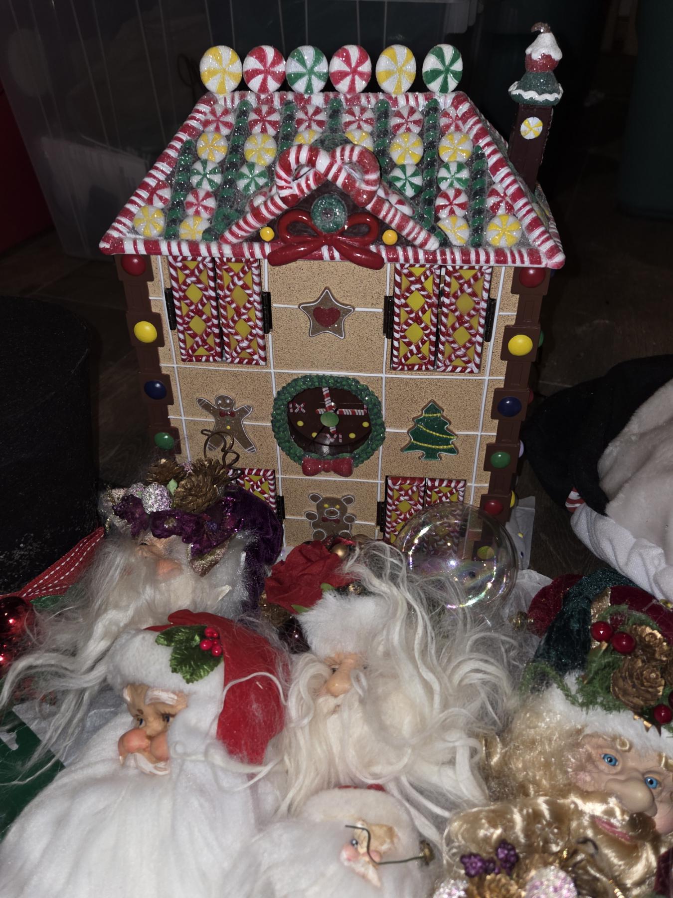 Cute Animated Gingerbread House, New Beanie Babies, Disney Wall Hanger, Santas, Snowmen, & New Night Light