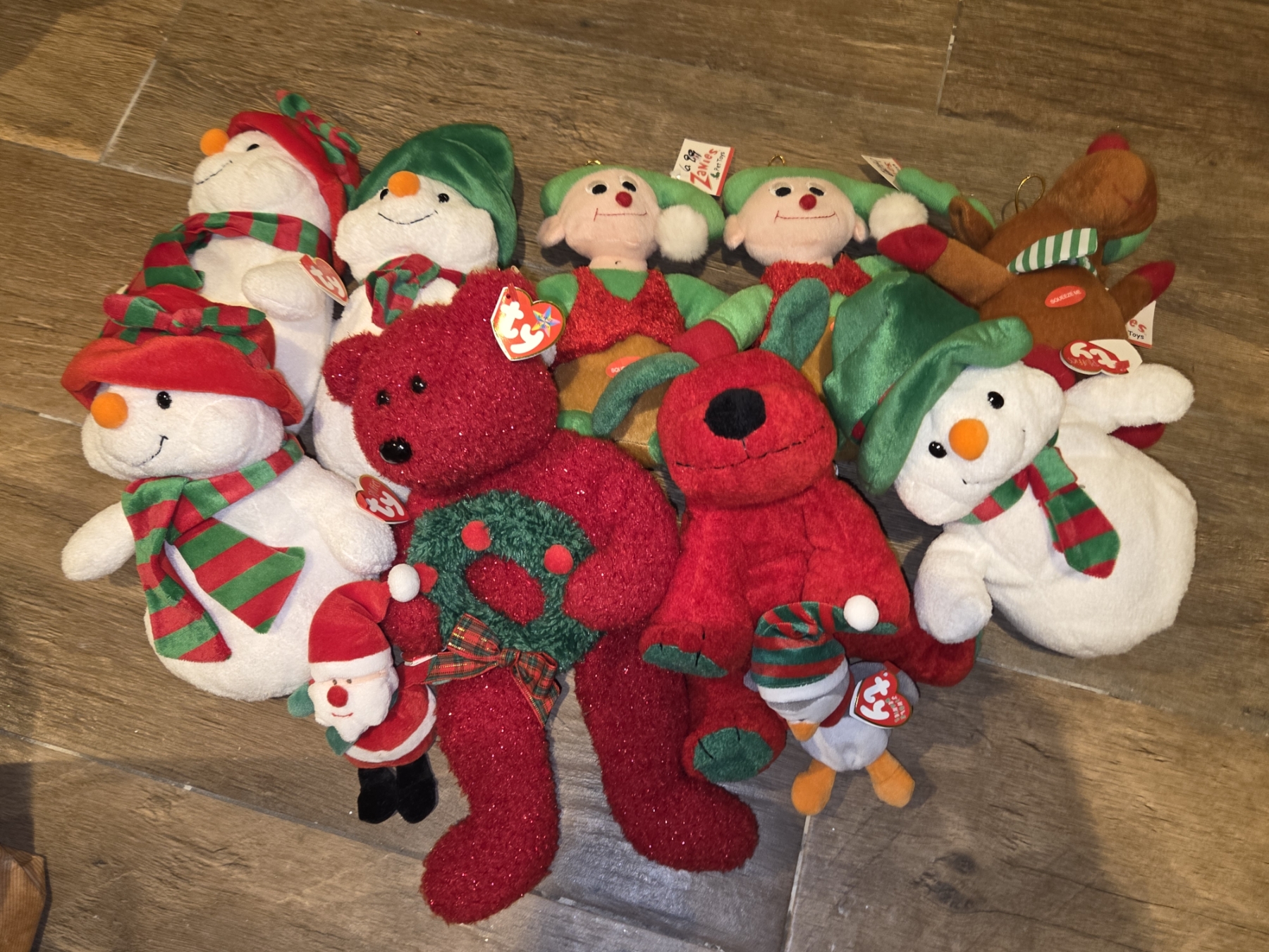 Cute Animated Gingerbread House, New Beanie Babies, Disney Wall Hanger, Santas, Snowmen, & New Night