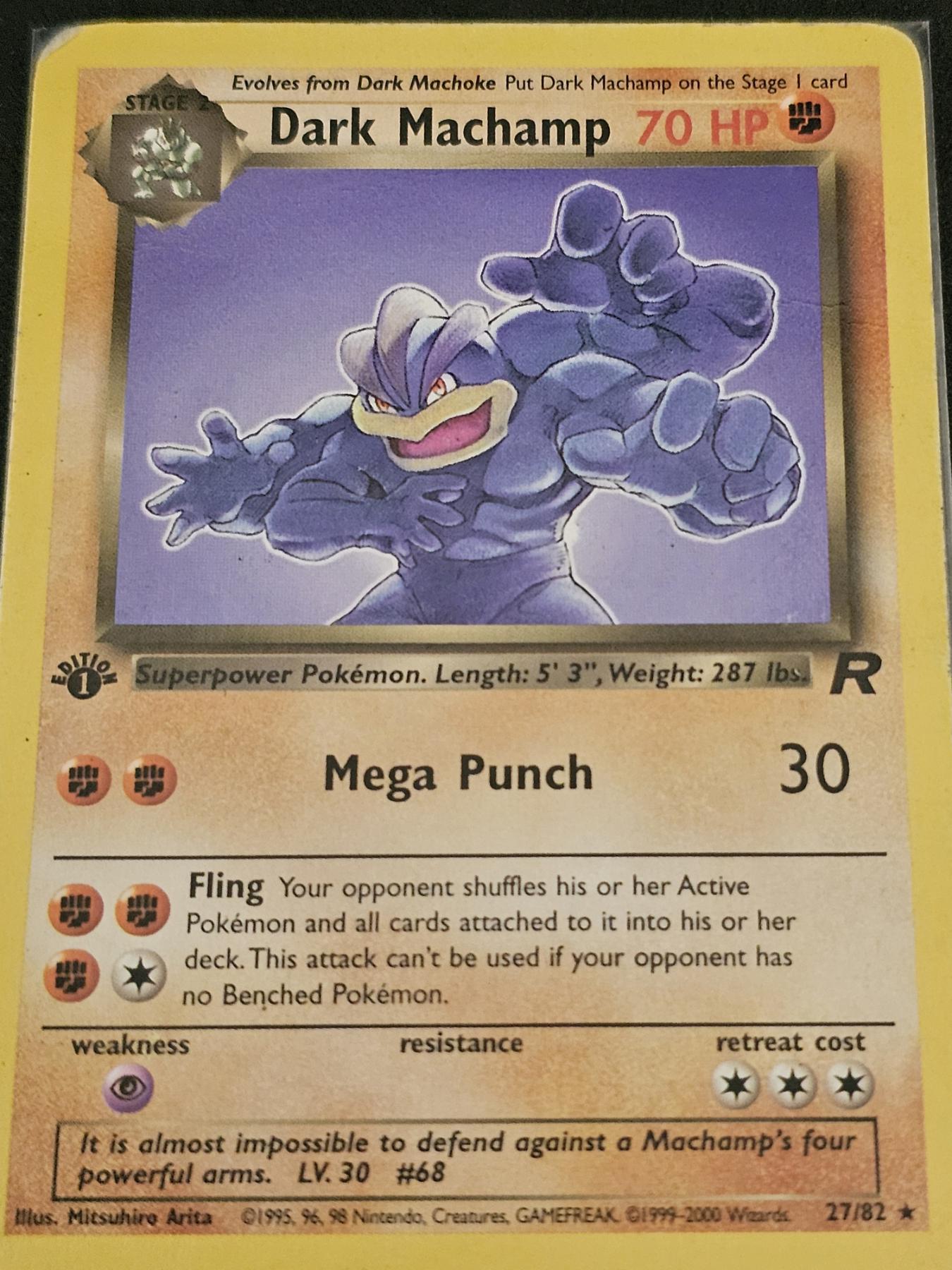 Dark Machamp 1st Edition 27/82 Rare Vintage Pokemon Trading Card - Comes with Protective Sleeve, GREAT CONDITION!!! PLACE YOUR BID AND CATCH 'EM ALL TODAY!!!