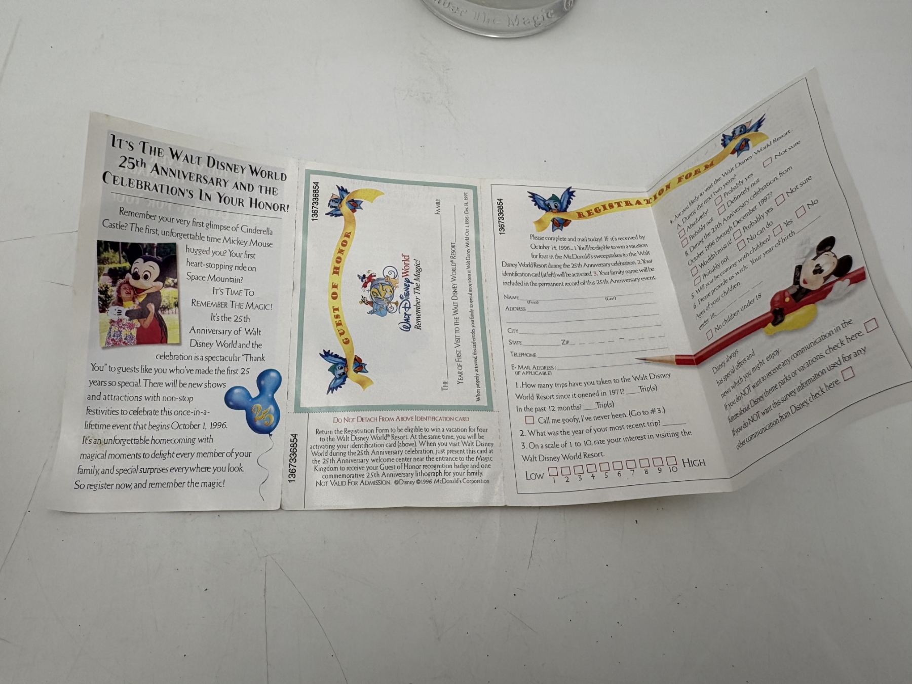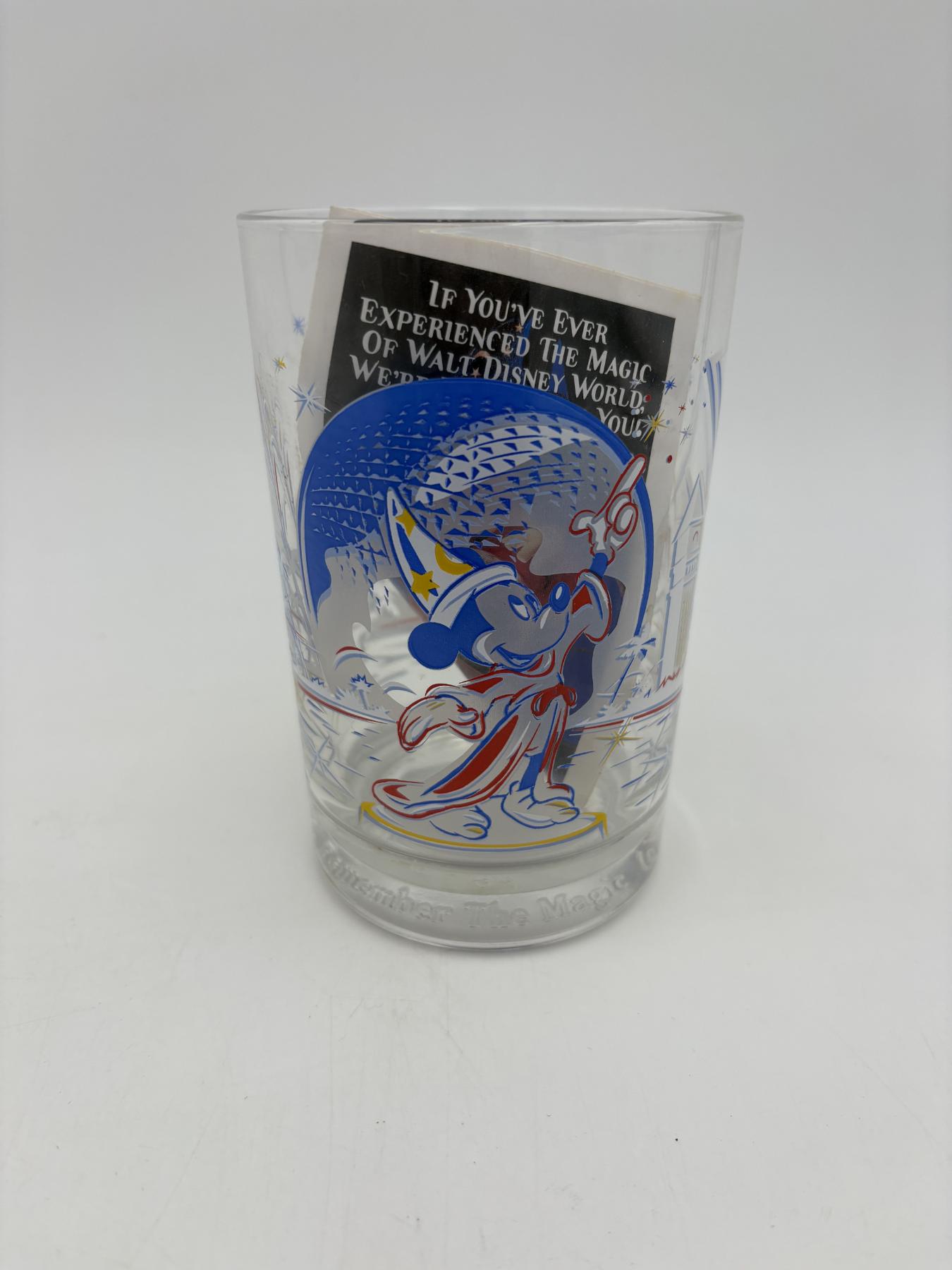 Disney Collectible Glass Cup - Mickey Mouse - Disney World - Wizard Mickey - Remember the Magic - with 25th Anniversary Papers - McDonald's Collectible - Walt Disney World