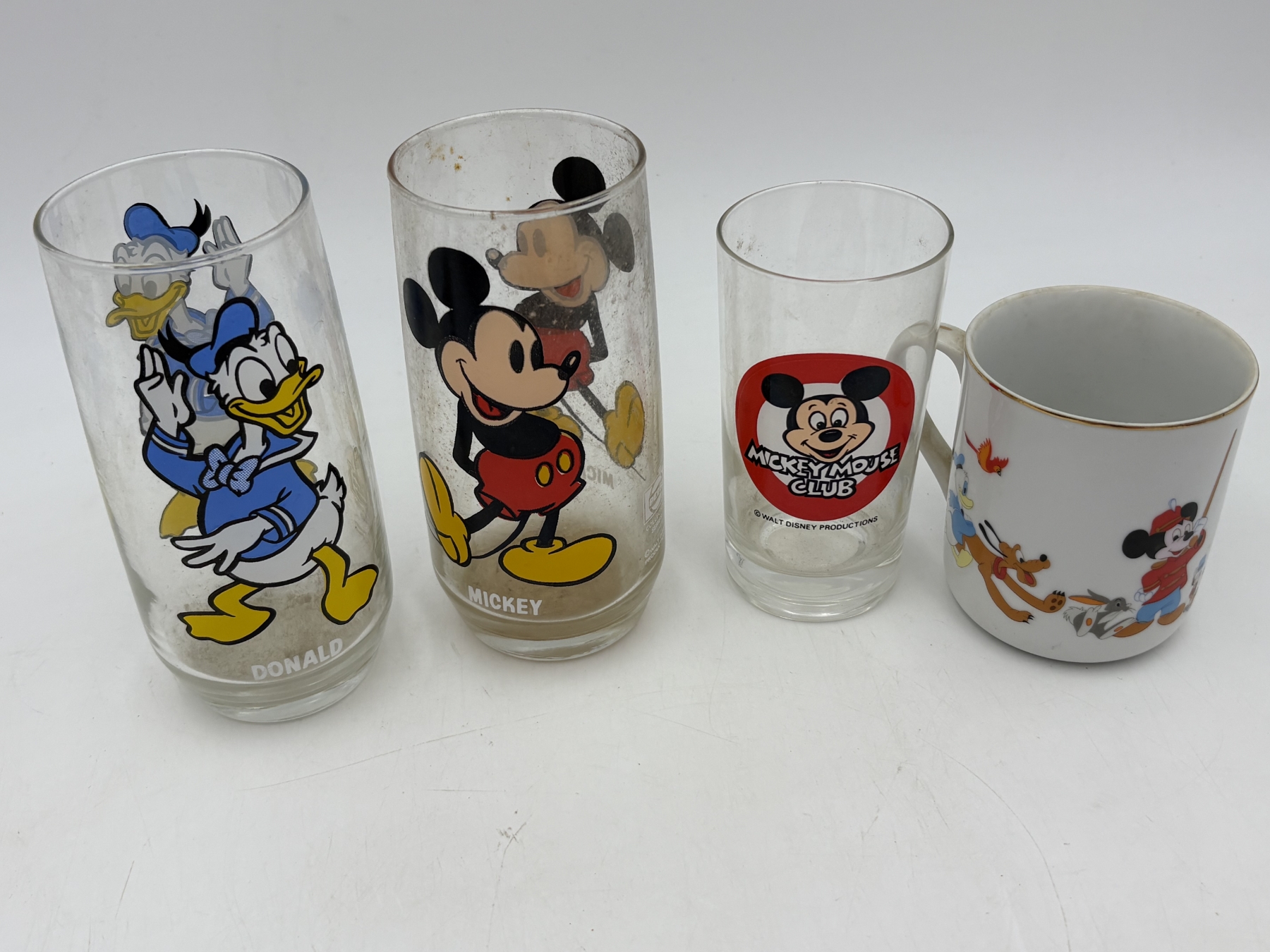 Disney Glassware - Donald Duck - Mickey - Mickey Mouse Club - Coffee Mug with Disney Characters - Walt Disney Prodcutions