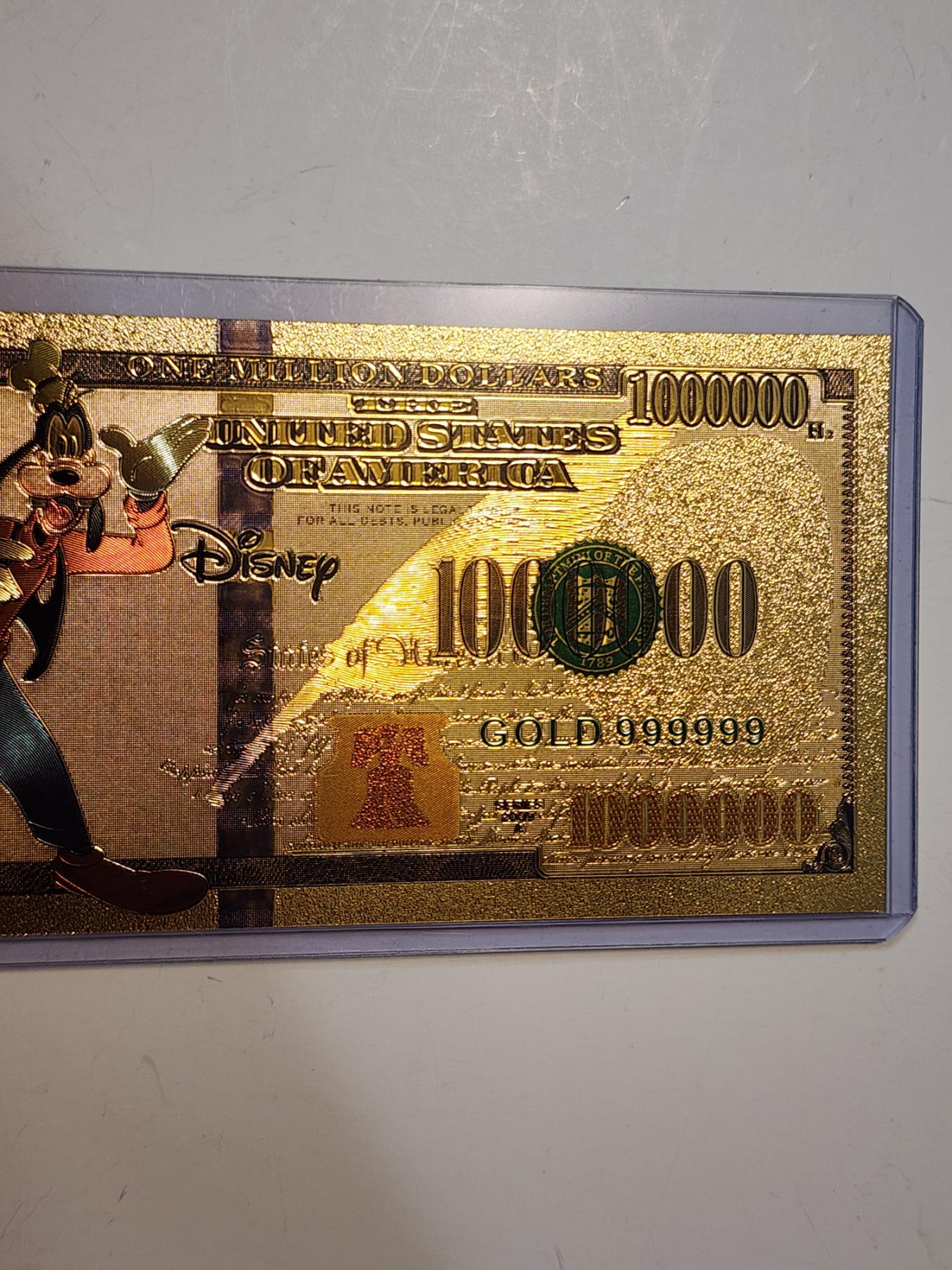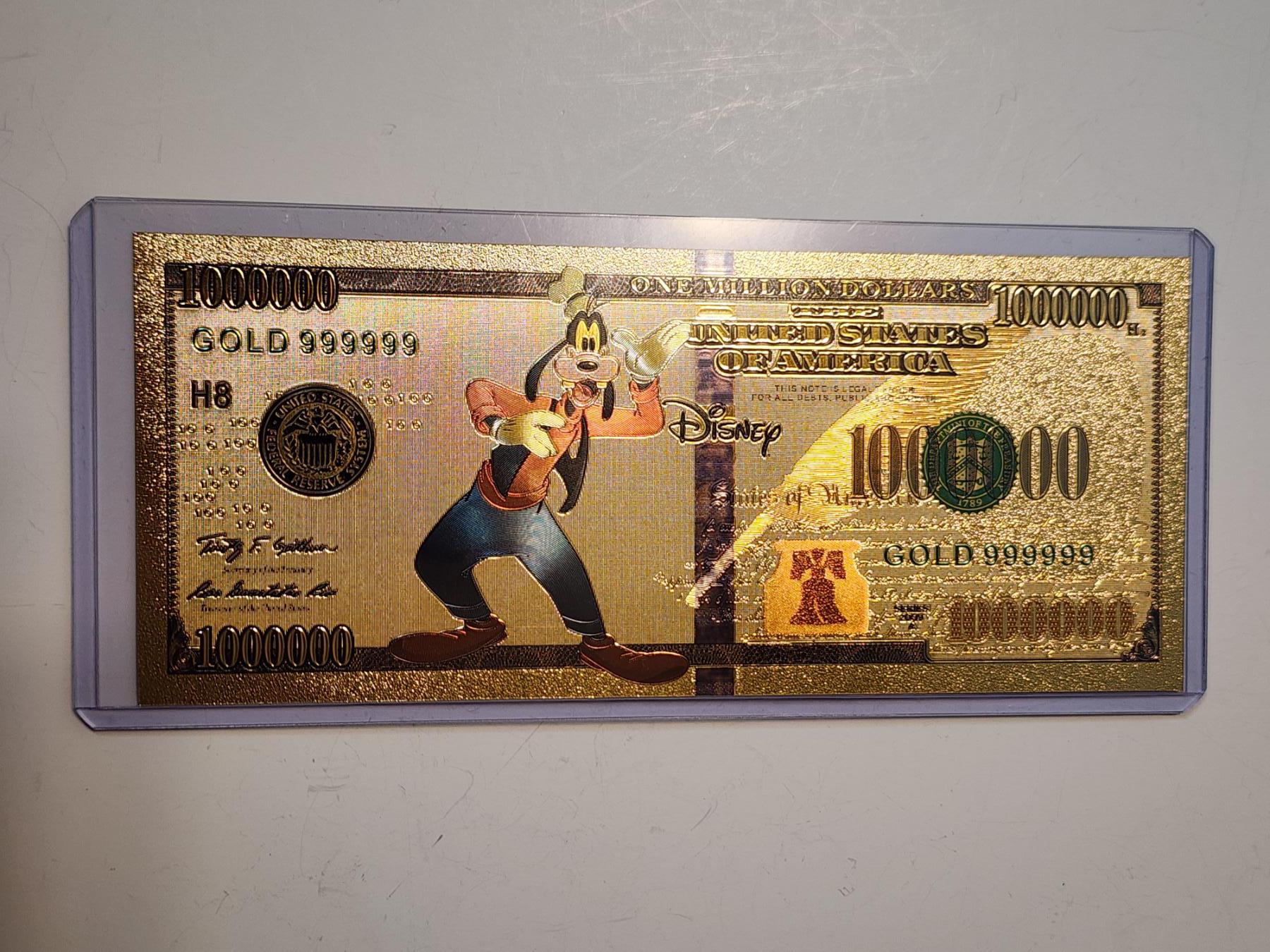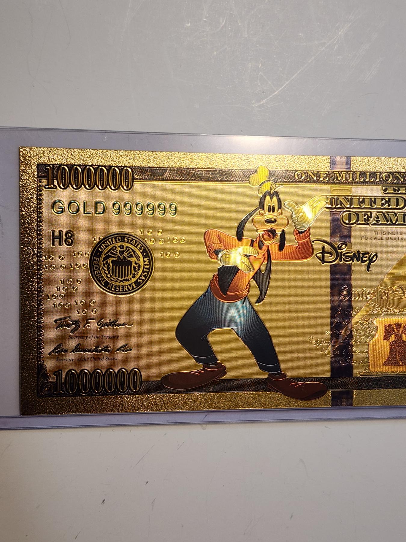 Disney Goofy Gold Foil .999999 - 24K Gold Note In Protective Holder - Mint Condition