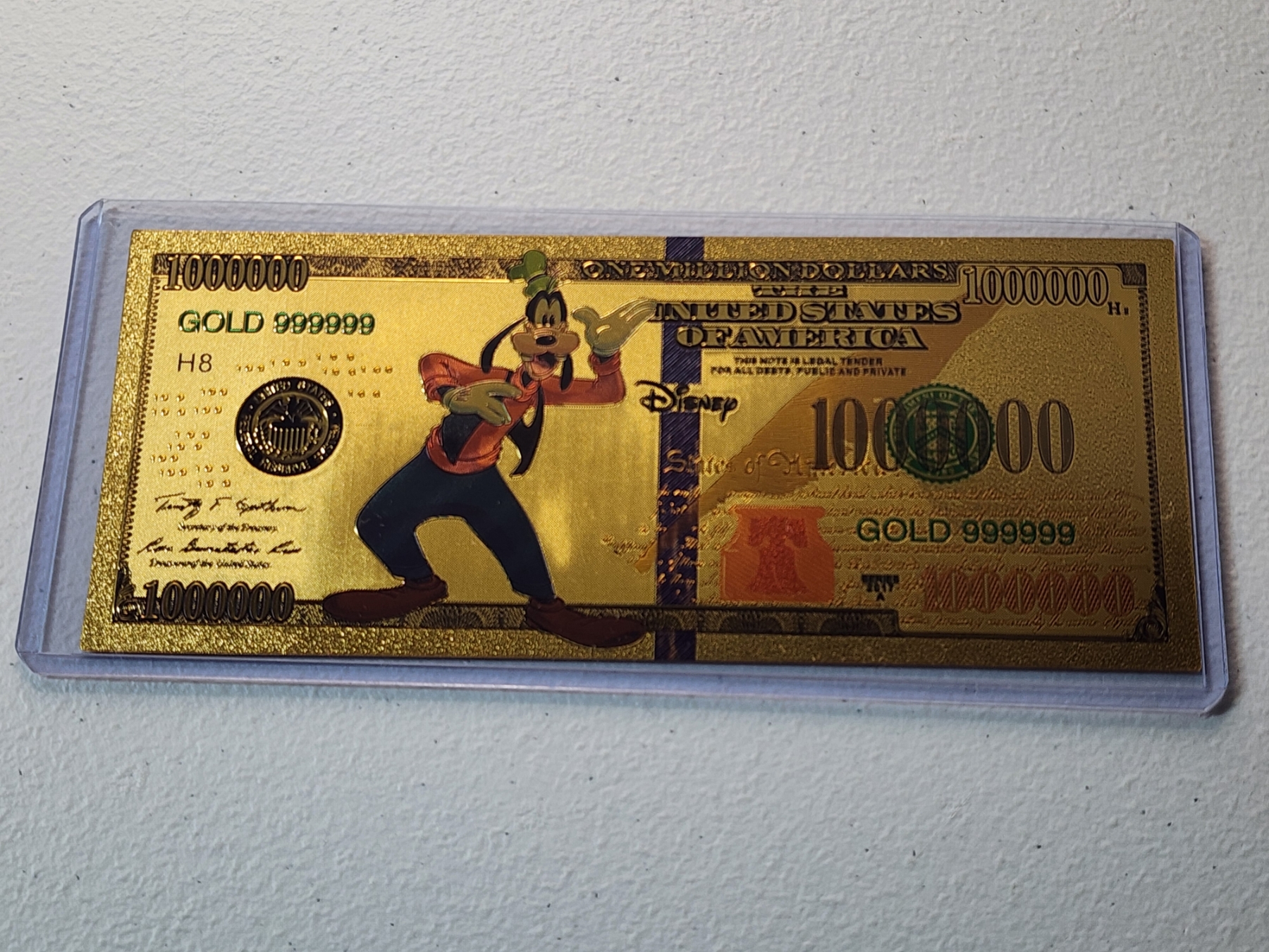 Disney Goofy Gold Foil .999999 - 24K Gold Note In Protective Holder - Mint Condition