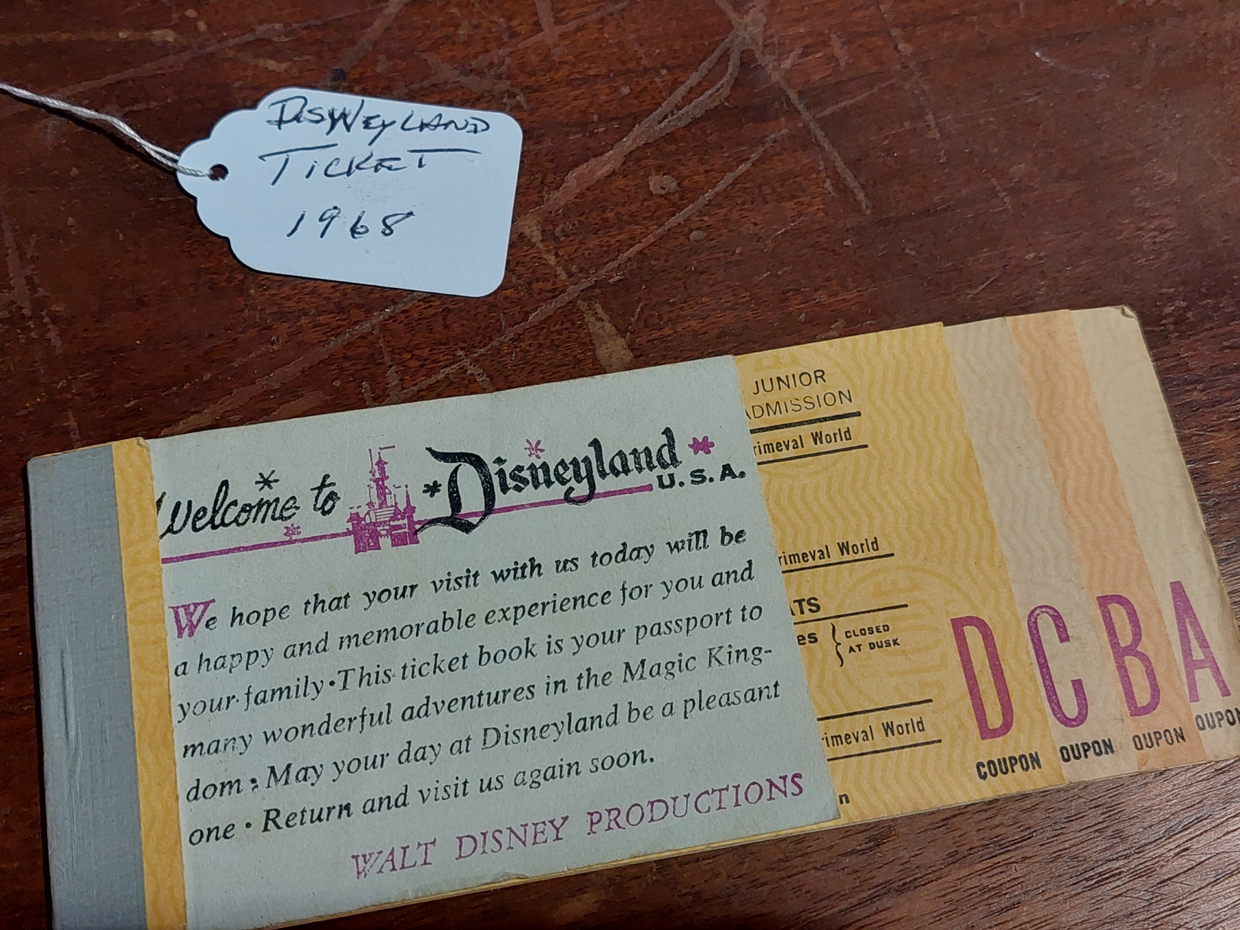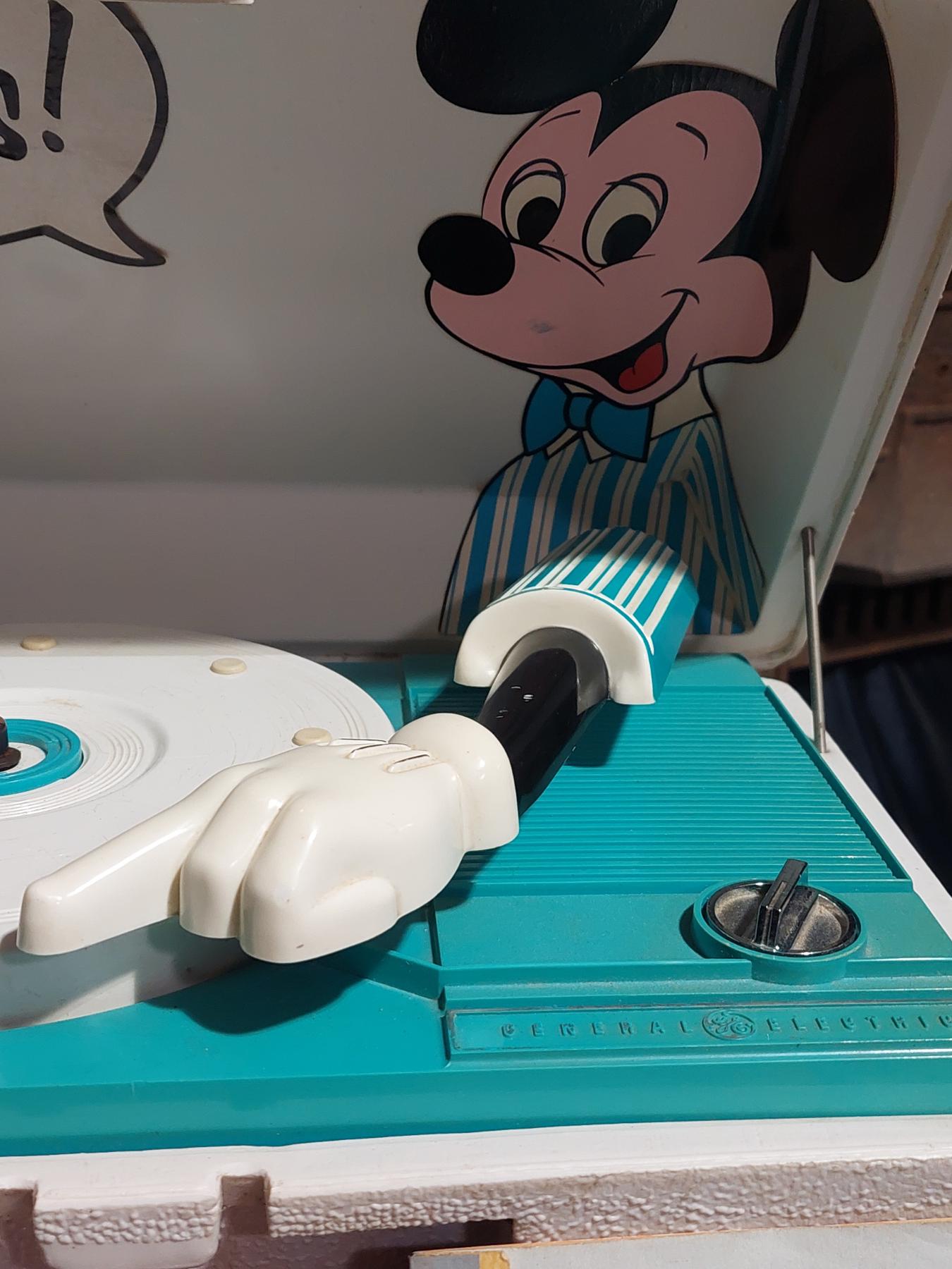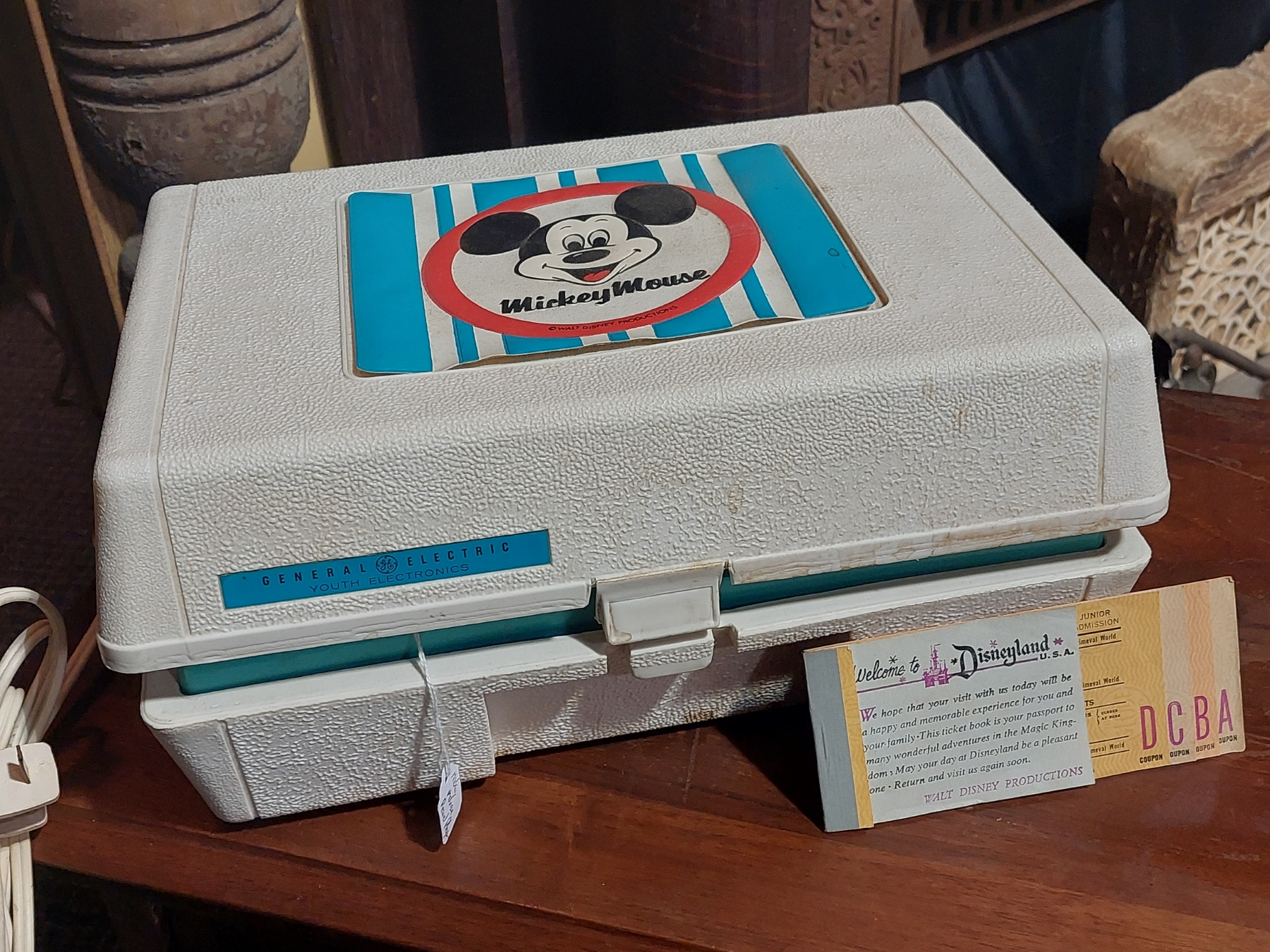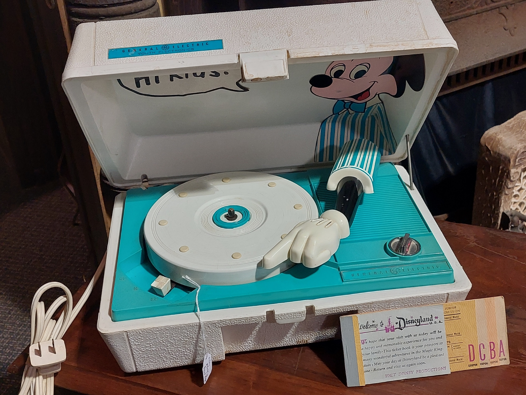 Disney Mickey Mouse 1950s Record Player & Original Disneyland Ticket ! Straight out of the 50s, this rare vintage Mickey Mouse 45 Record Player is still in excellent condition, in its own case, ready to use, See pics, with an original early ticket, unused from the Anaheim, California Disneyland (note: latch on case requires slight repair, otherwise fully intact)