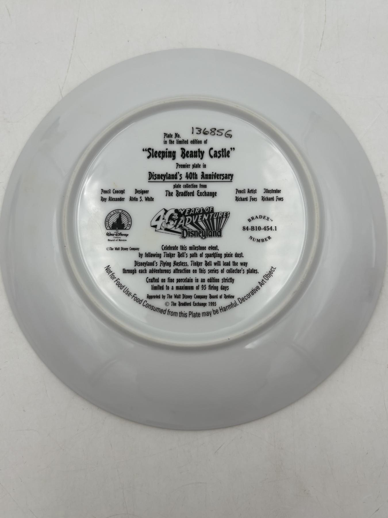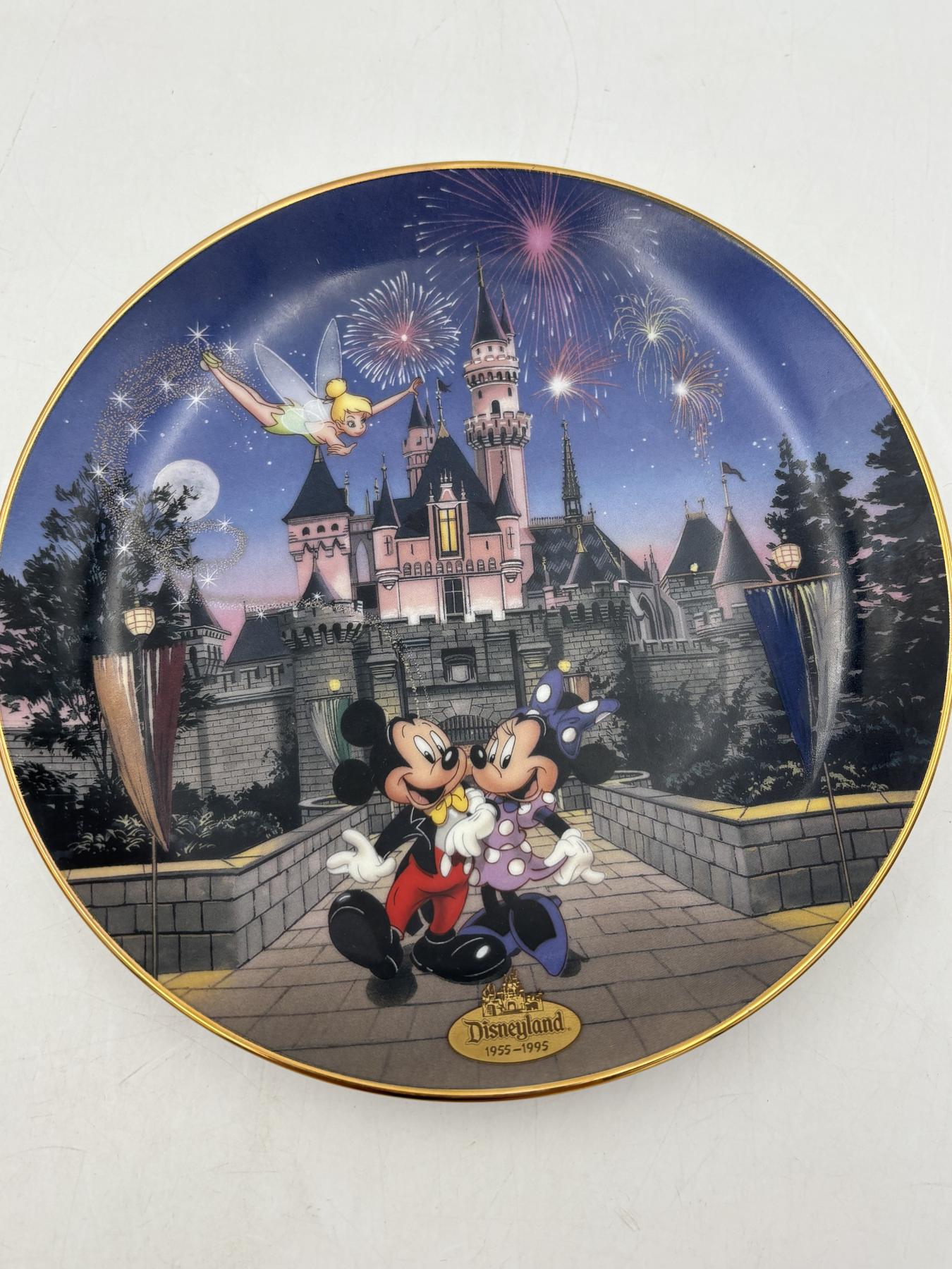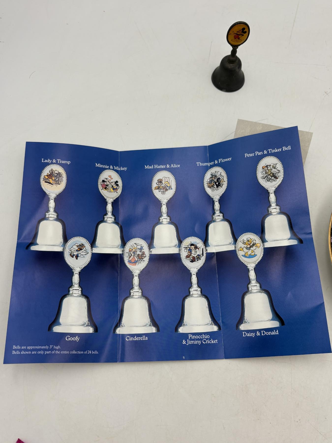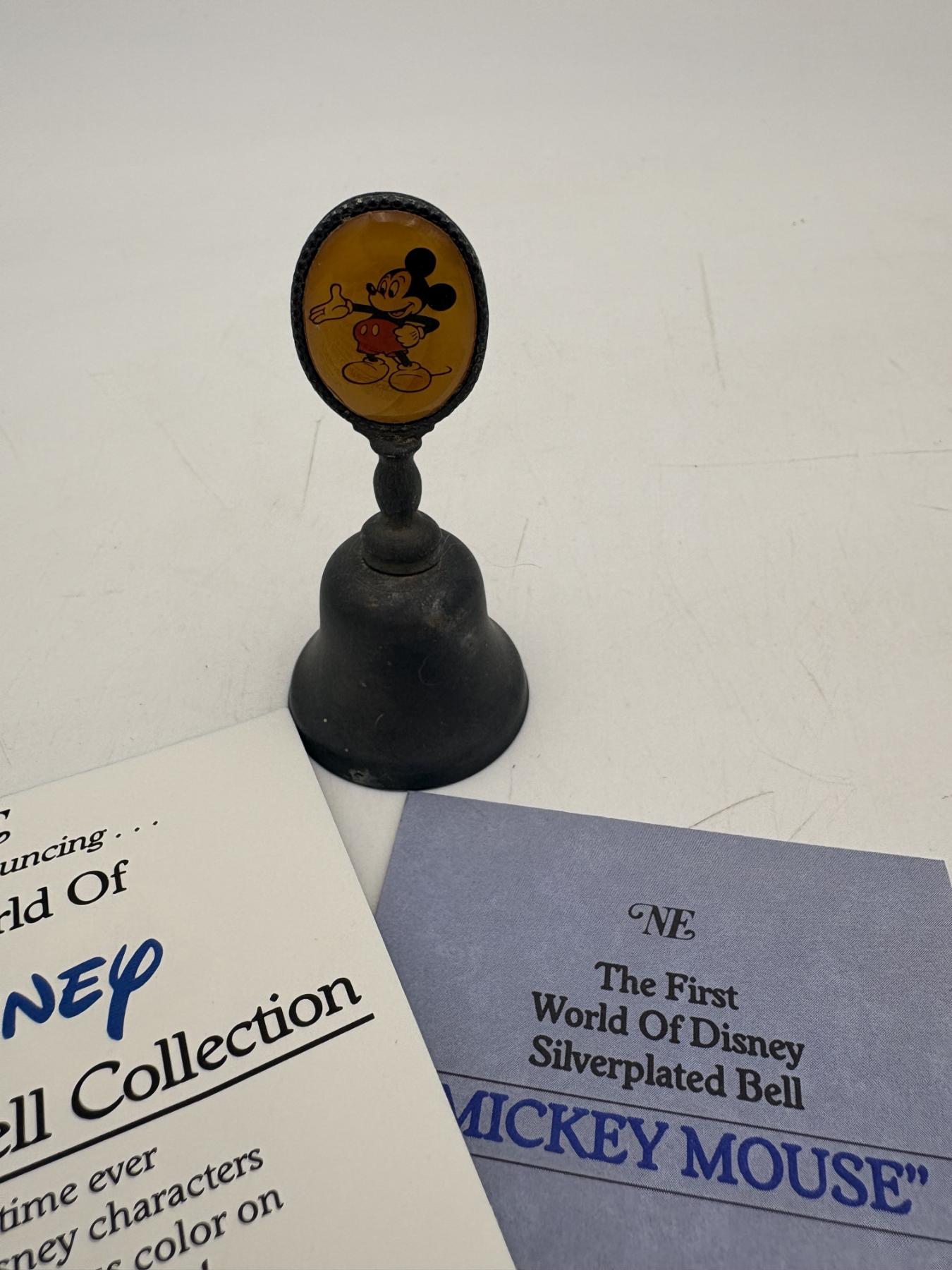 Disney Mickey Mouse Silverplated Bell with Certificate of Authenticity & Mickey Mouse Collectible Plate - Silverplated Bell Collection Paper Authorized by Walt Disney Co. - NE - The first world of Disney Silverplated Bell ~3 inches - Disneyland Plate 1955-1995 Mickey & Minnie Mouse at Sleeping Beauty's Castle - Disney's 40th Anniversary