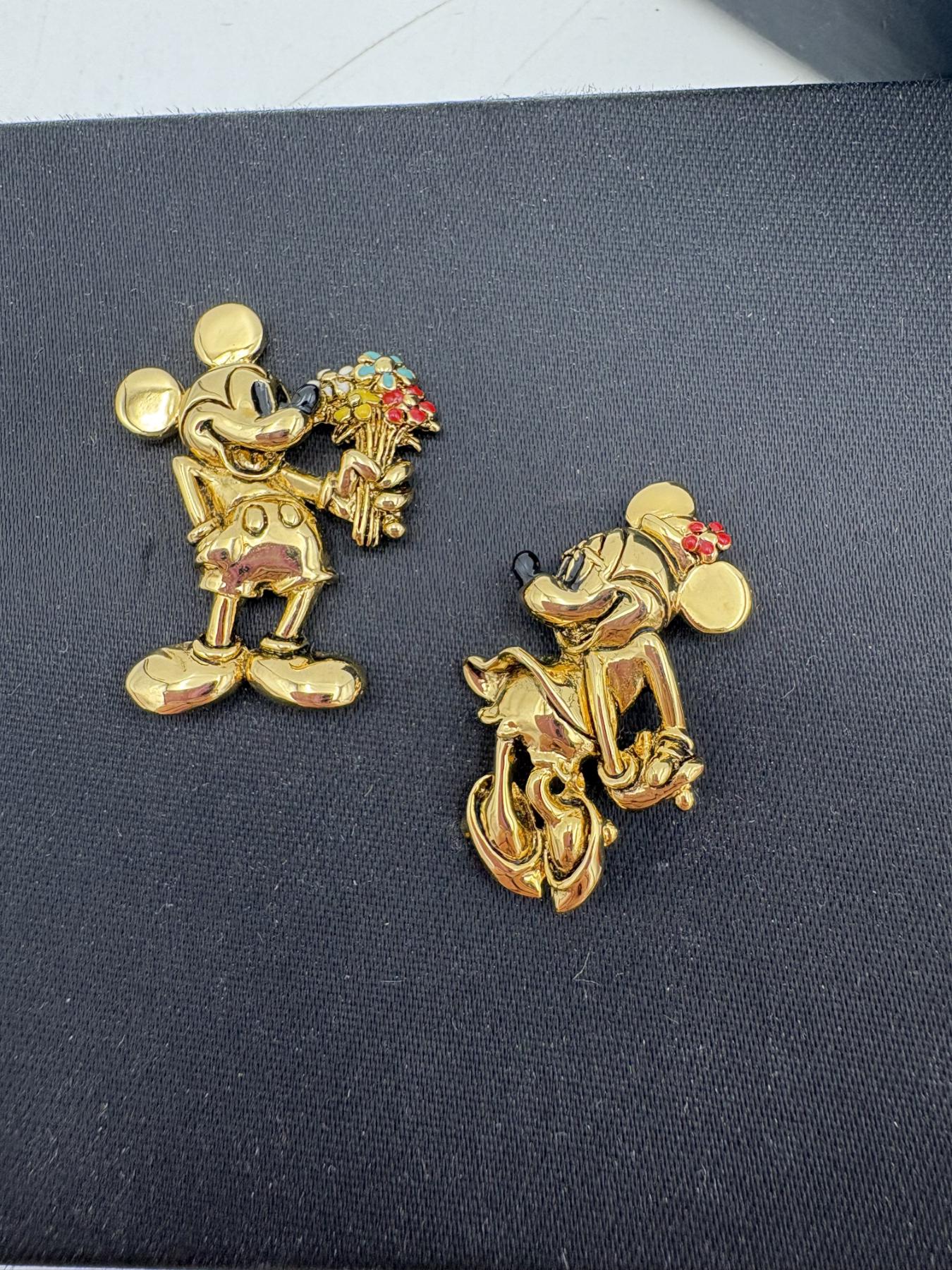 Disney Napier Mickey & Minnie Mouse set of 2 Gold Toned Brooch Pins