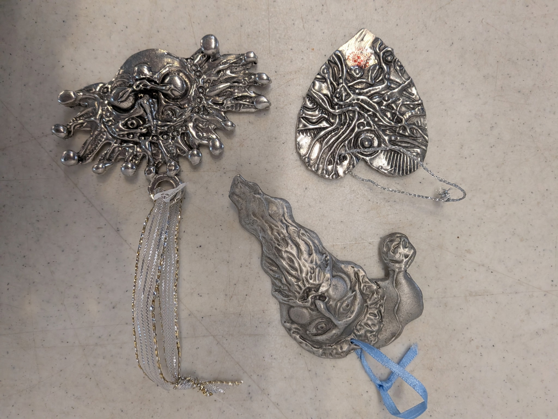 Don Drumm Studios Handmade Aluminum Collectable Ornament Group. Santa, Heart & Signature Sun Designs. These Are Perfection!