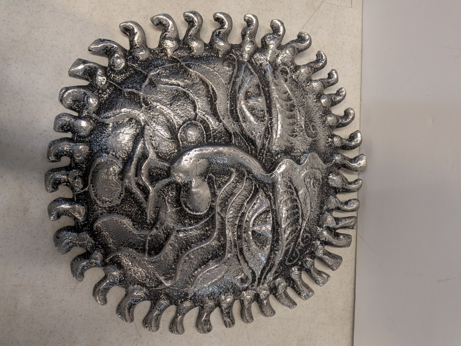 Don Drumm Studios Handmade Aluminum Large Sun Face Wall Hanging Art.