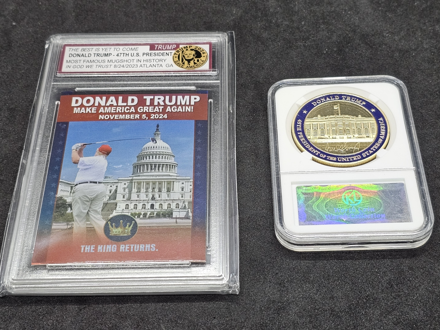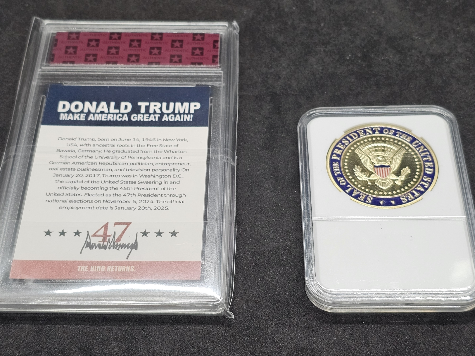 Donald Trump #47 Commemorative Coin and Trading Card - GREAT CONDITION! A MUST HAVE FOR ANY FAN OR COLLECTOR!!! PLACE YOUR BID TODAY AND MAKE YOUR COLLECTION GREAT AGAIN!!!