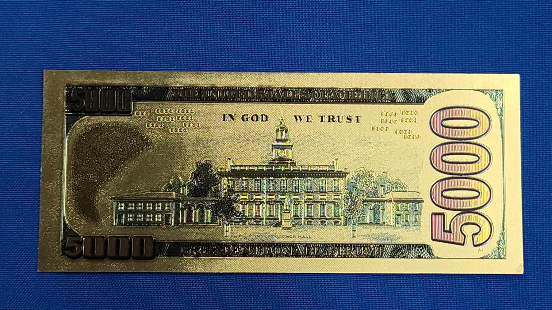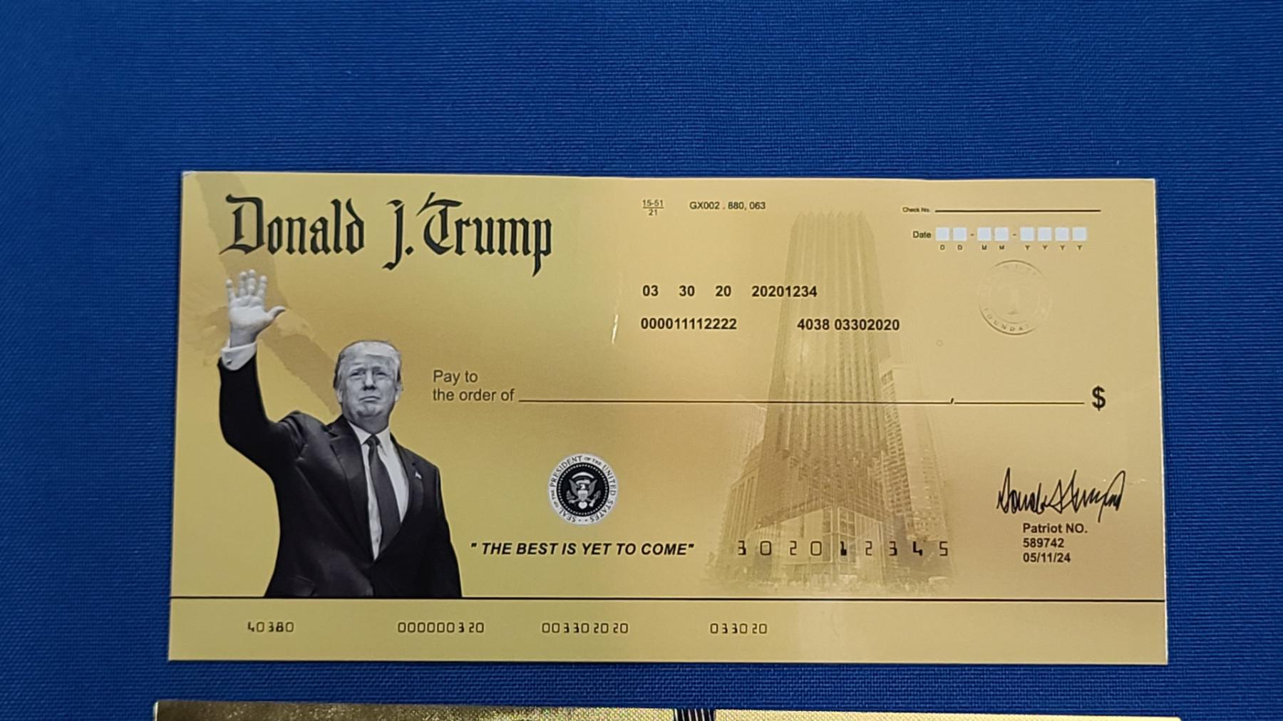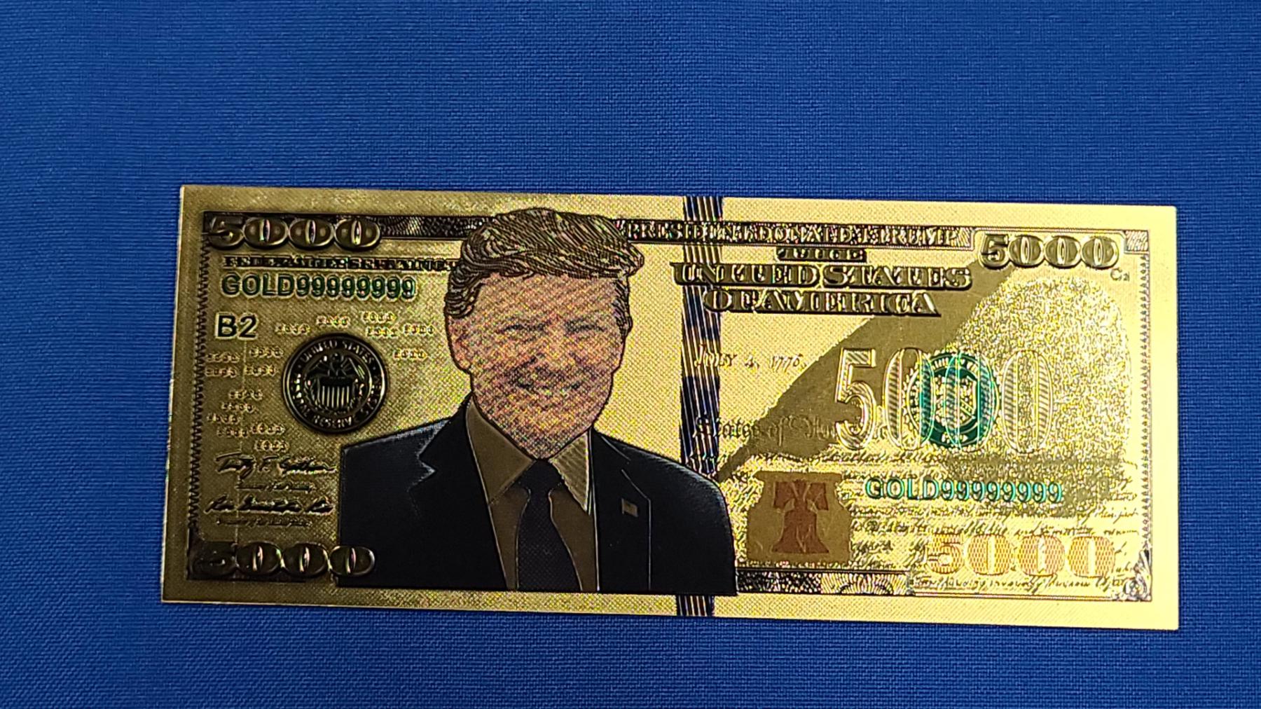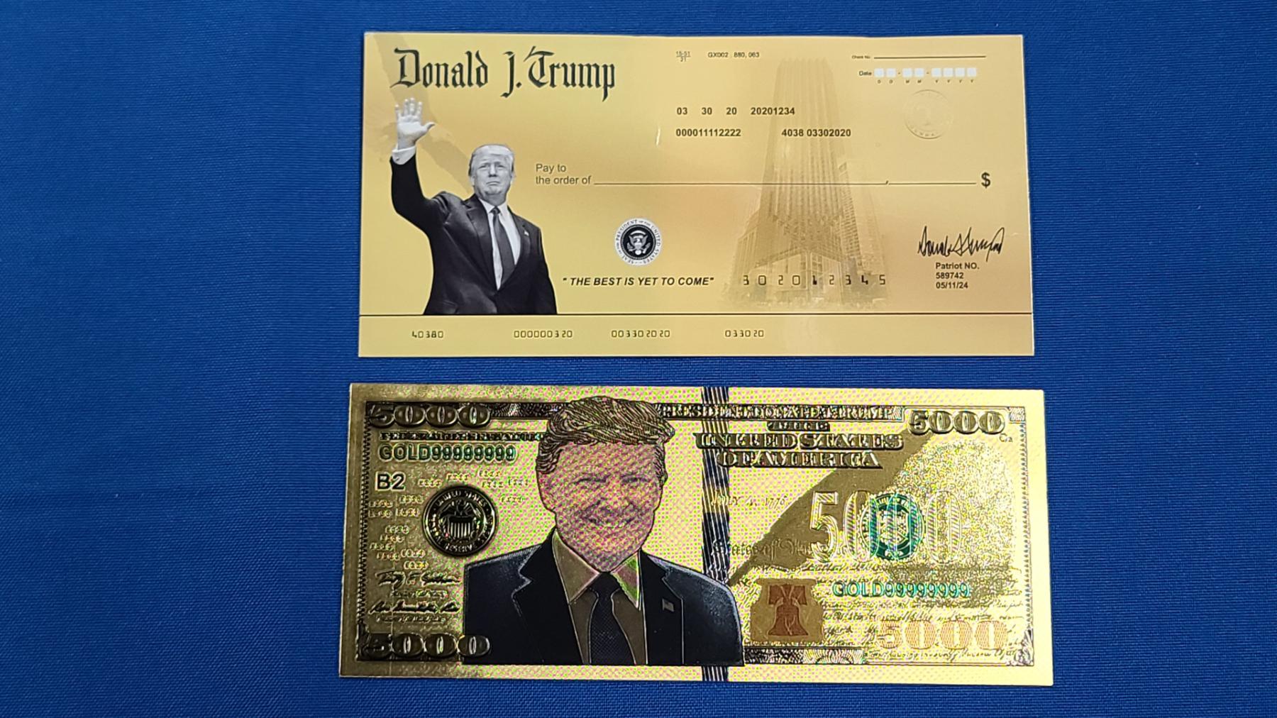 Donald Trump Gold Foil $5,000 Commemorative Novelty Note & Novelty Donald Trump Check