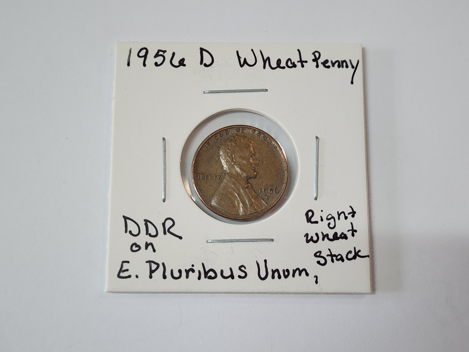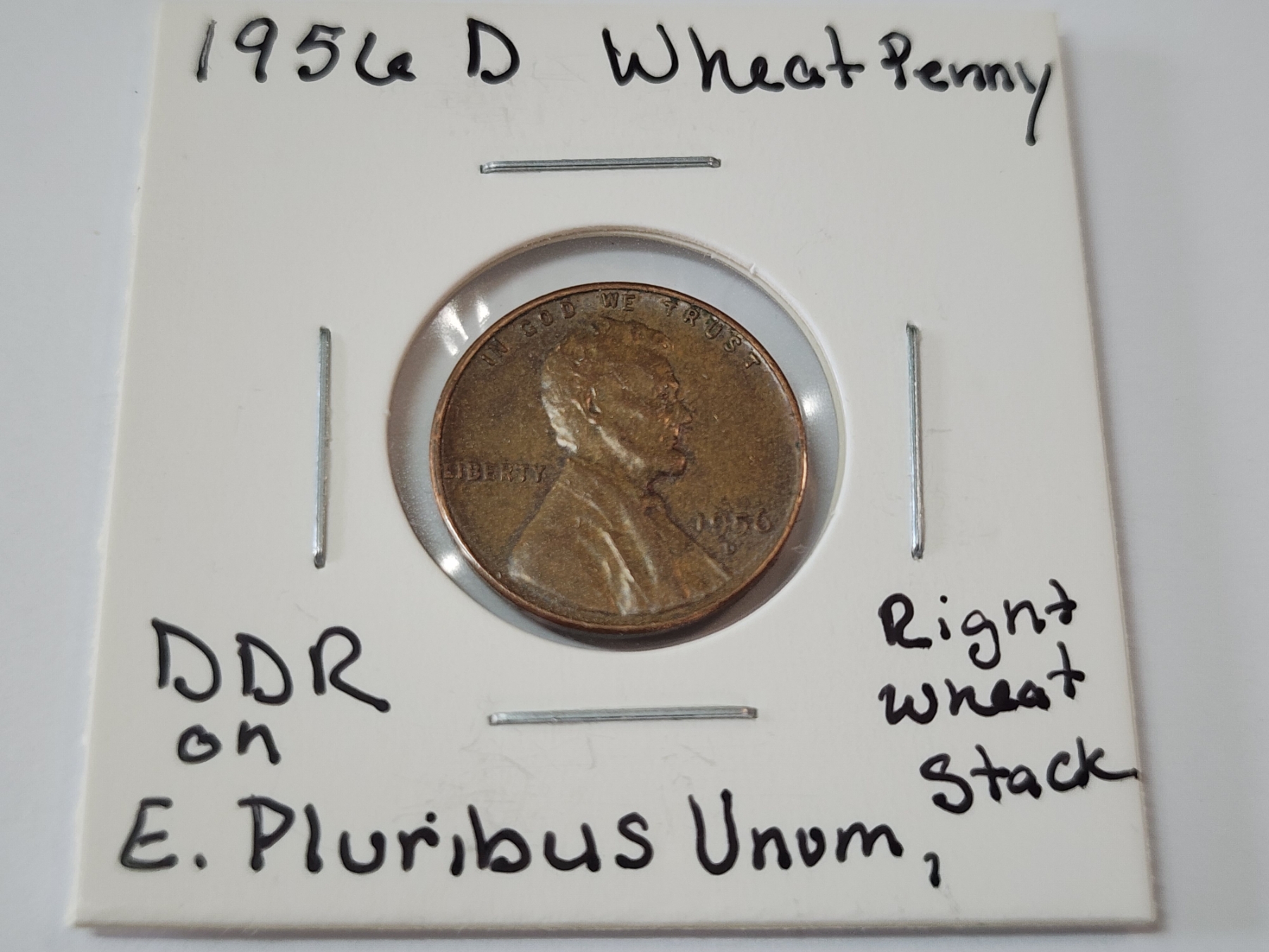 ERROR COIN: 1956-D Lincoln Wheat Penny - DDR on "E. Pluribus Unum", Right Wheat Stack