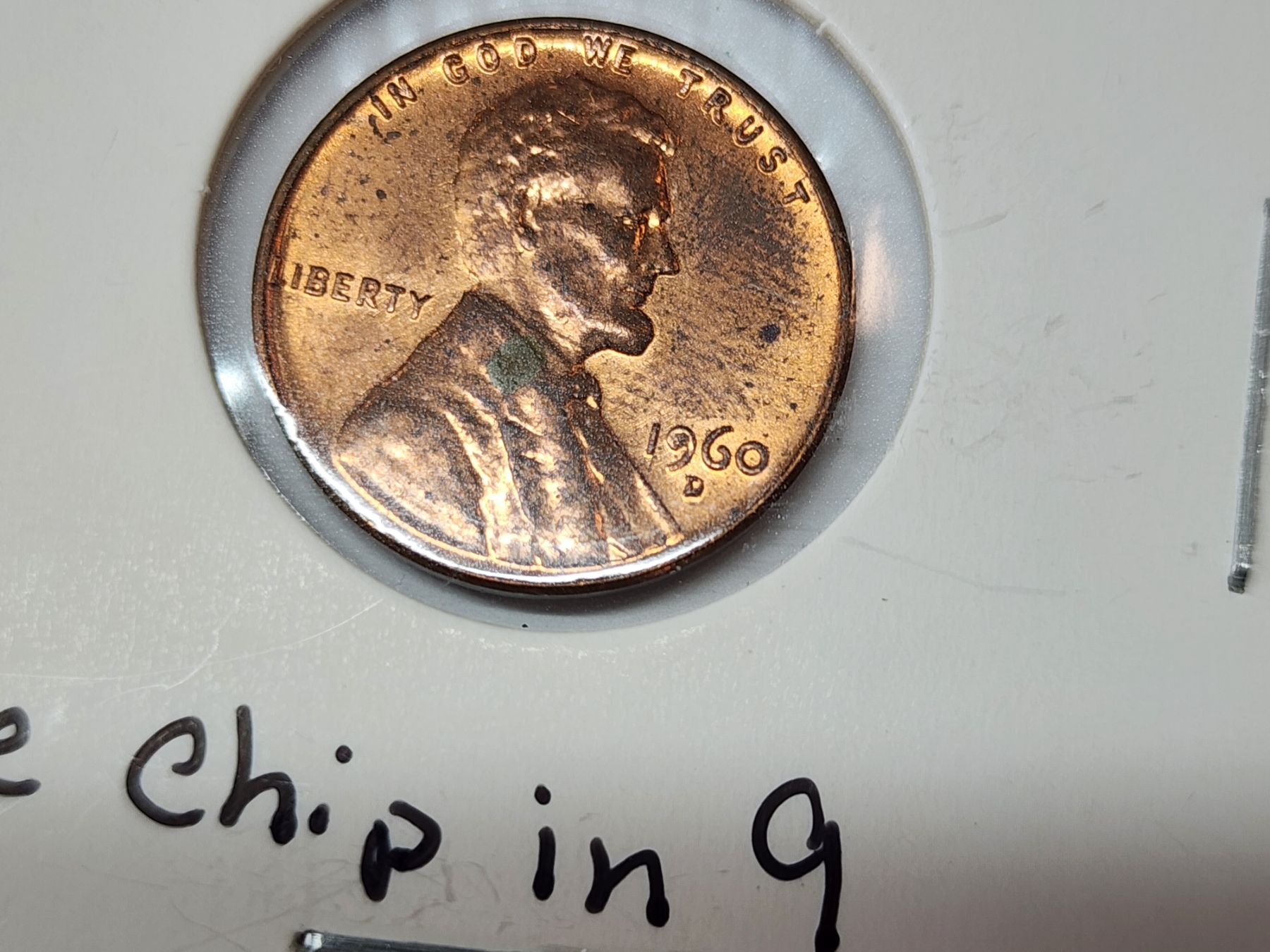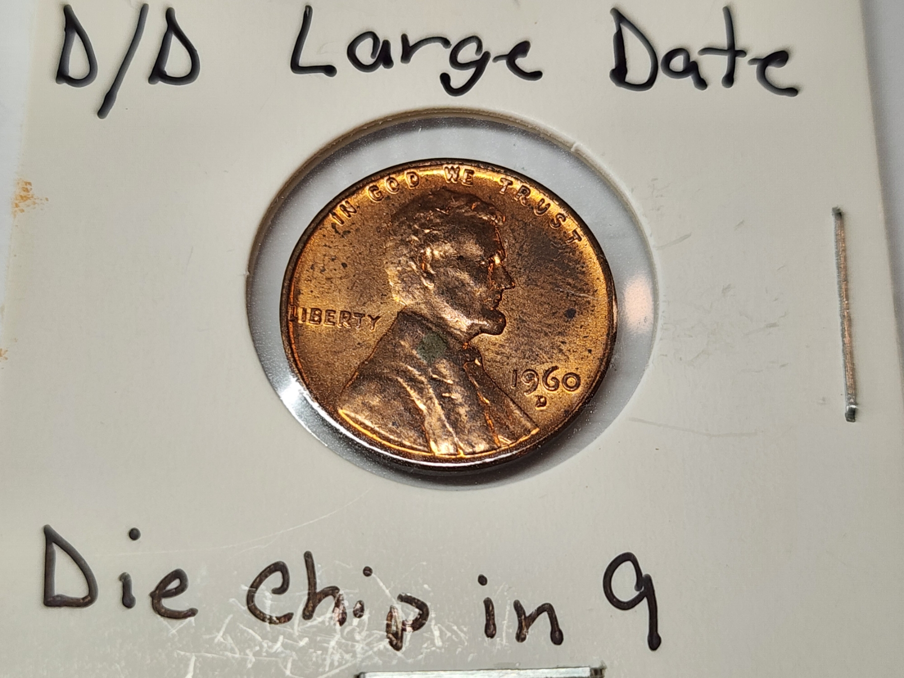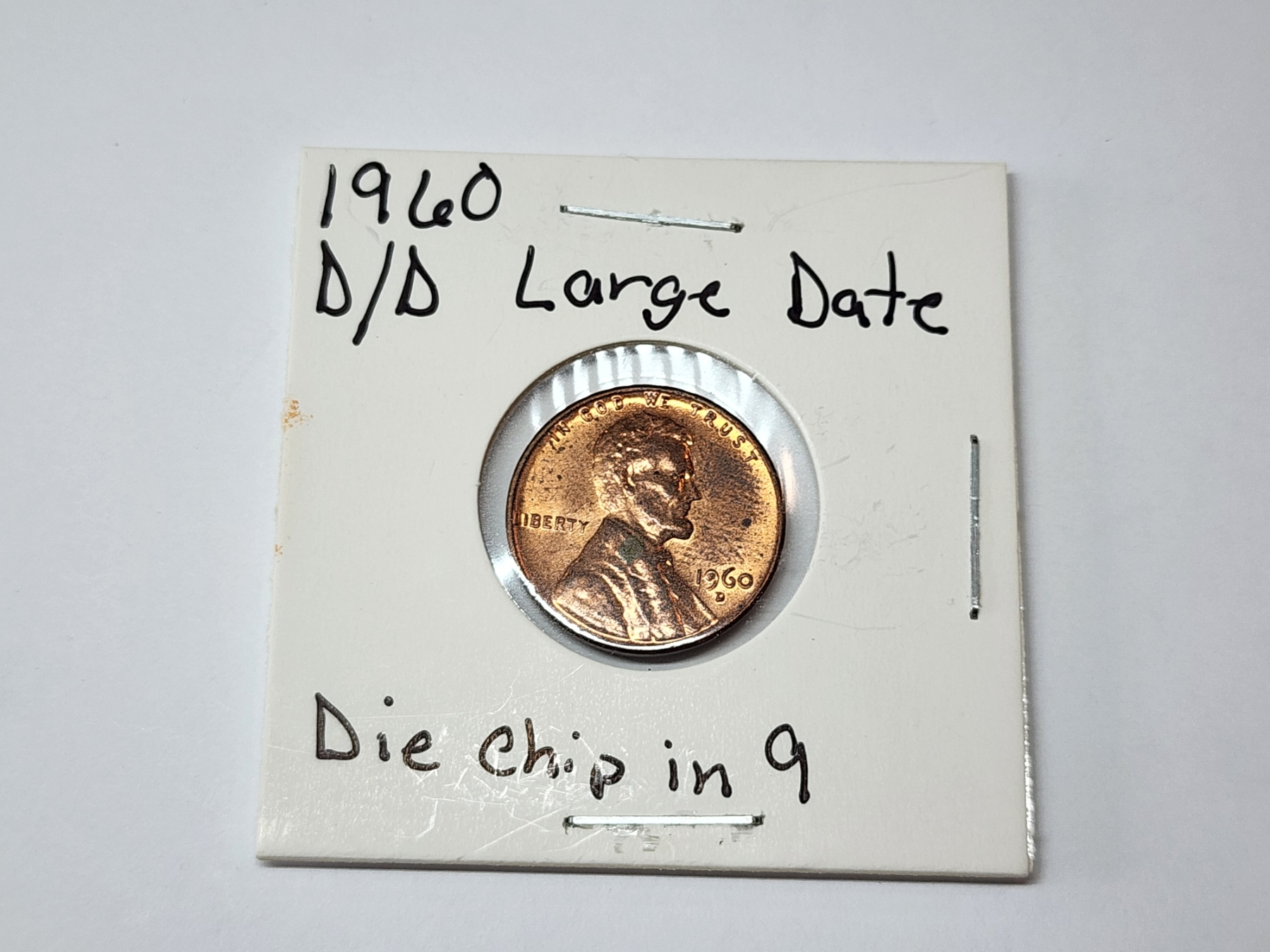ERROR COIN: 1960 Lincoln Memorial Cent D/D Large Date Die Chip in "9"