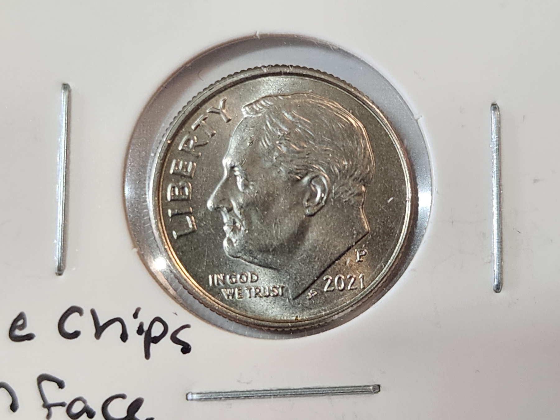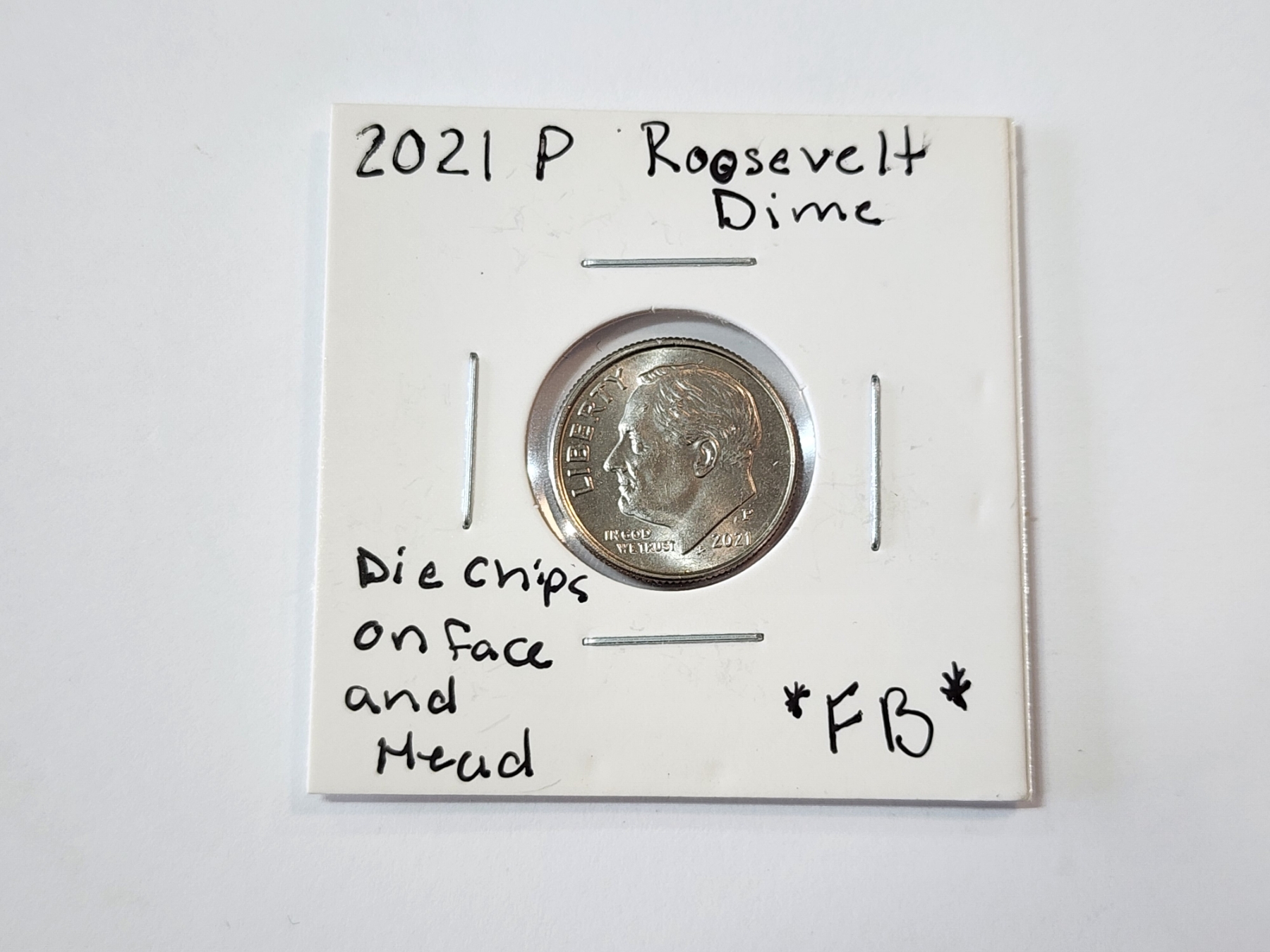 ERROR COIN: 2021 Roosevelt Dime - Full Bands - Die Crack on Face and Head