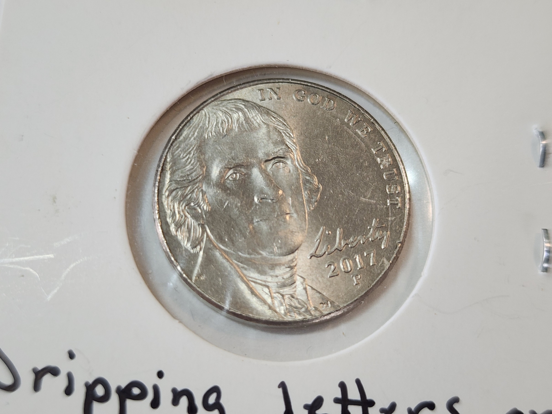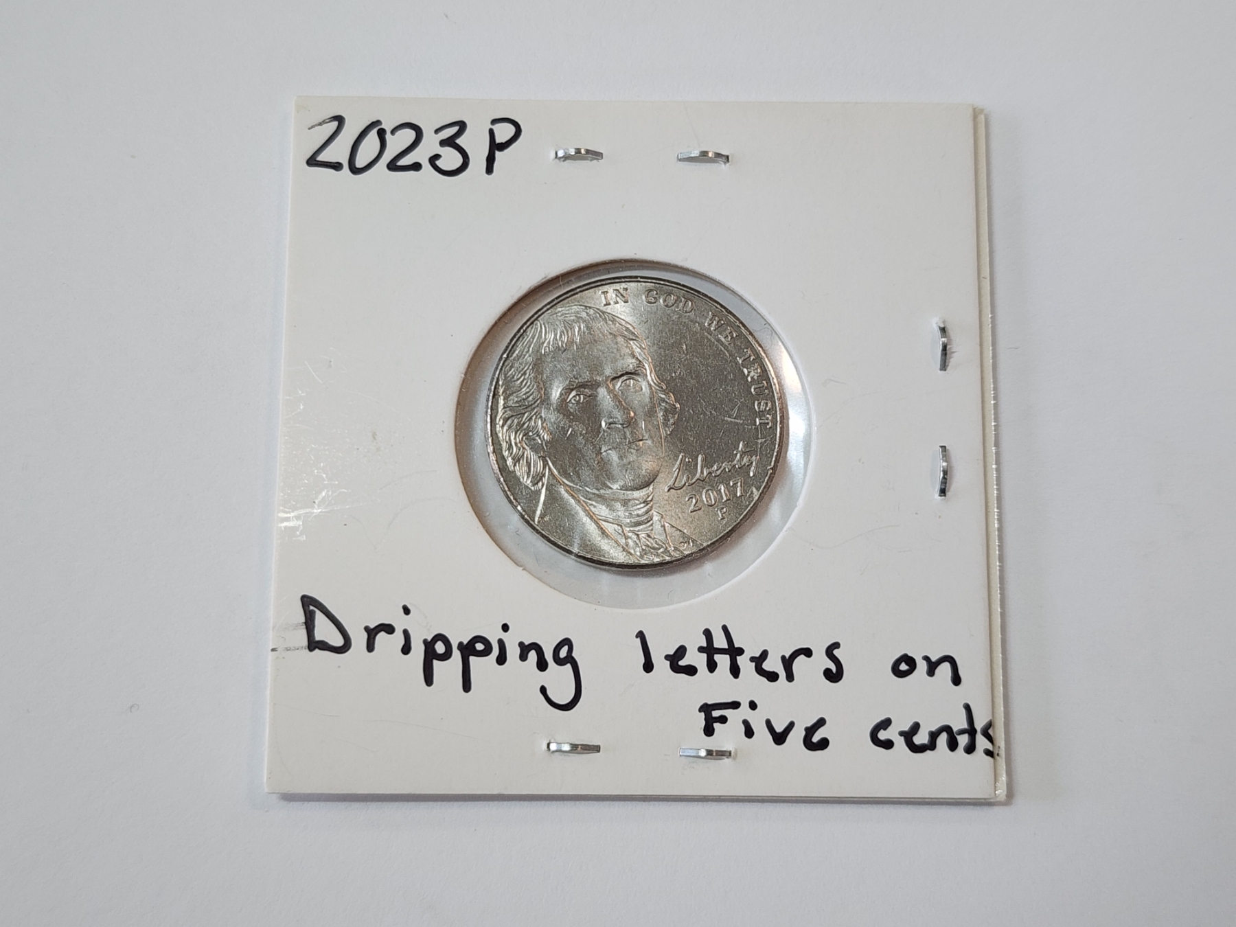 ERROR COIN: 2023 Jefferson Nickel: Dripping Letters on "Five Cents"