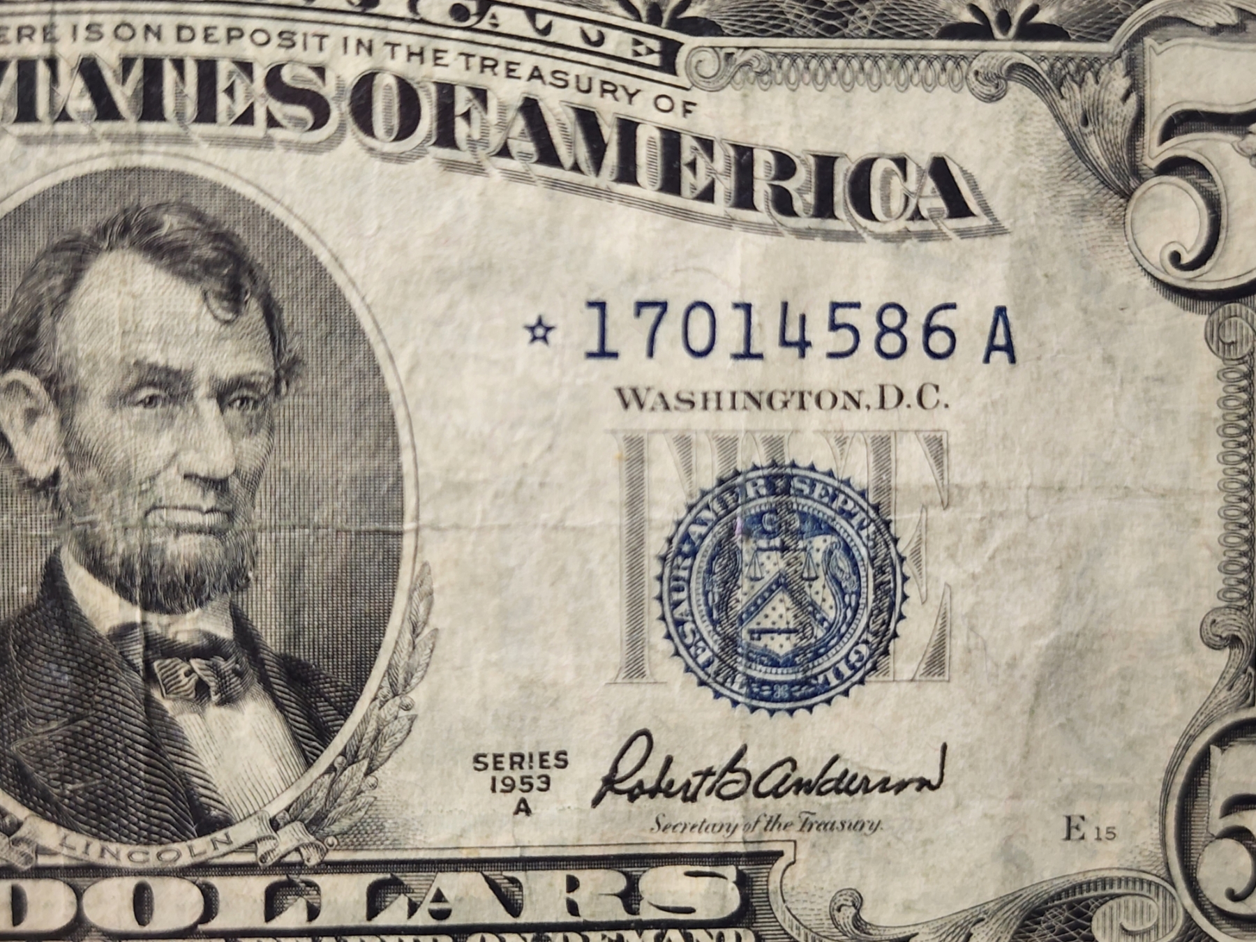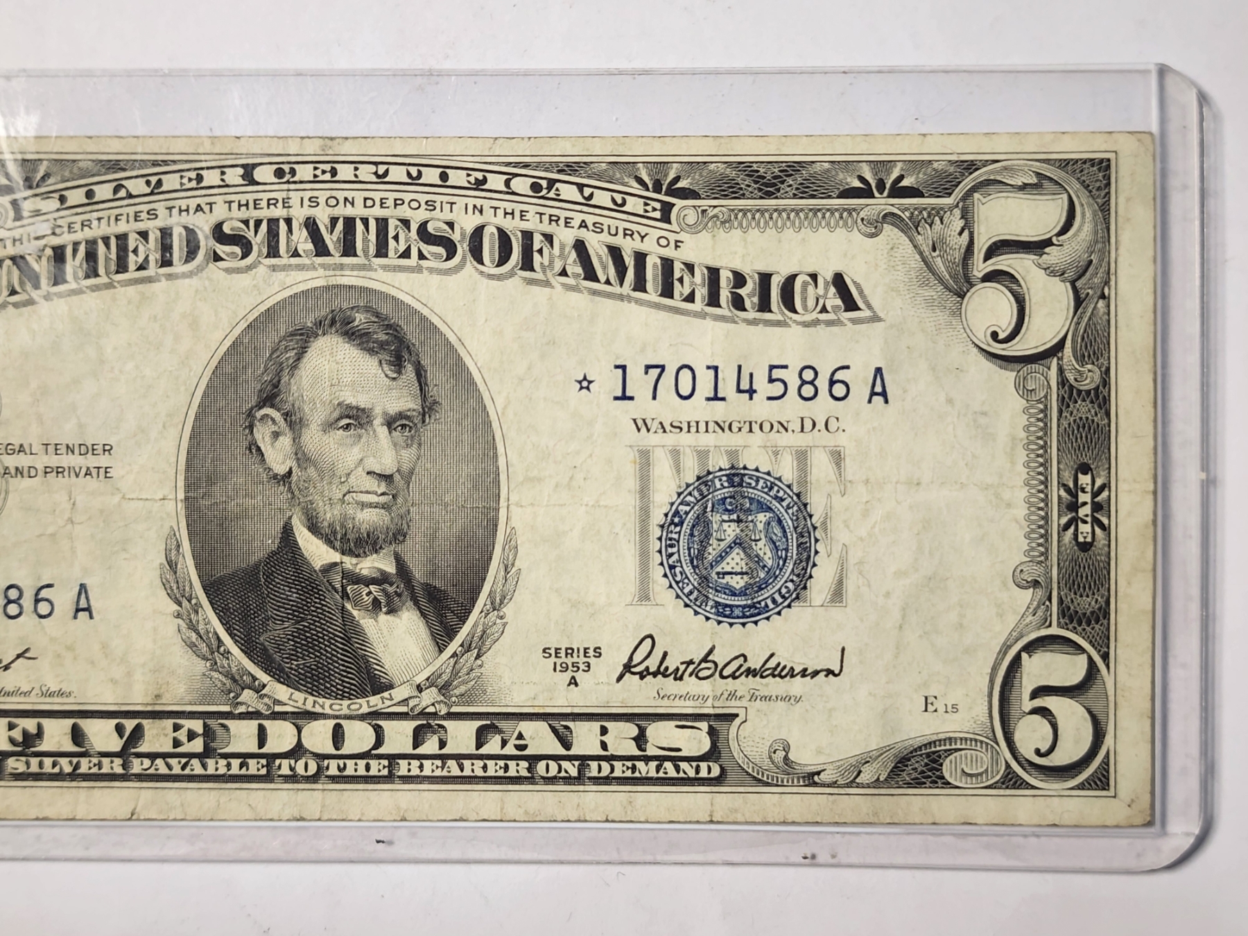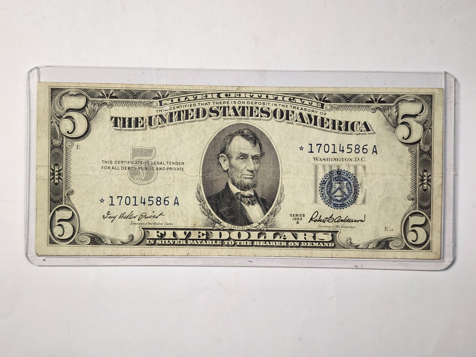*EXCELLENT COLLECTOR'S STAR NOTE* 1953A United States Federal Reserve $5 Blue Seal Silver Certificate STAR Note!