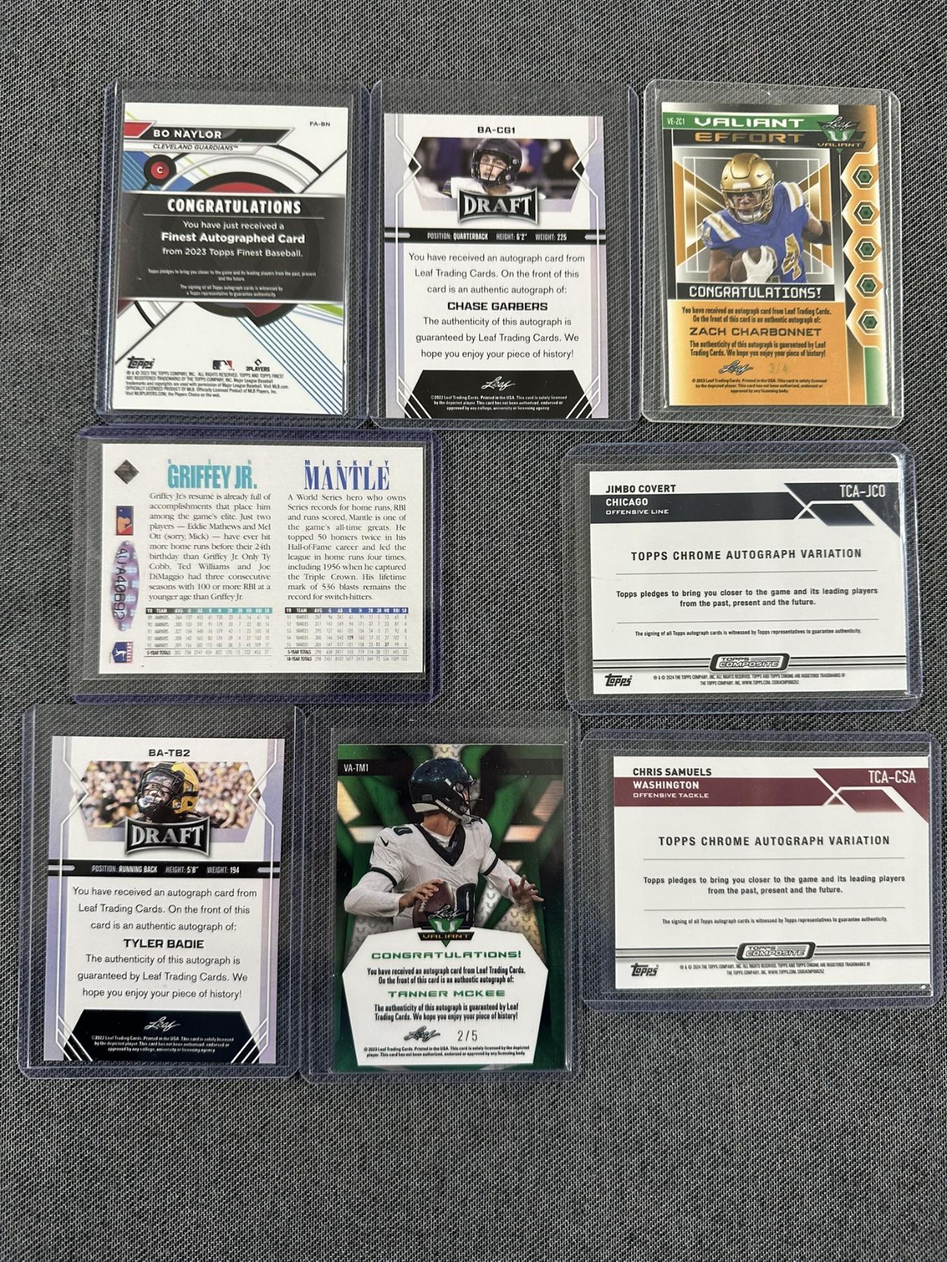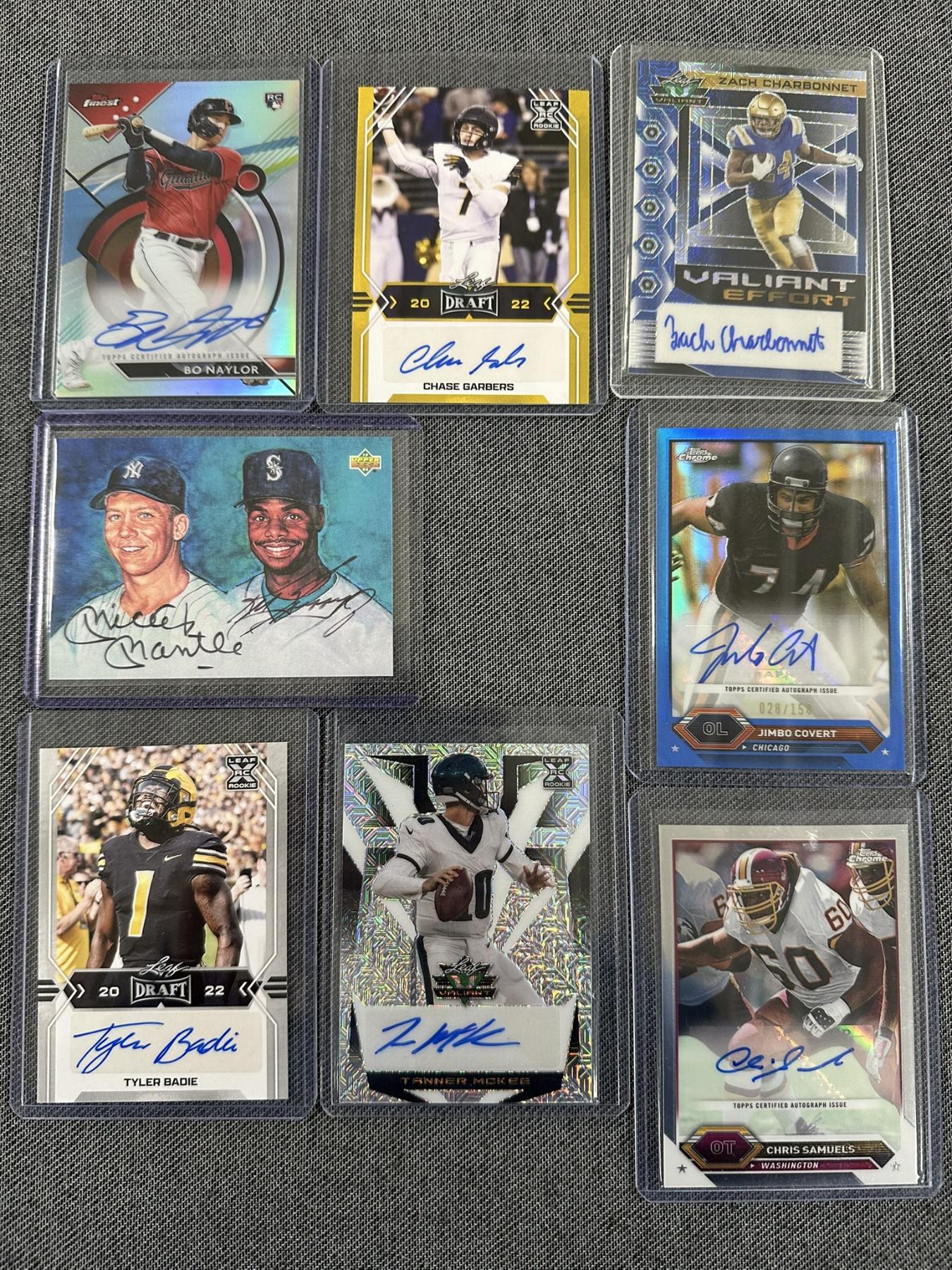 Eight Autographed Trading Cards - Mint Condition - Mickey Mantle Card is a Reprint