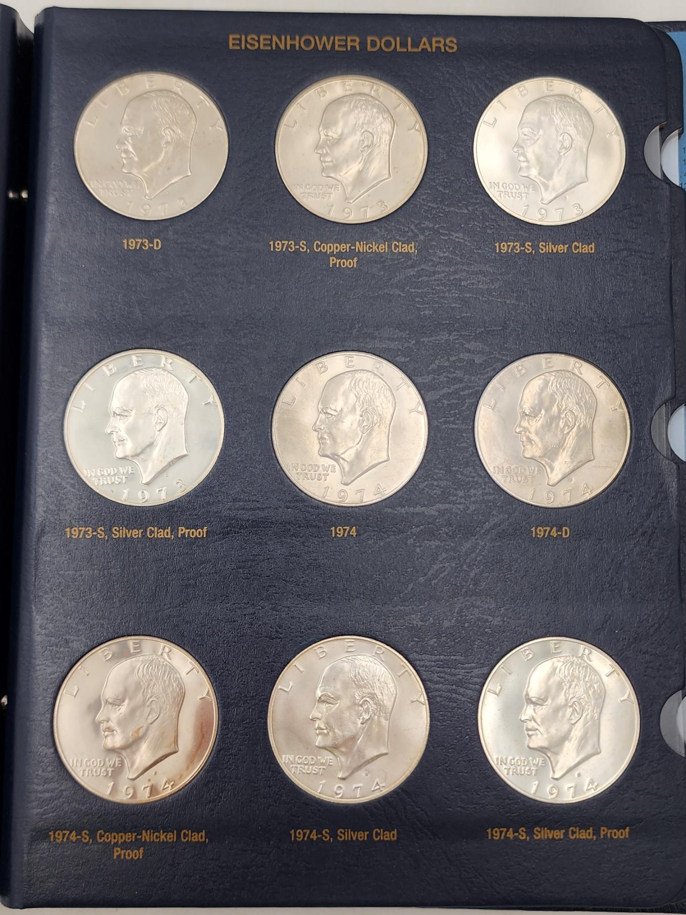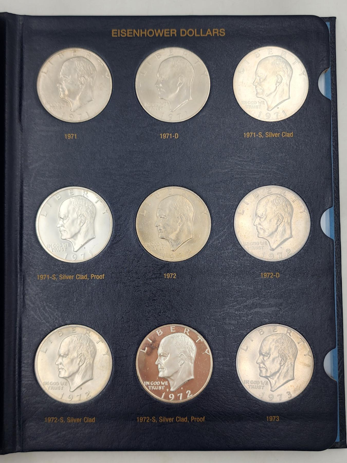 Eisenhower Dollars 1971-1978 Collection Book - 32 Coins Including Silver Clad Proofs!