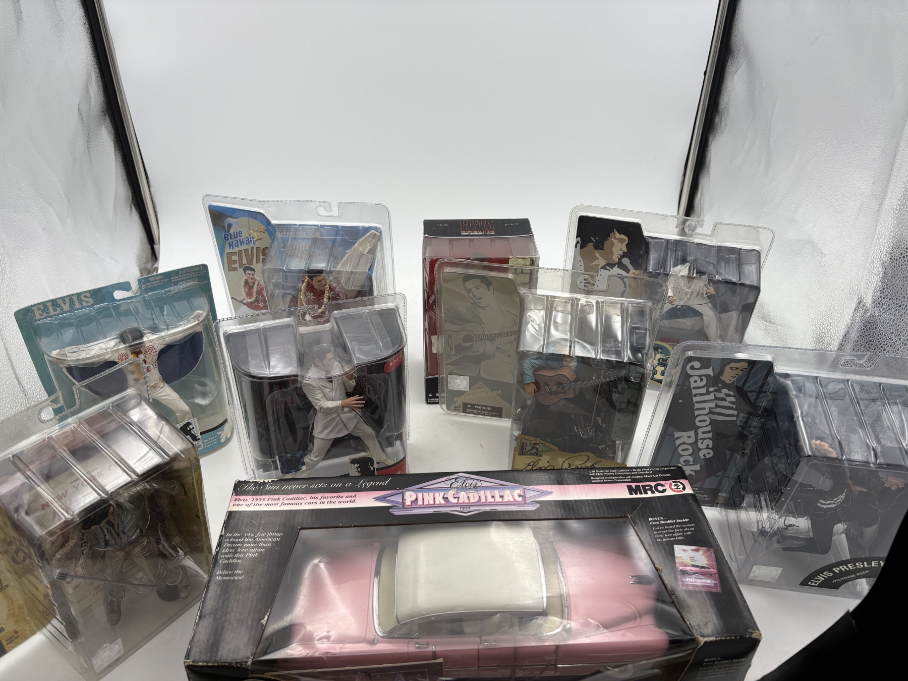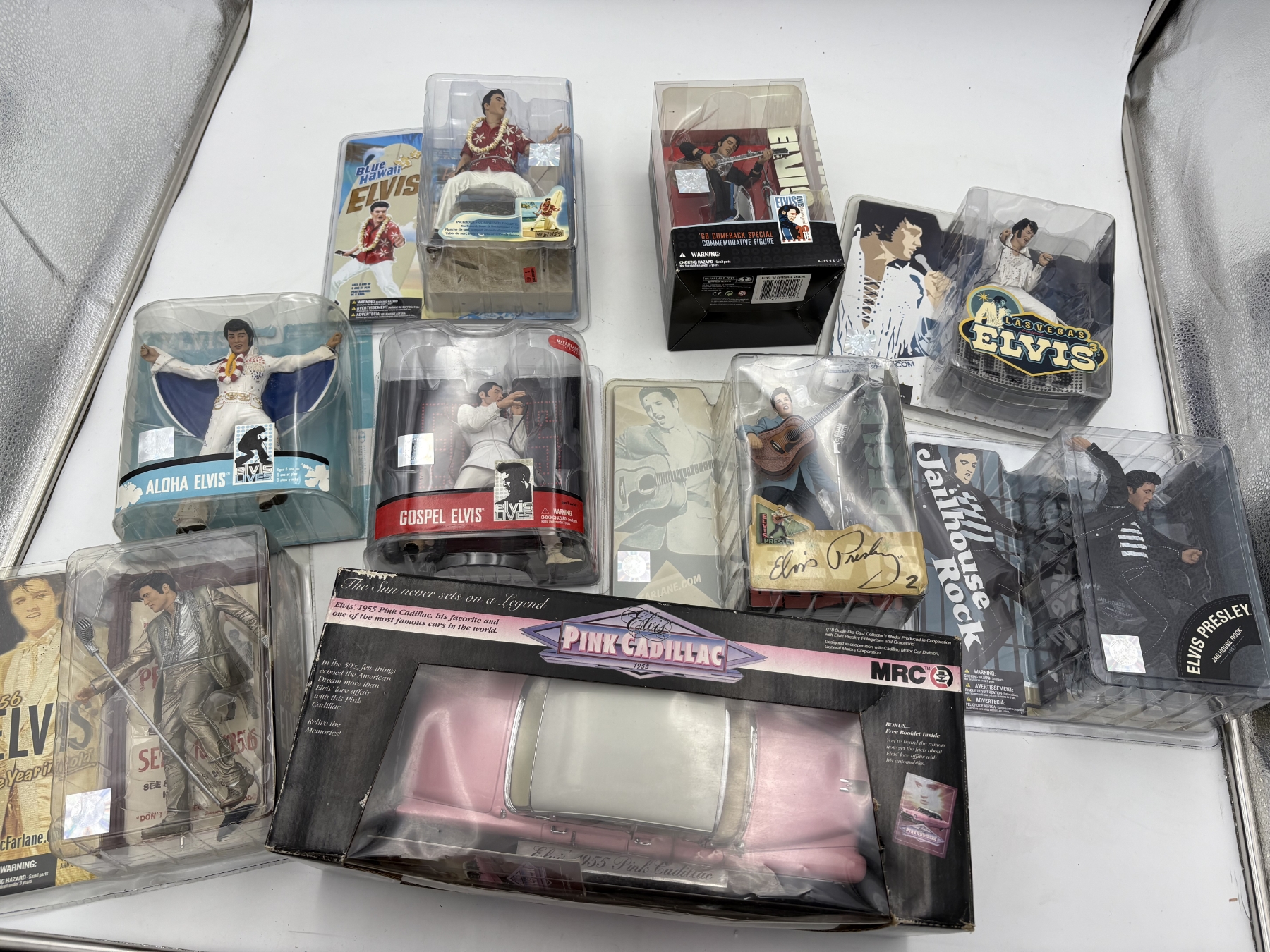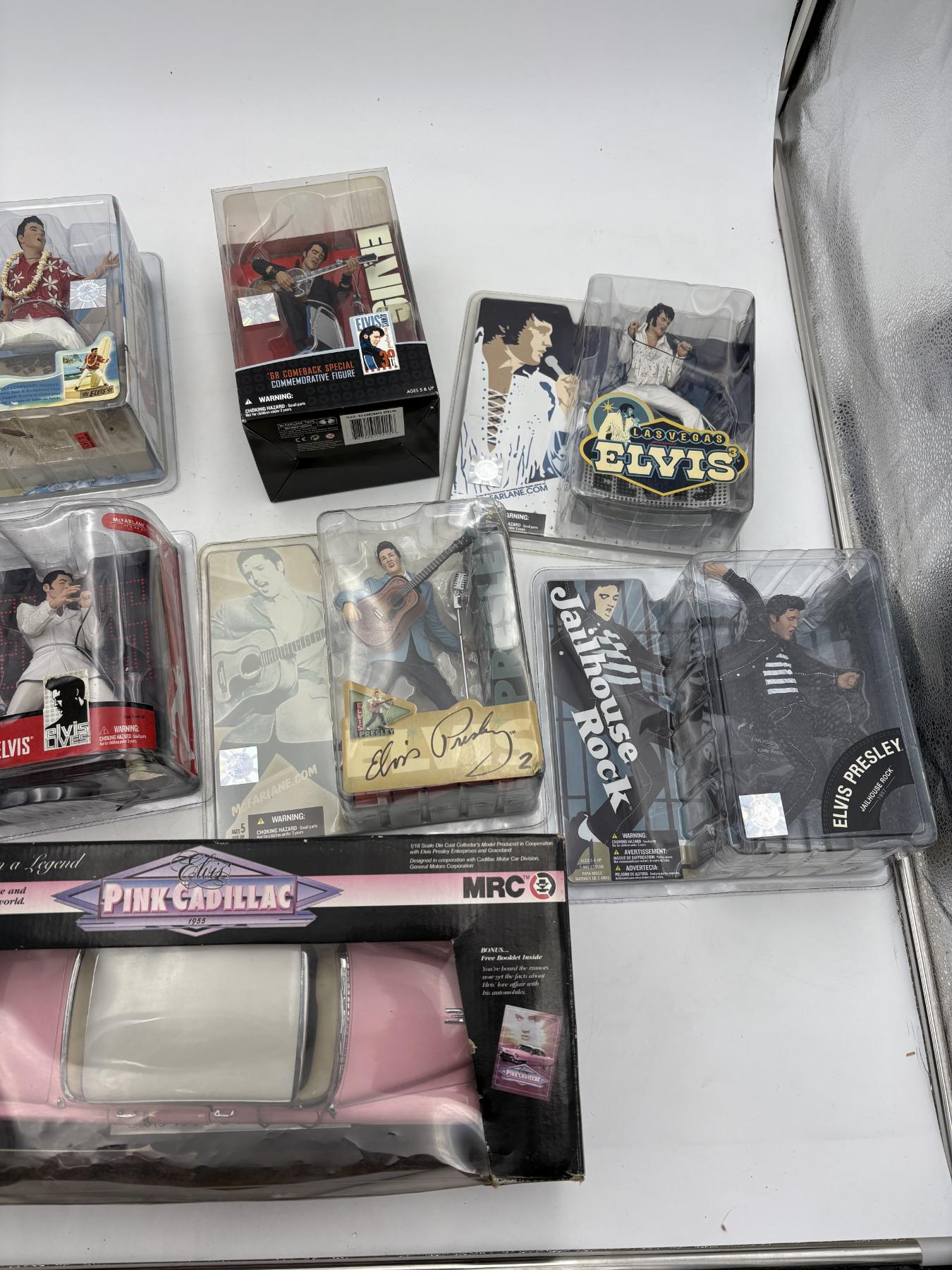 Elvis Presley Figurines in Packaging & Elvis Pink Cadillac in Packaging - Jailhouse Rock - Aloha Elvis - Gospel Elvis - Las Vegas Elvis