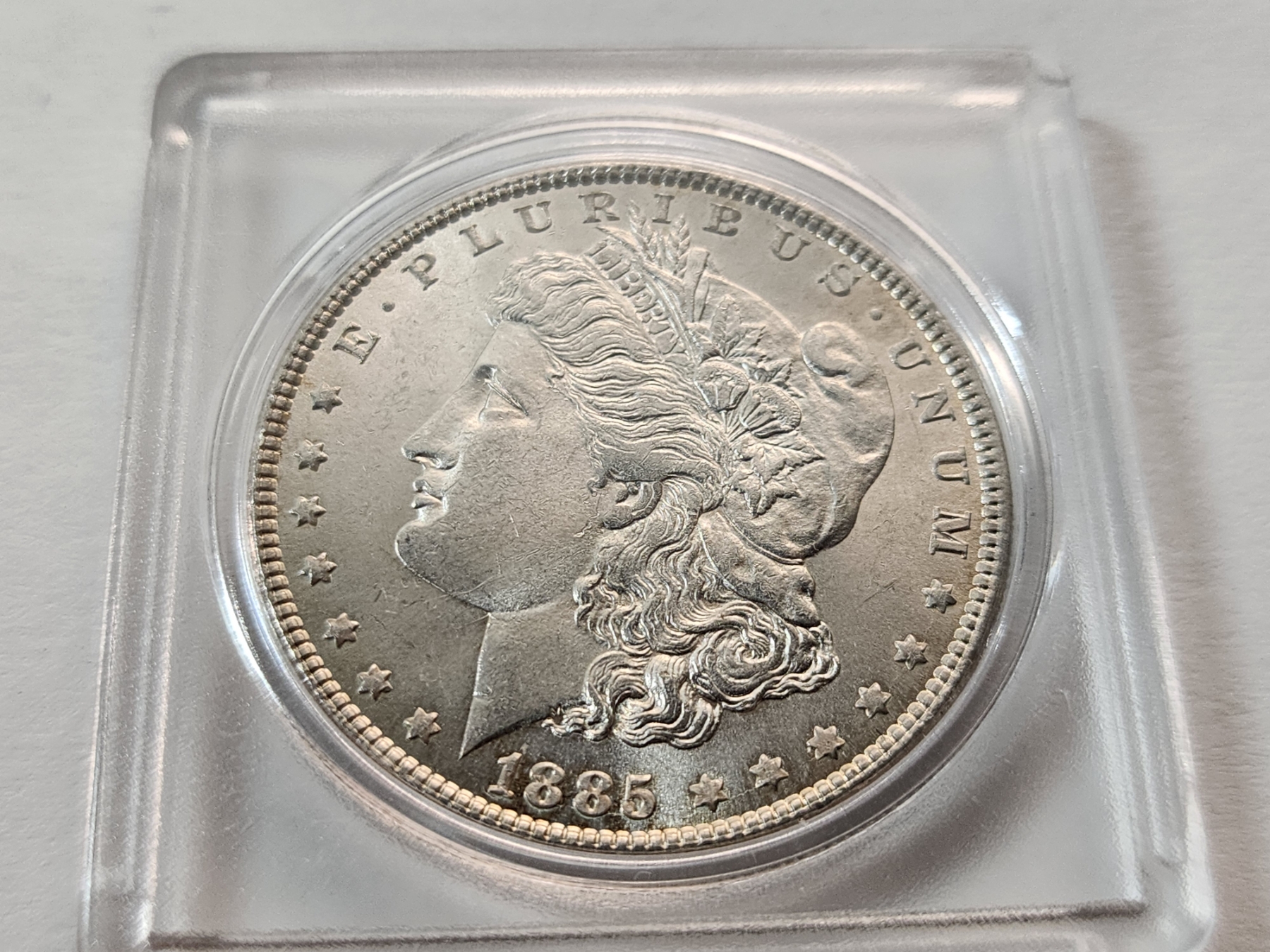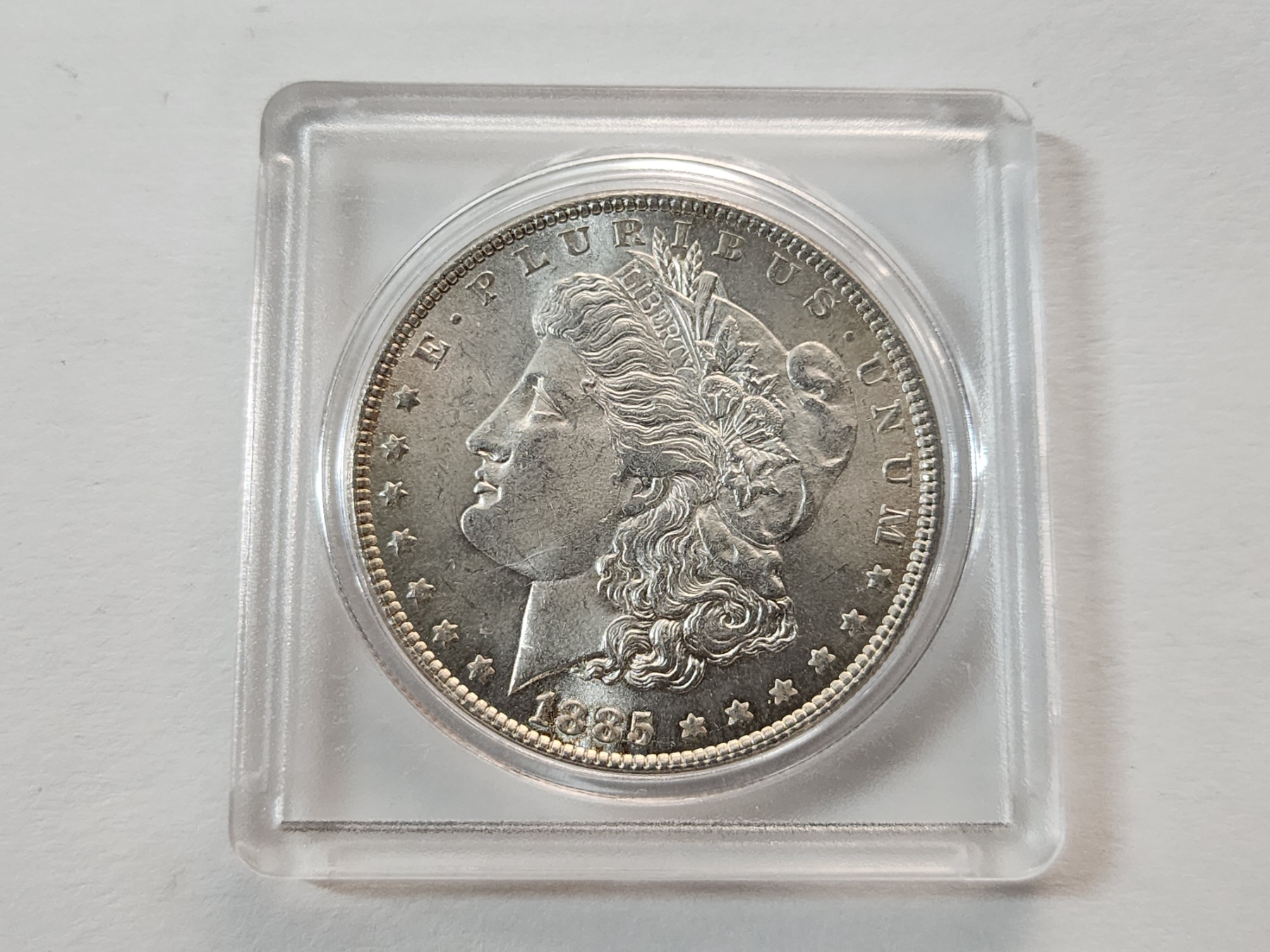 Excellent Condition 1885 90% Silver Morgan Dollar in Protective Case
