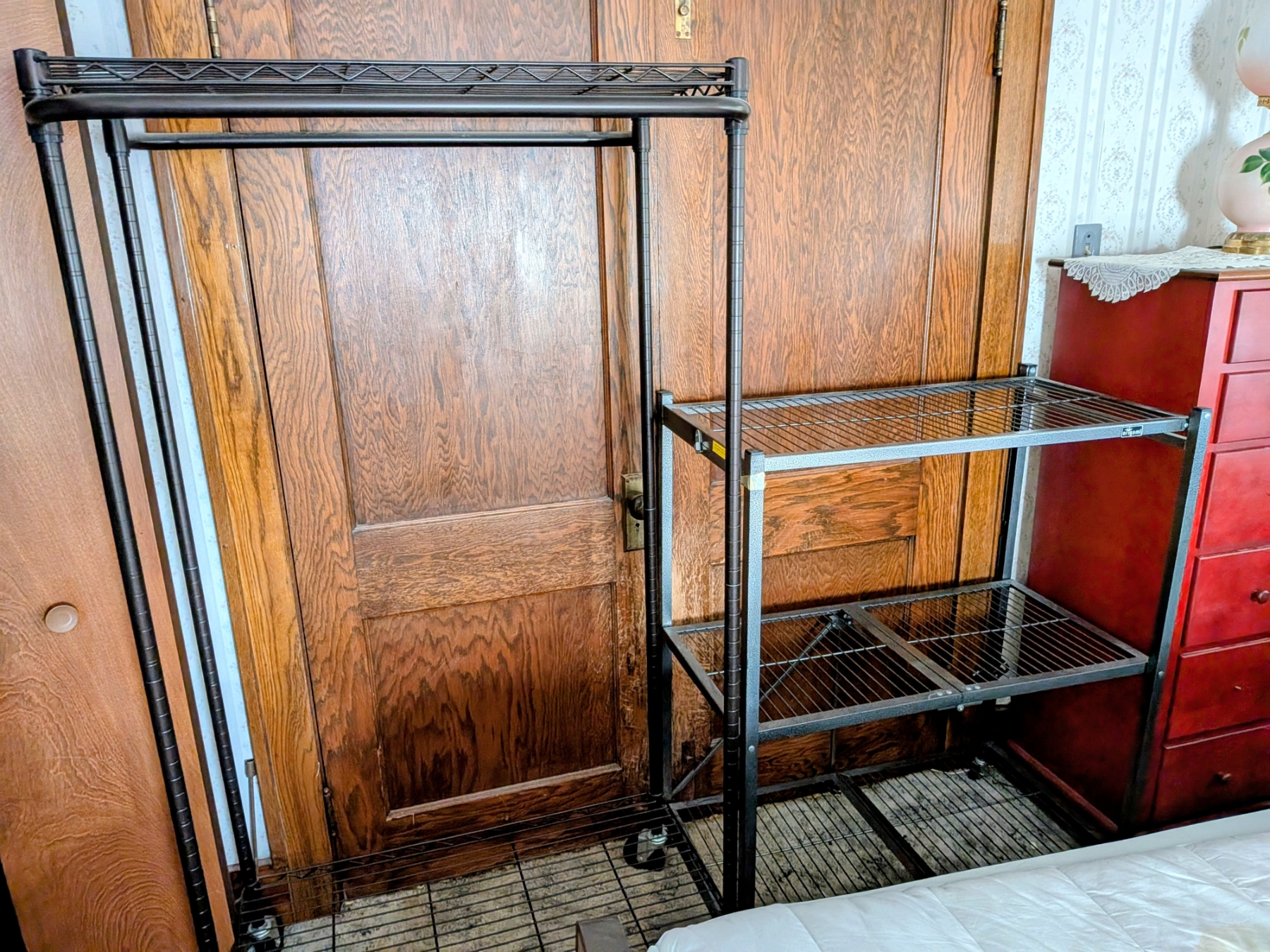 Excellent Condition Garment Rack, 35:x66" And Like New Wire Storage Shelf 43"x36"