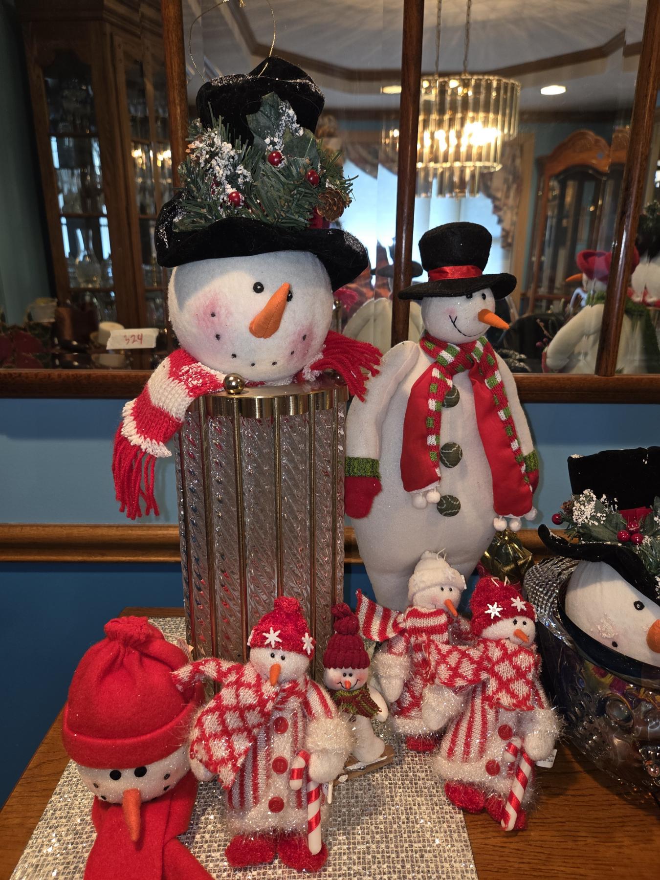 Excellent Condition Large Snowman Ornament Group. (Lamps & Bowl Not Included)