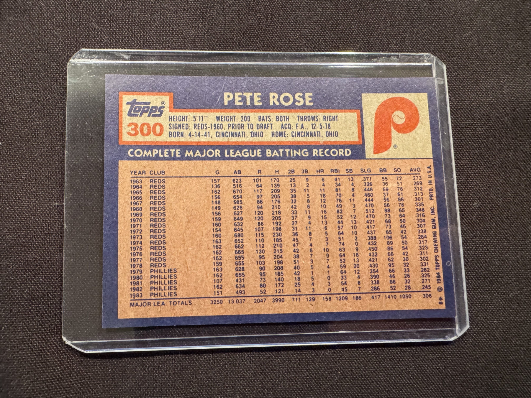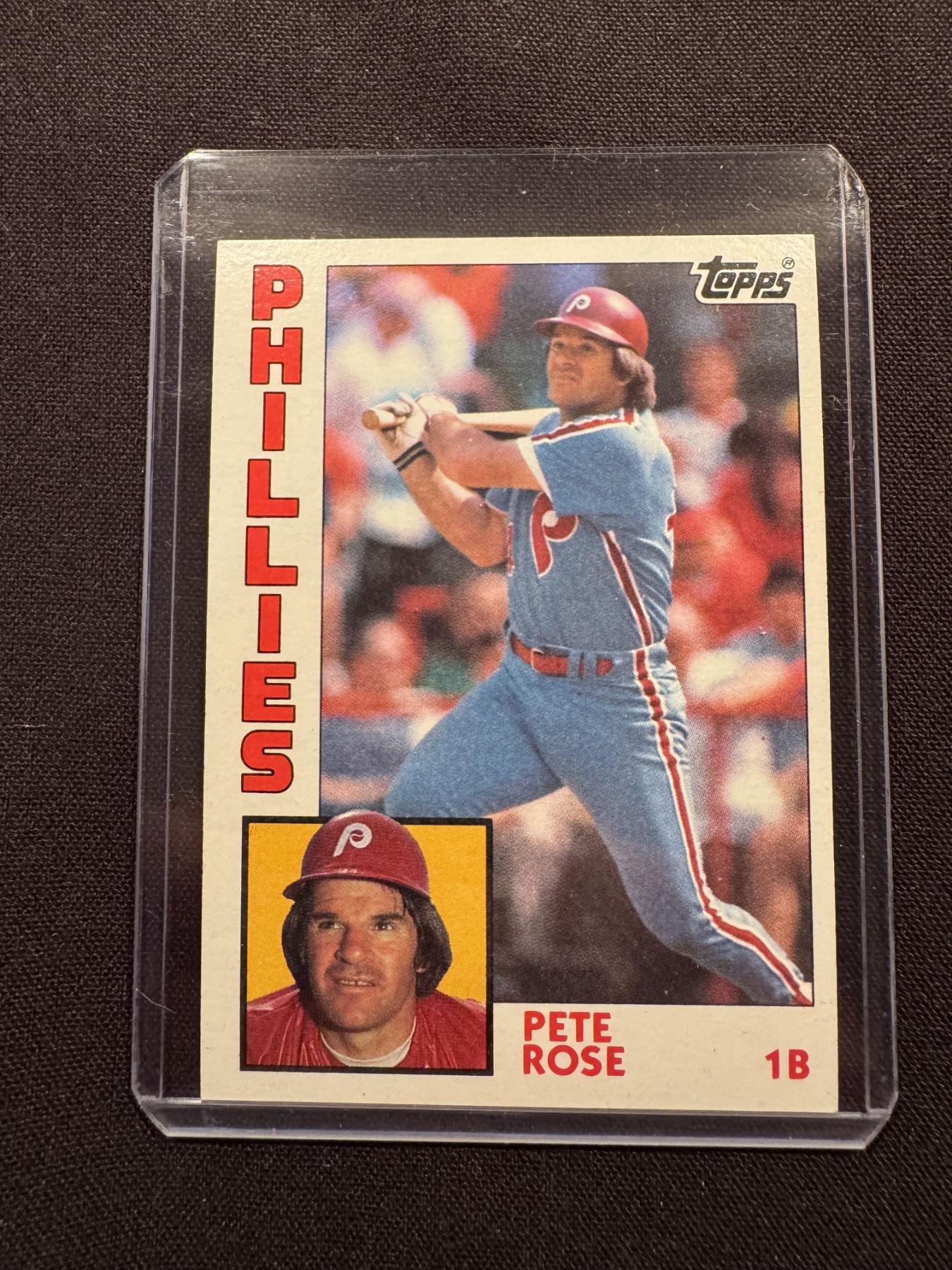 Exceptional 1984 Topps Pete Rose Baseball Card In Protective Holder - Mint Condition