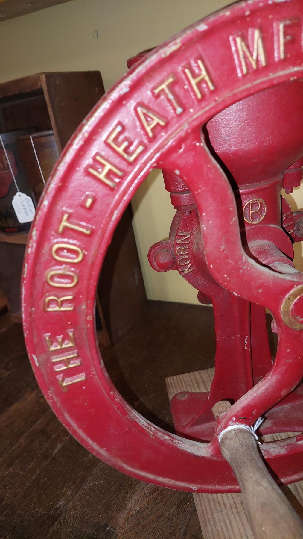 Extremely RARE - Antique The "ROOT HEALTH MFG Co." Coffee Grinder - Plymouth RI, 14" Tall - 12" Wheel - Nice Search for this model far and wide.... IMPOSSIBLE TO FIND - Do Not Pass On This One