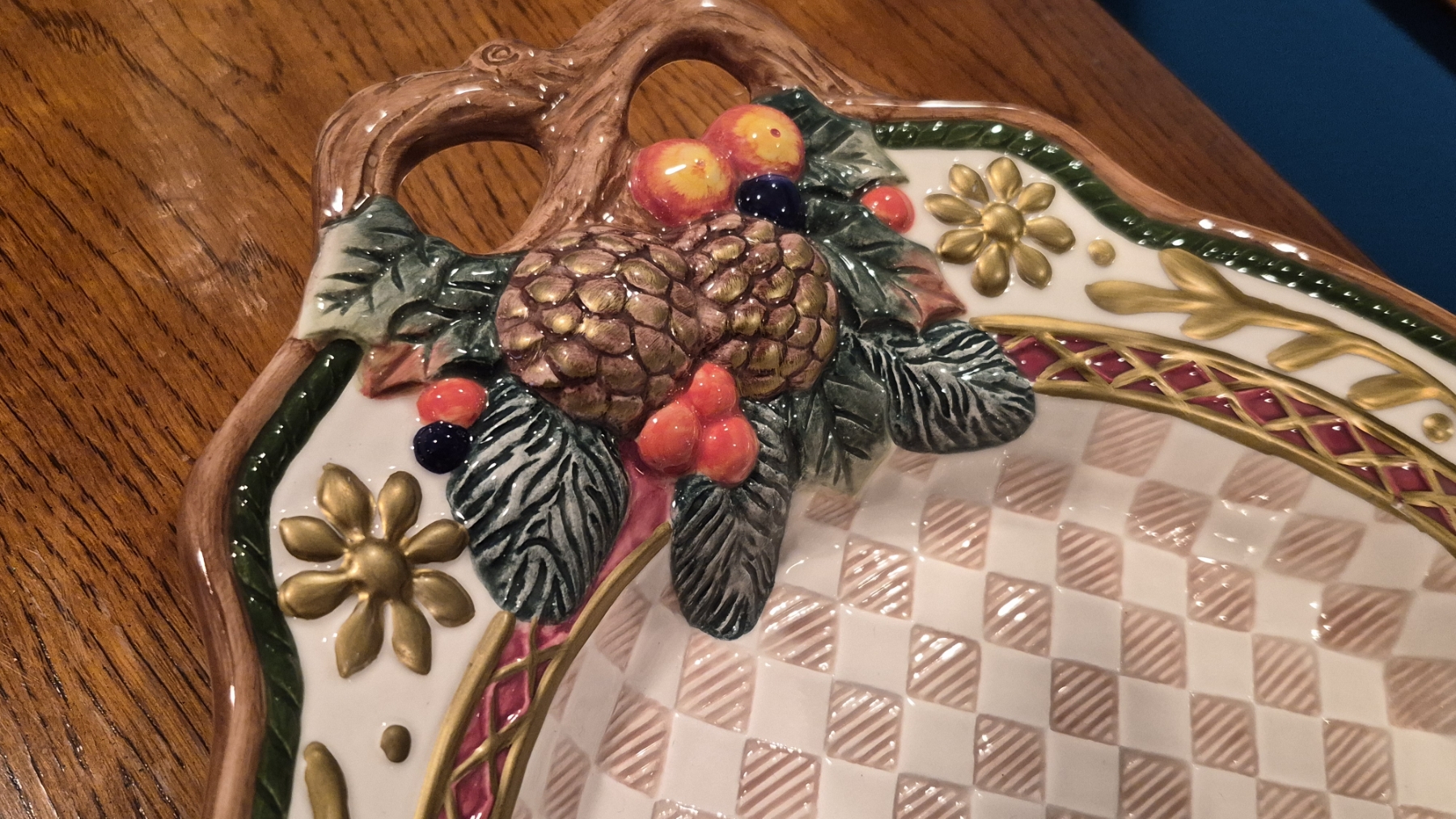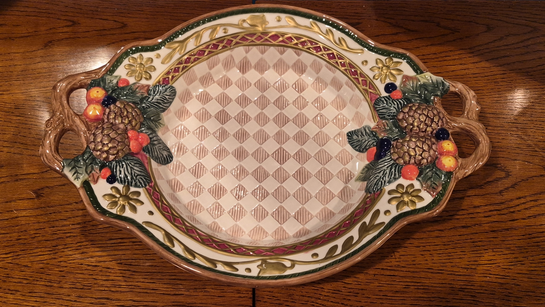 FITZ & FLOYD Colorful Harvest Themed Bowl 14 1/2 x 11 1/2 Perfect