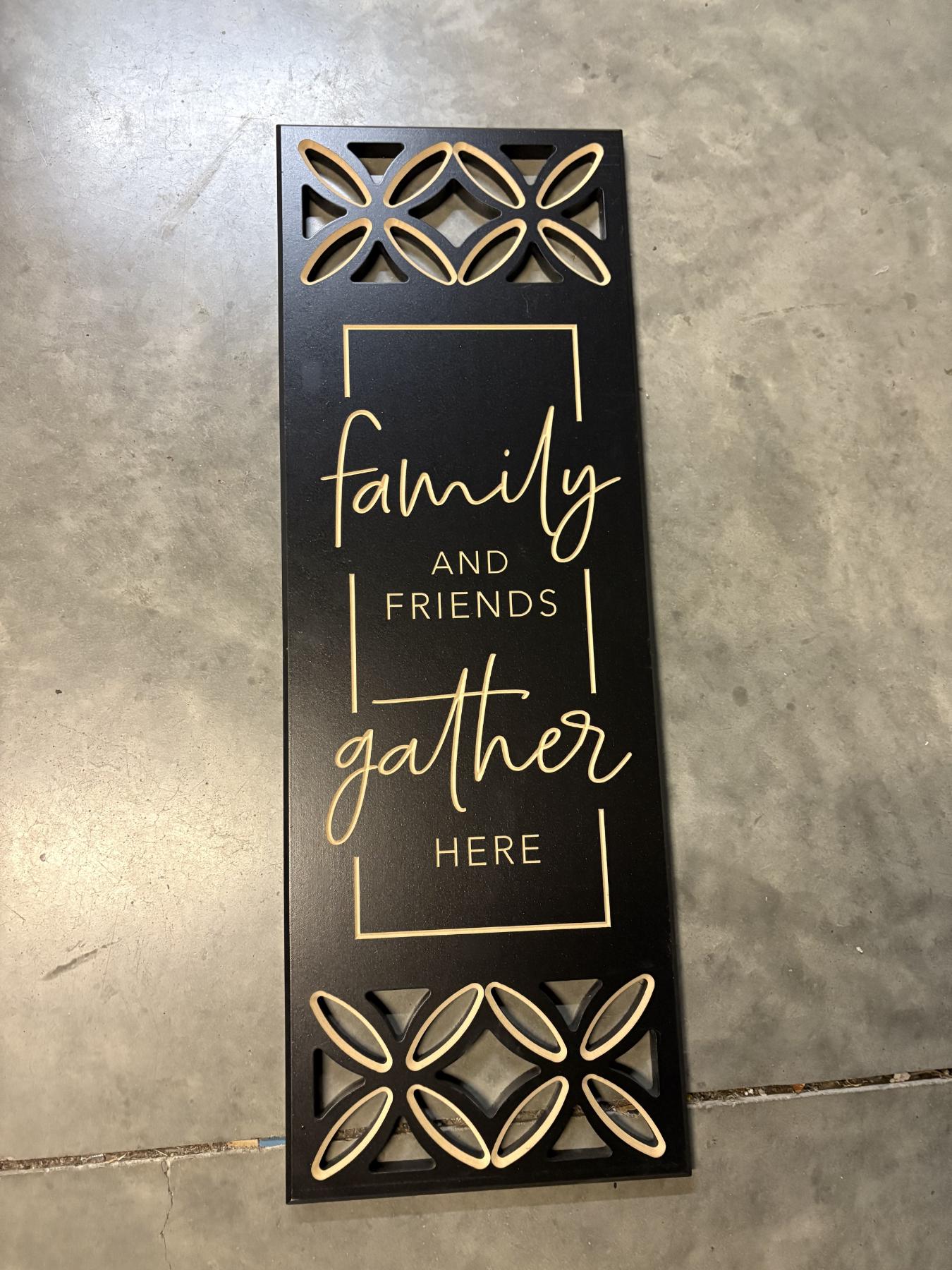 Family and Friend Gather Here Wall Hanging Sign 34x12" - P. Graham Dunn