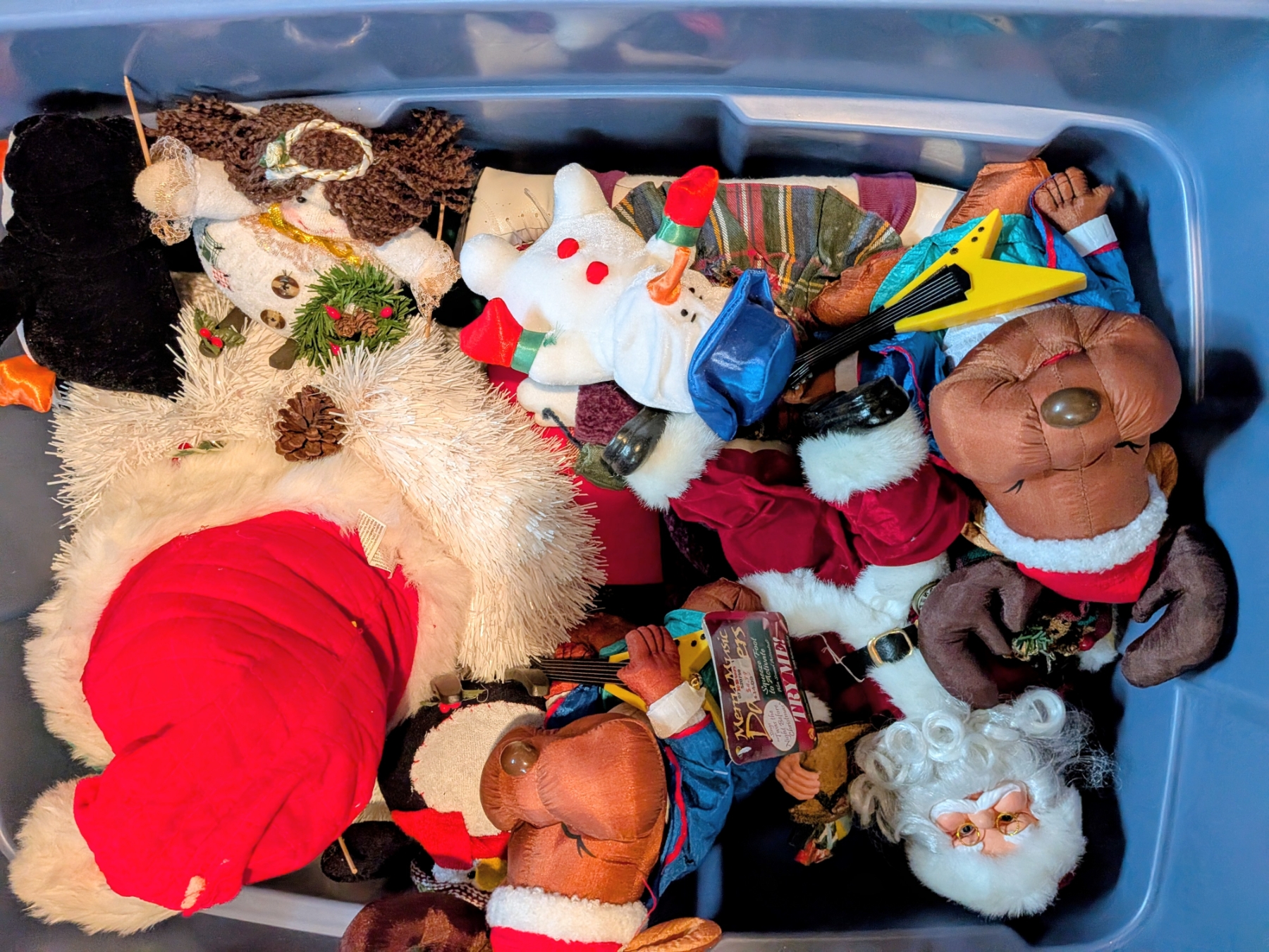 Fantastic Group Of 2 Totes Of Holiday Items, Including Plushies, Dancing Deer, Lampshade, 18" Deer Decor & Much More!