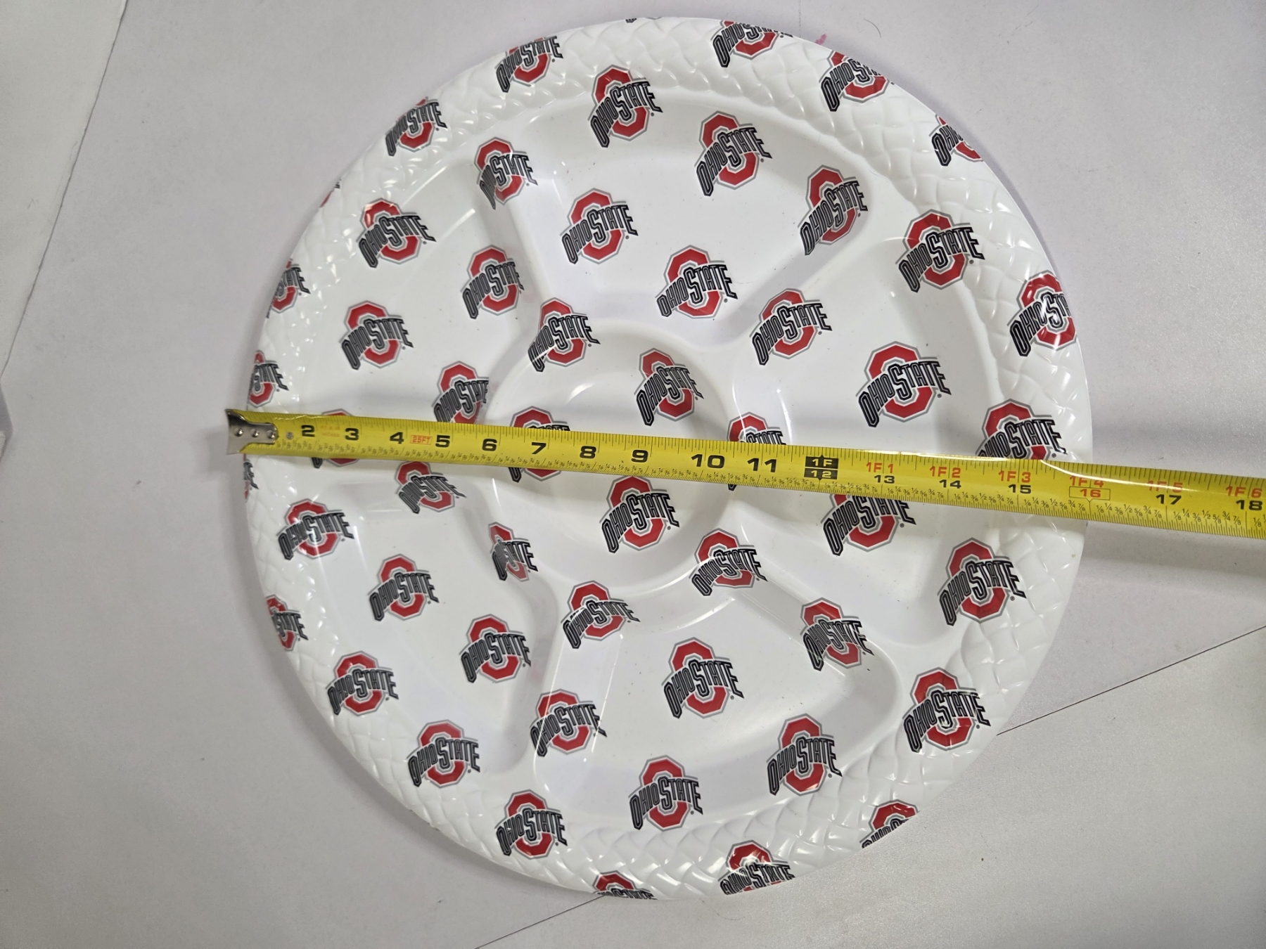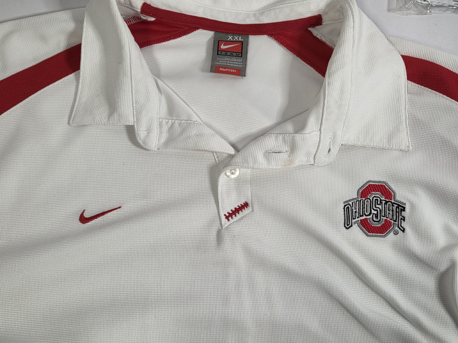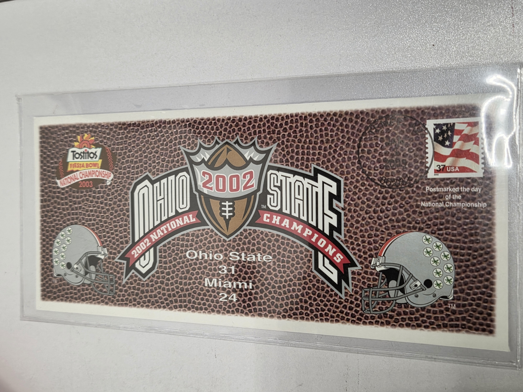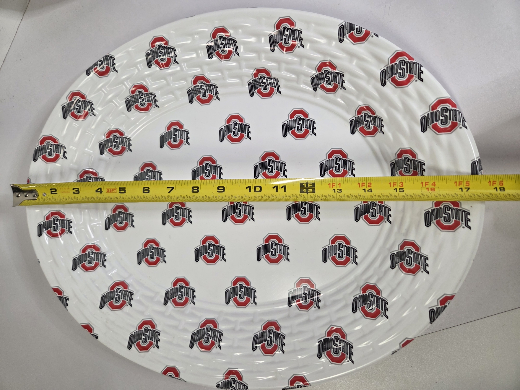 Fantastic OSU Group Including XXL Nike Golf Shirt, 16'' & 18'' Plastic Serving Trays, New 16ft Pennant Flag Banner, New Stickers, New 37 Cent 2003 Fiesta Bowl Envelope, 8'' Hanging Round Sign & Two Small Stick Flags!