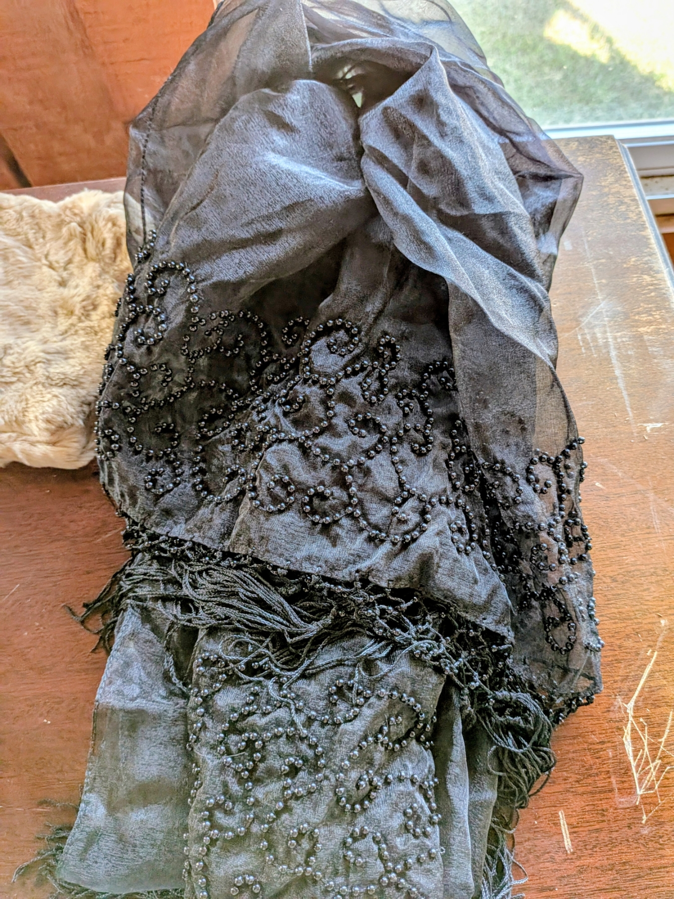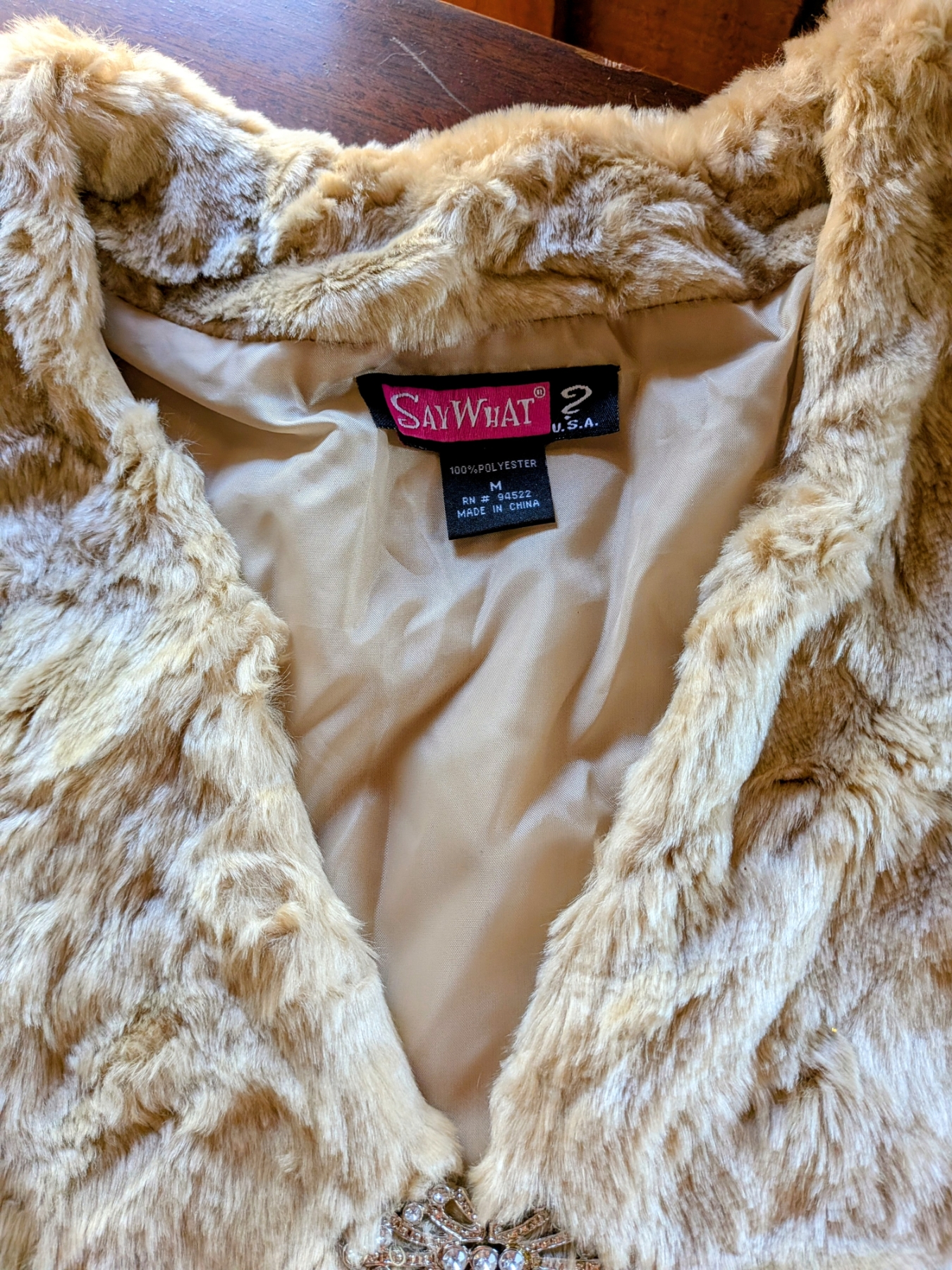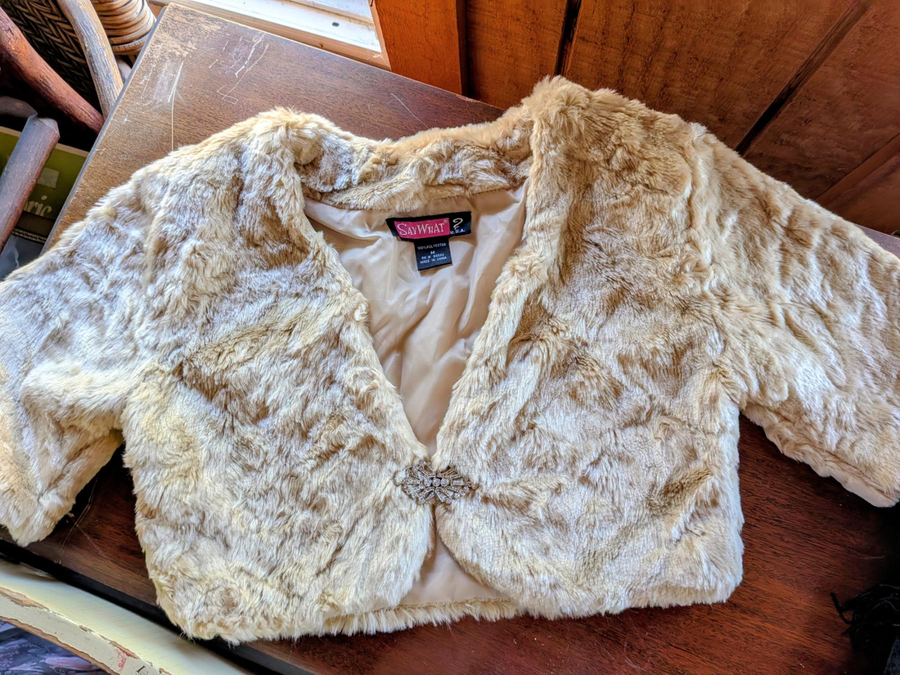 Fawn Color Faux Fur Shrug & Black Sheer Beaded Scarf