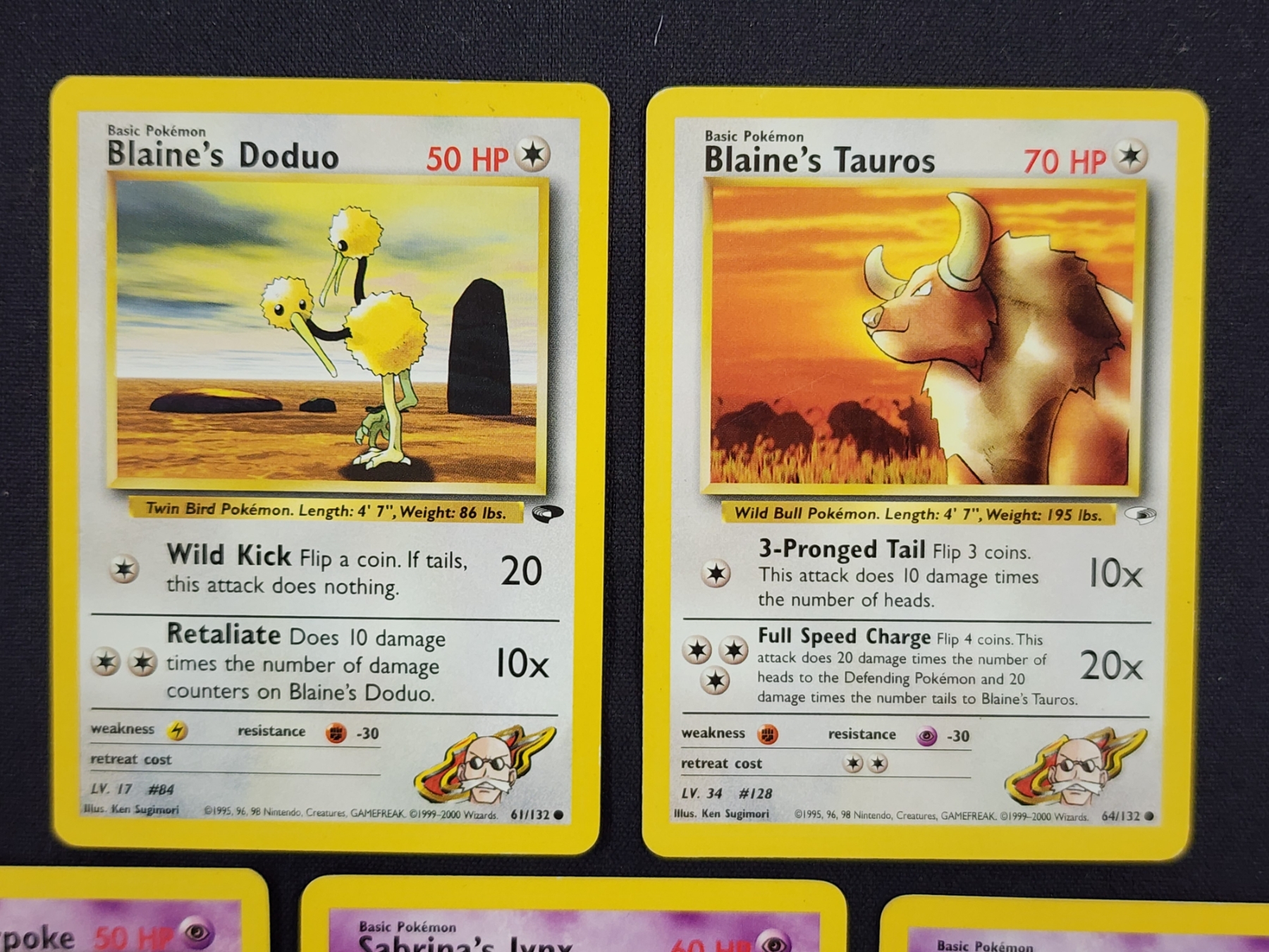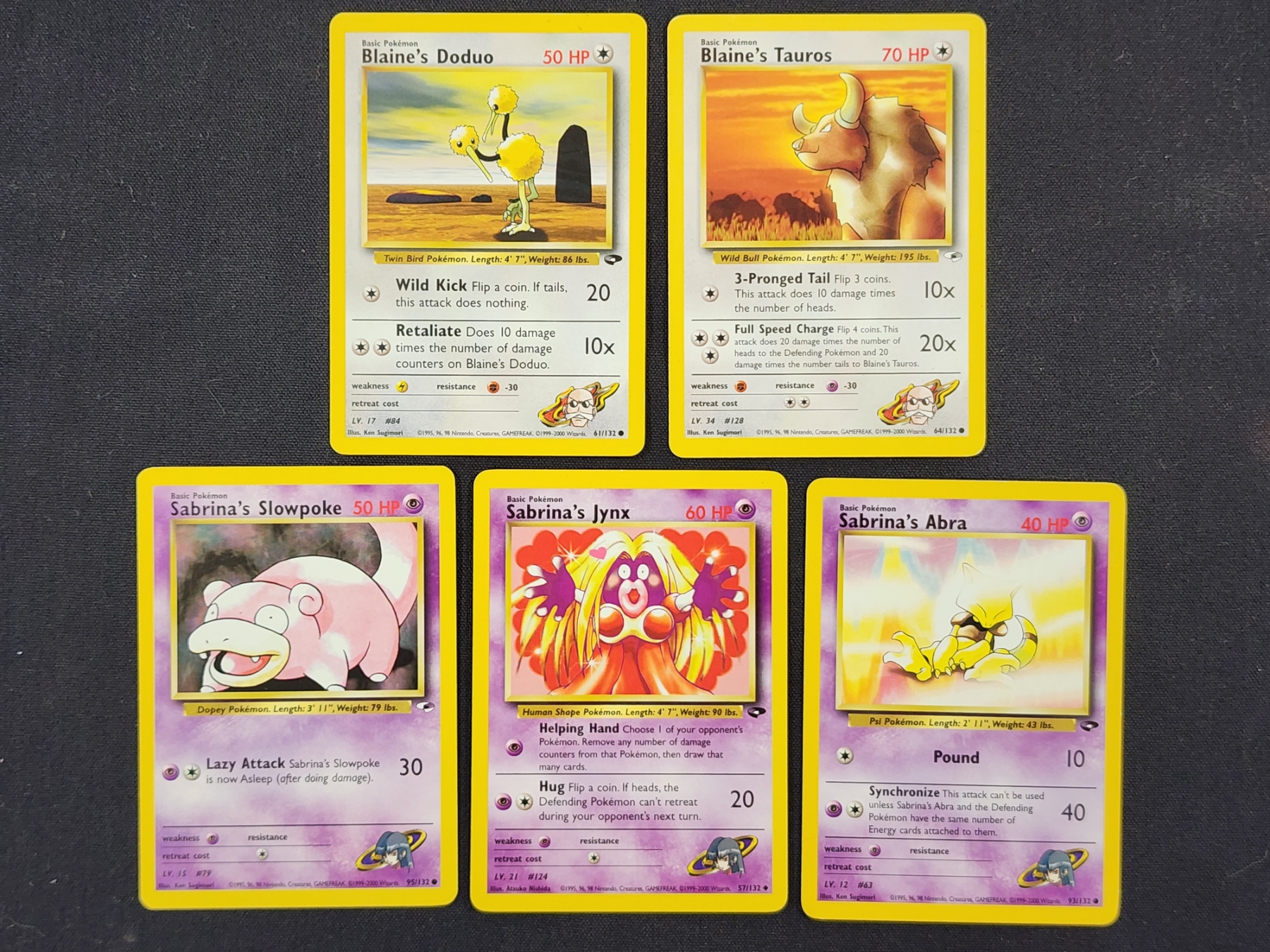 Five Assorted Gym Challenge & Gym Heroes Vintage Pokemon Trading Cards - Blaine's & Sabrina's