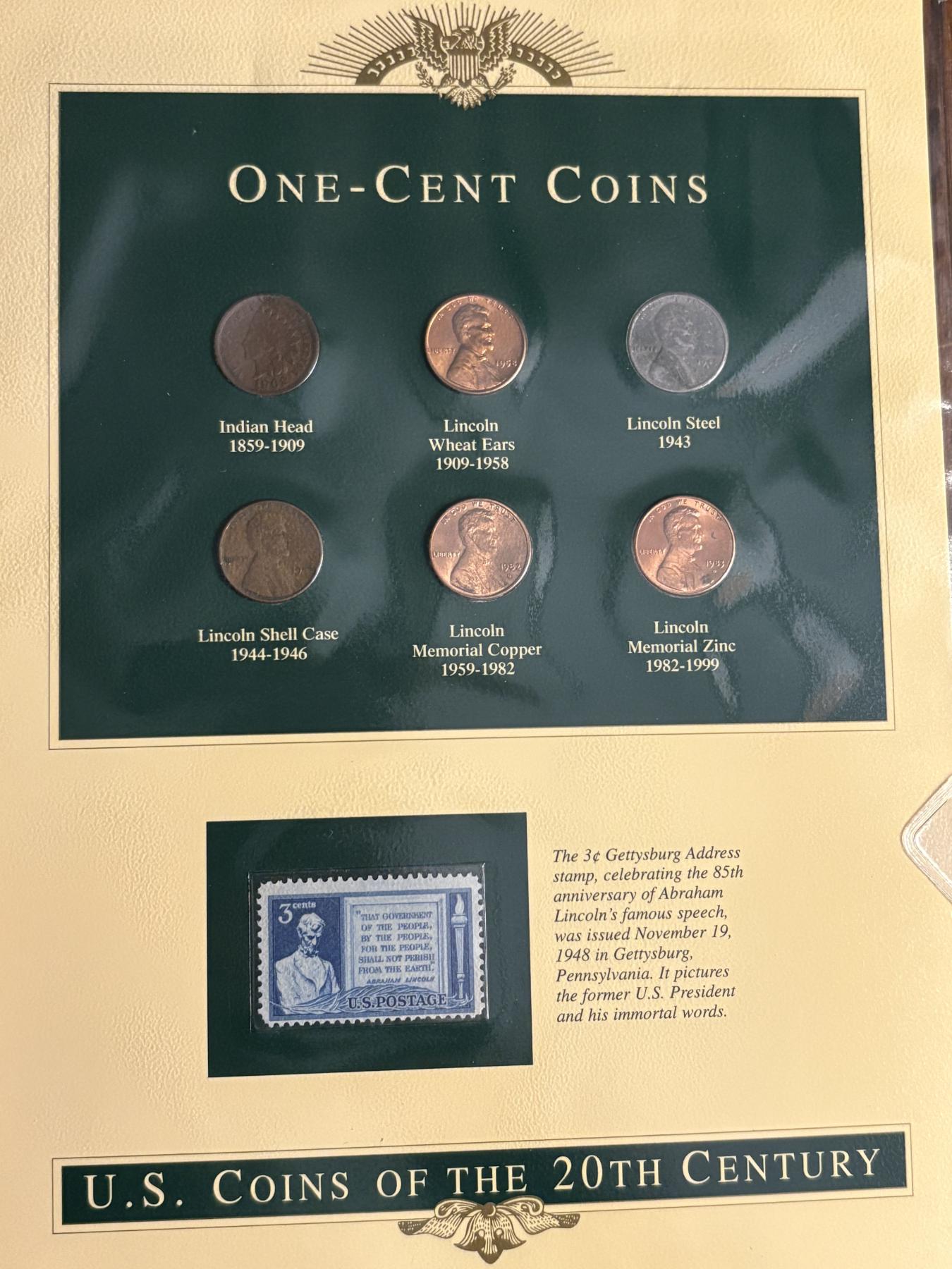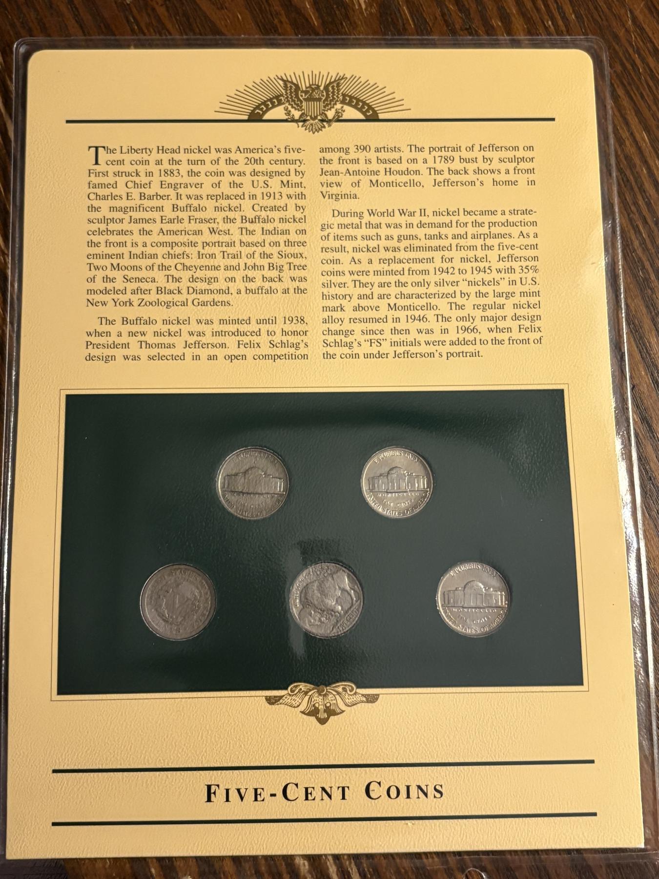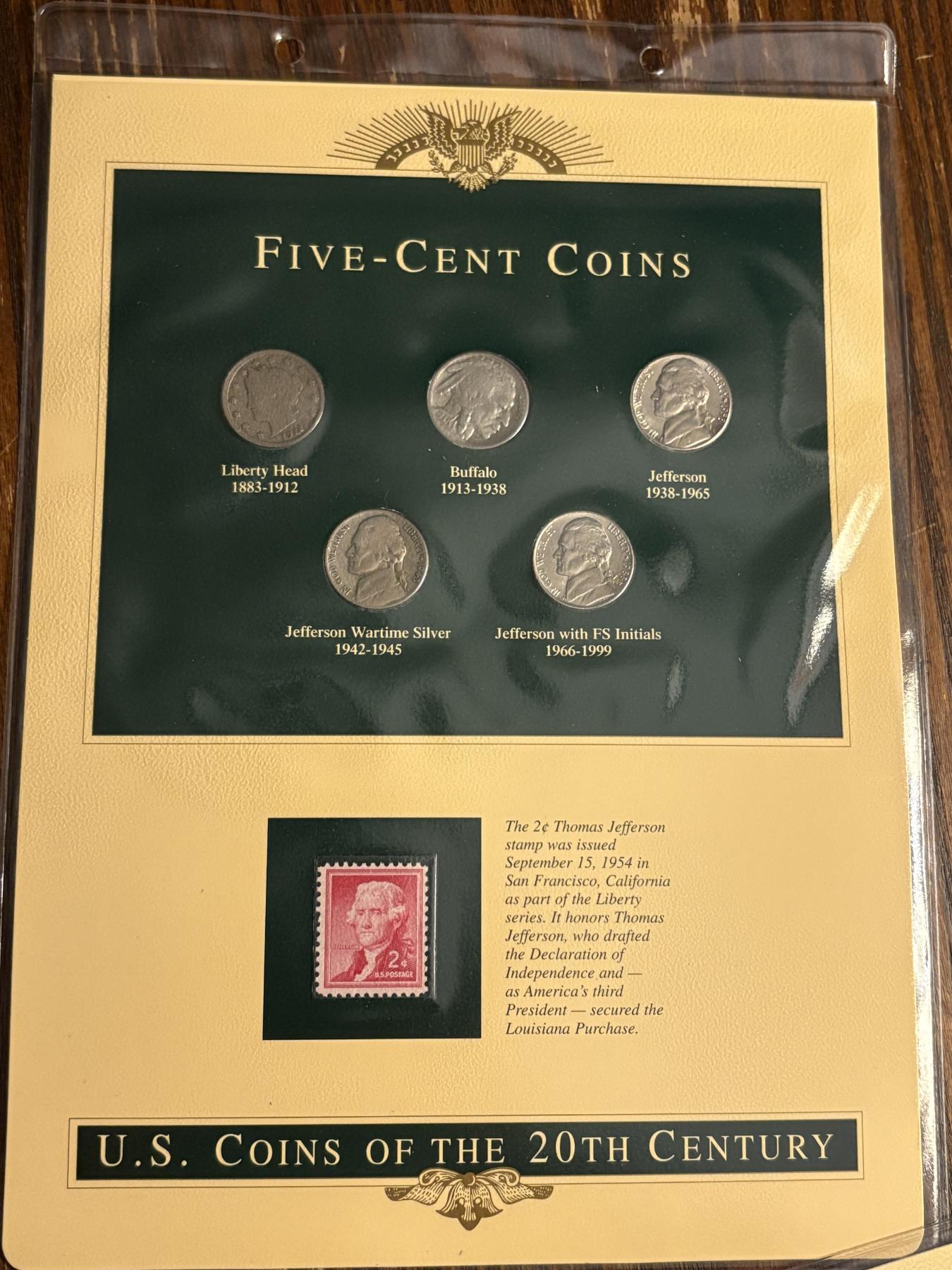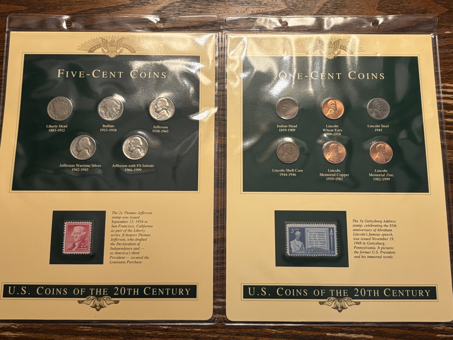 Five - Cent Coins & One - Cent Coins - FV $0.31 - Liberty Head Nickel 1883-1912 - Buffalo Nickel 1913-1938 - Jefferson Nickel 1938-1965 - Jefferson Wartime Silver 1942-1945 - Jefferson with FS initials 1966-1999 - Indian Head Penny 1859-1909 - Lincoln Wheat Ears 1909-1958 - Lincoln Steel 1943 - Lincoln Shell Case 1944-46 - Lincoln Memorial Copper 1959-82 - Lincoln Memorial Zinc 1982-1999