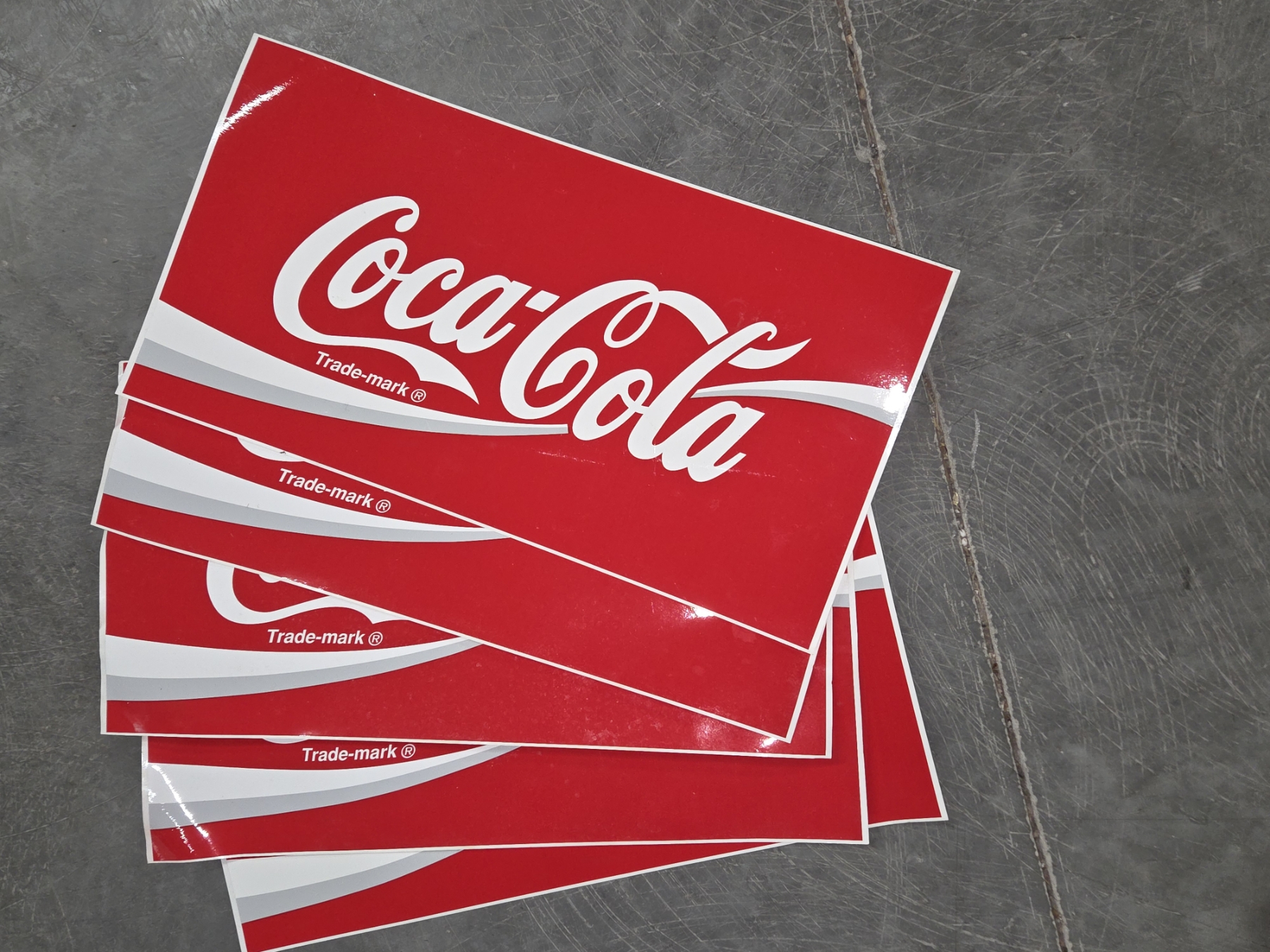 Five Large 20"x10" Coca Cola Decals, Six Neat Tin Signs & Collectable Bottles