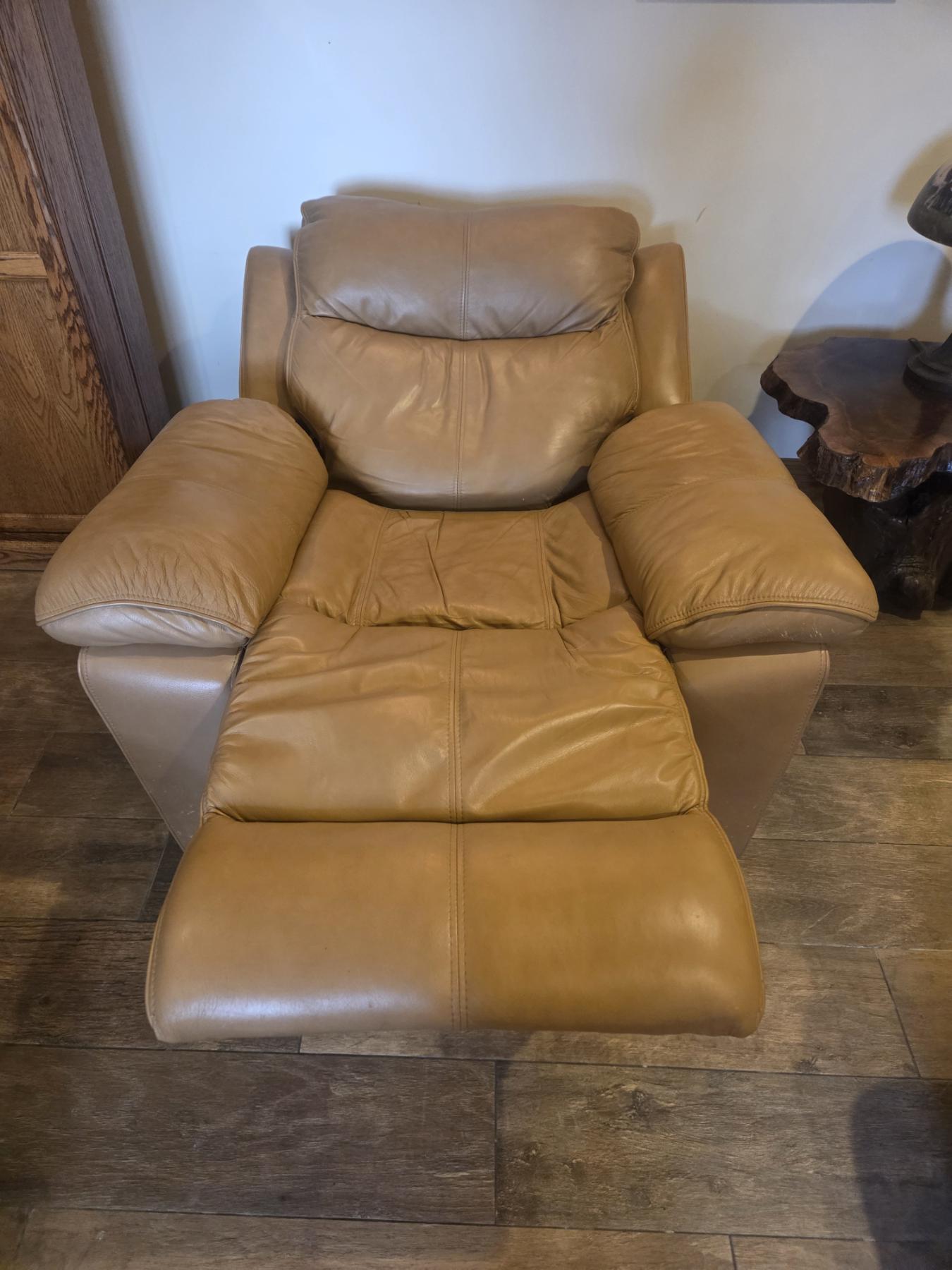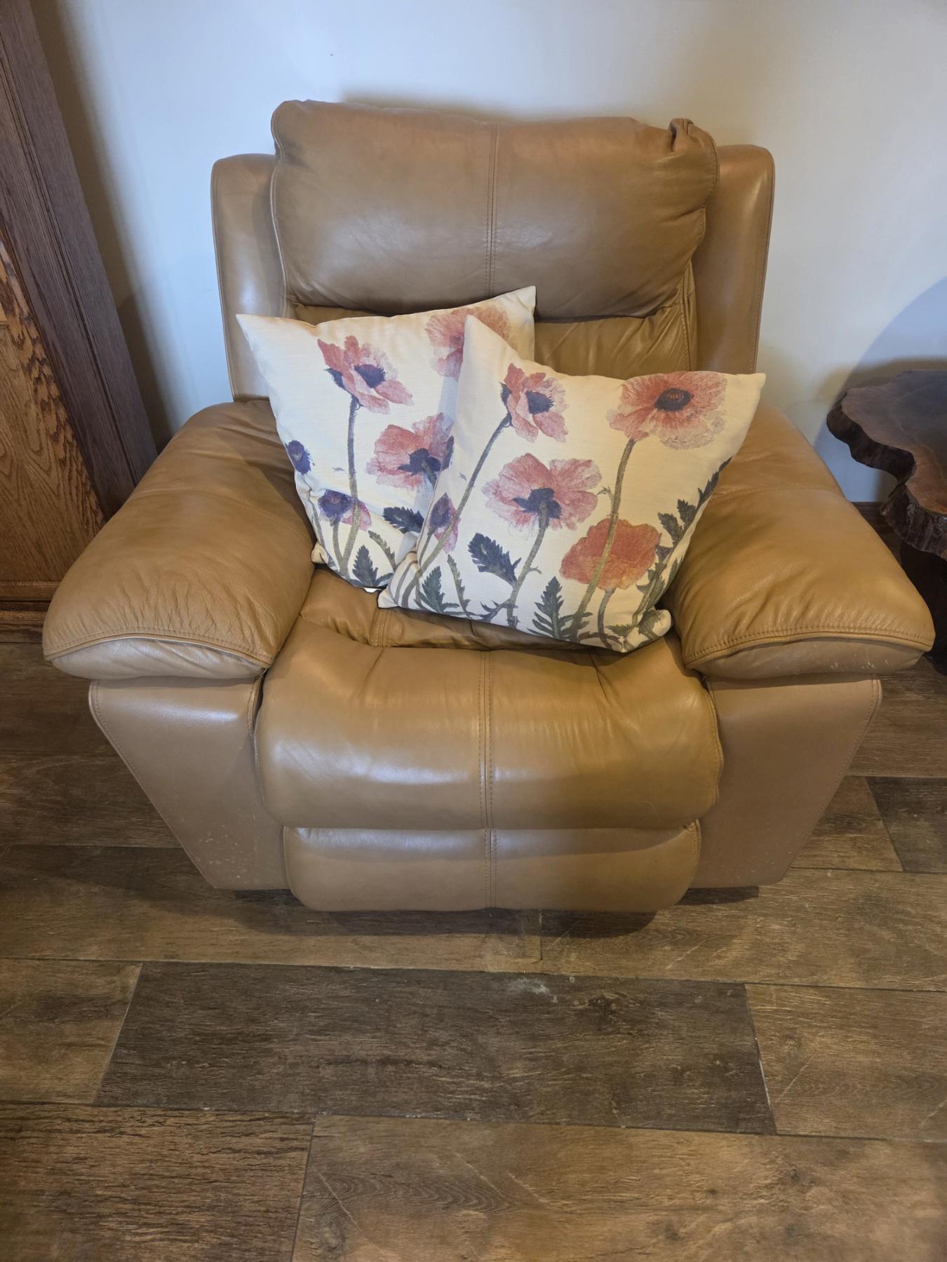 Flexsteel Power Recliner Soft Brown Leather With Accent Pillows